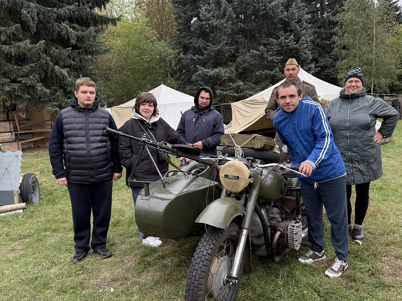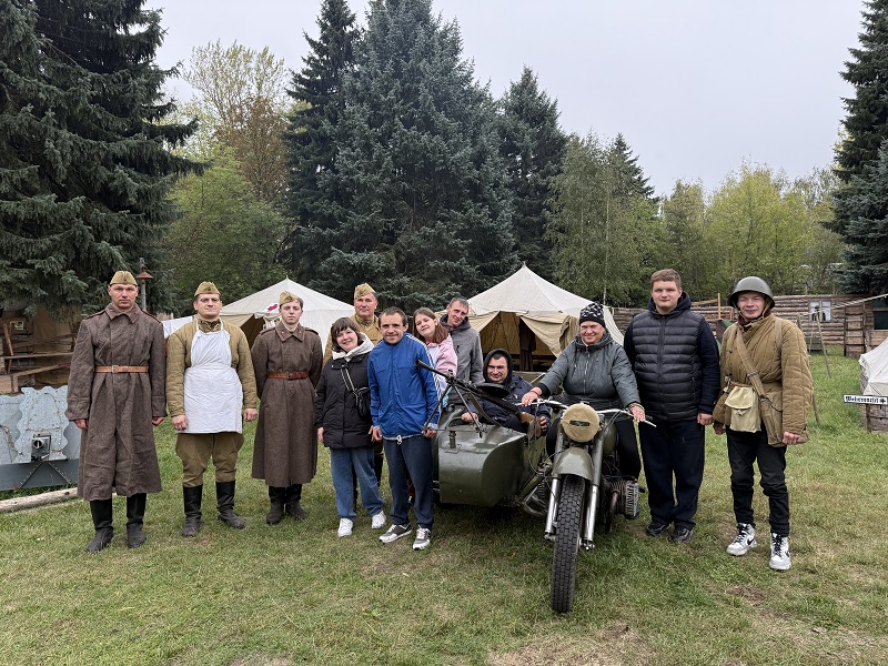 Участники отделения социальной реабилитации, абилитации инвалидов центра социального обслуживания населения Ленинского района г. Бобруйска посетили выставку «Полевой лагерь Красной Армии» к 80-летию Победы в Великой Отечественной войне, организованную клубом военно-исторической реконструкции «Бобруйский рубеж».