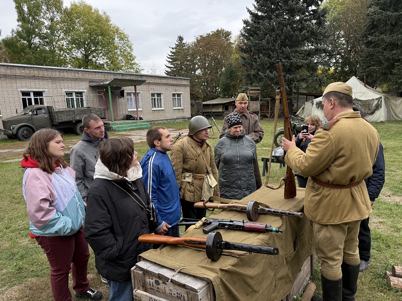 В ходе выставки ознакомились с историей города Бобруйска времен Великой Отечественной войны, увидели форму, вооружение и снаряжение солдат и офицеров Красной Армии, посетили медицинскую палатку и палатку связиста, увидели военную технику времен войны, попробовали солдатскую кашу. Прошли курс молодого бойца: стреляли из пневматического пистолета-пулемета Шпагина, метали гранаты, изучали материальную часть.