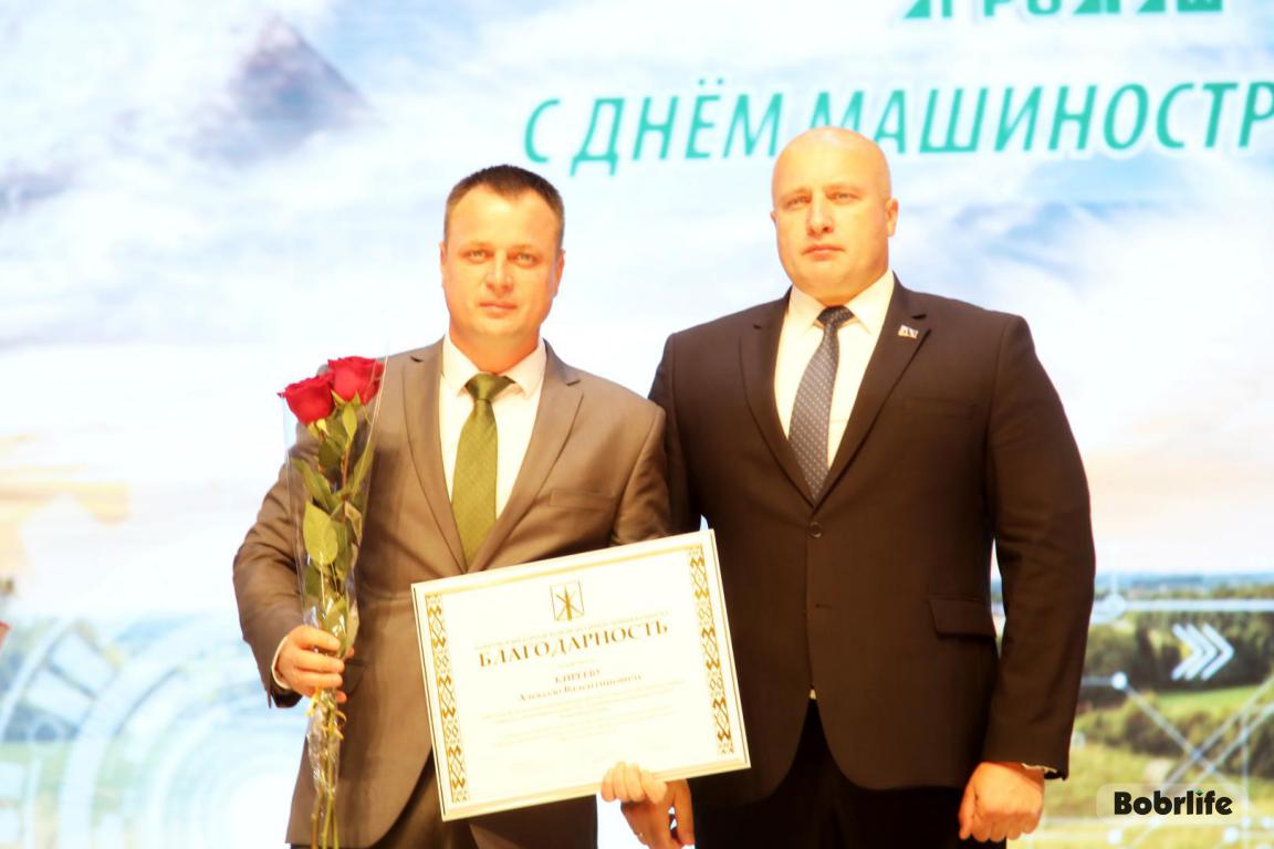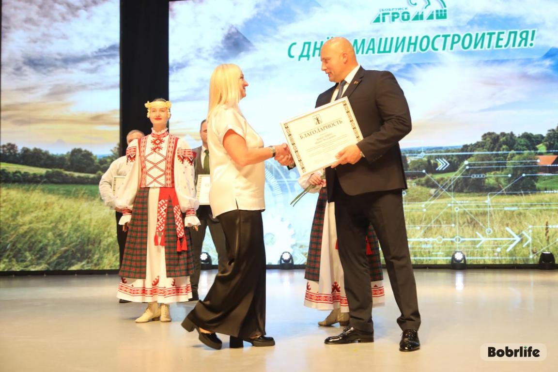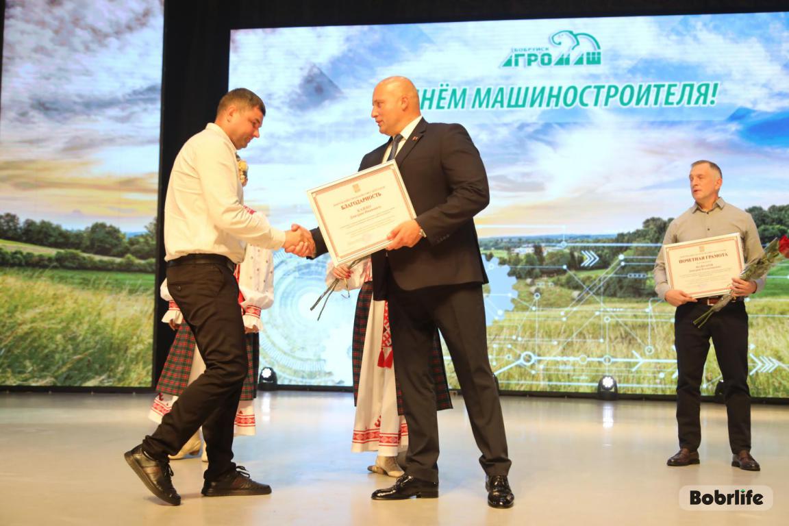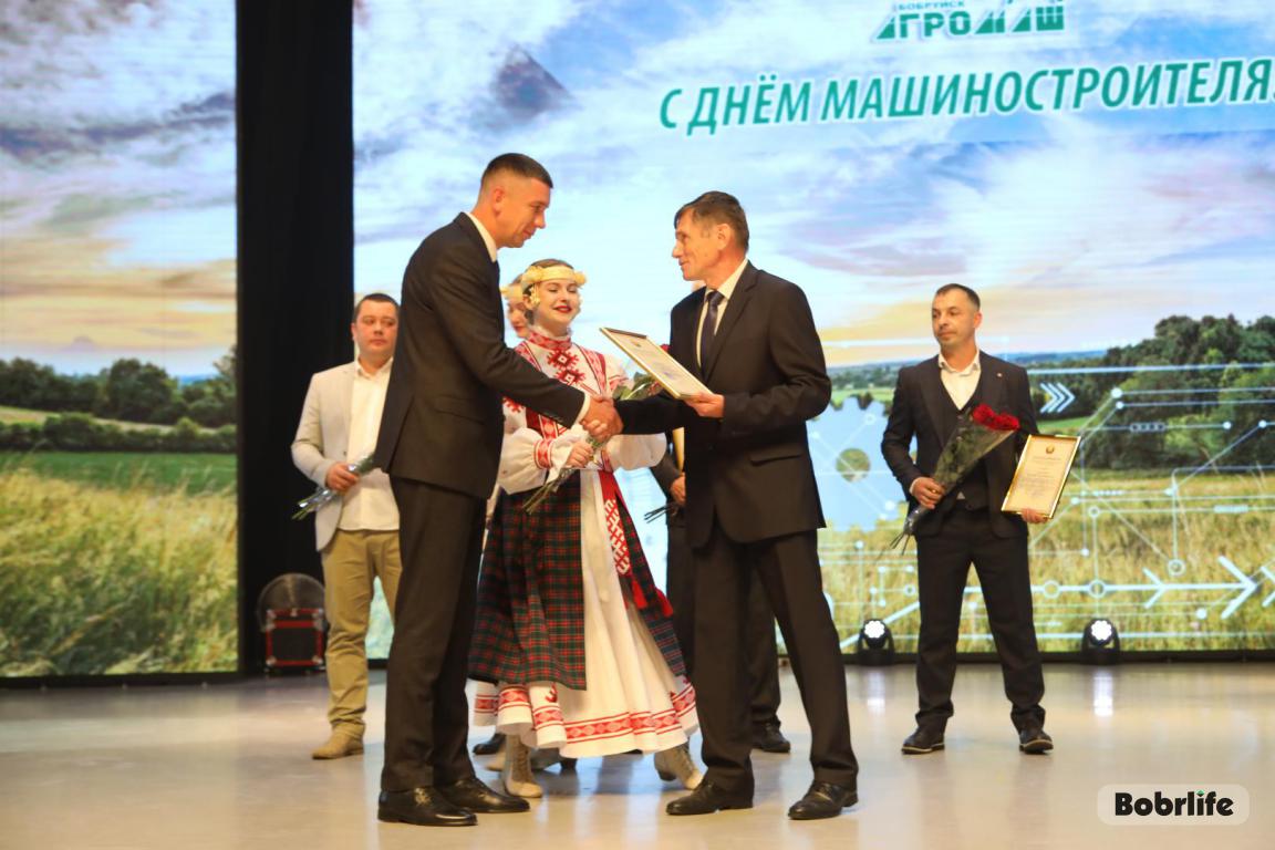 18 сентября во Дворце искусств в канун Дня машиностроителей, который отмечается в Беларуси в четвертое воскресенье сентября, состоялось торжественное мероприятие, посвященное этому профессиональному празднику. Чествовали и поздравляли работников ОАО «УКХ «Бобруйскагромаш». Зал был полон: здесь собрались передовики производства, представители трудовых династий, ветераны отрасли и все те, кто своим трудом ежедневно создает будущее машиностроения Беларуси. На торжественном мероприятии присутствовали председатель Бобруйского горисполкома Максим Гурин, начальник отдела механизации агрокомплекса управления сельскохозяйственным машиностроением Министерства промышленности Республики Беларусь Сергей Бамбалов, глава администрации Первомайского района Виталий Власевич, председатель Могилевской областной организации профсоюза «Белпрофмаш» Валентина Шишко. Лучшие работники предприятия получили почетные грамоты, благодарственные письма и ценные подарки за многолетний добросовестный труд и высокие производственные показатели. Гостей праздника также ждала насыщенная концертная программа.