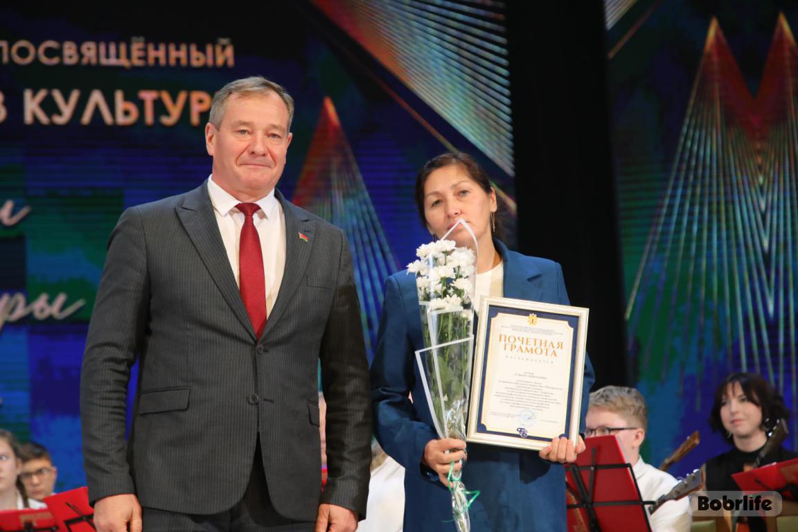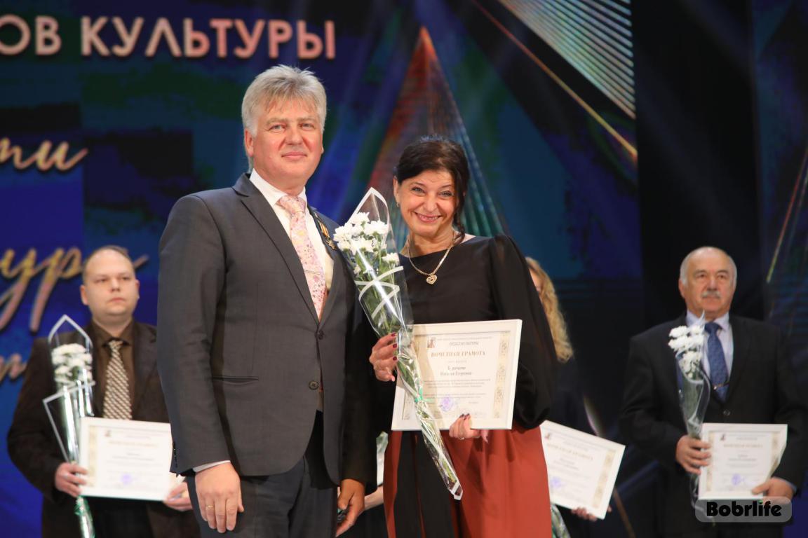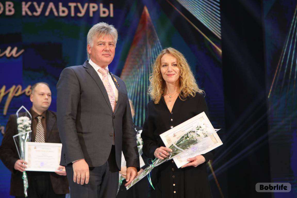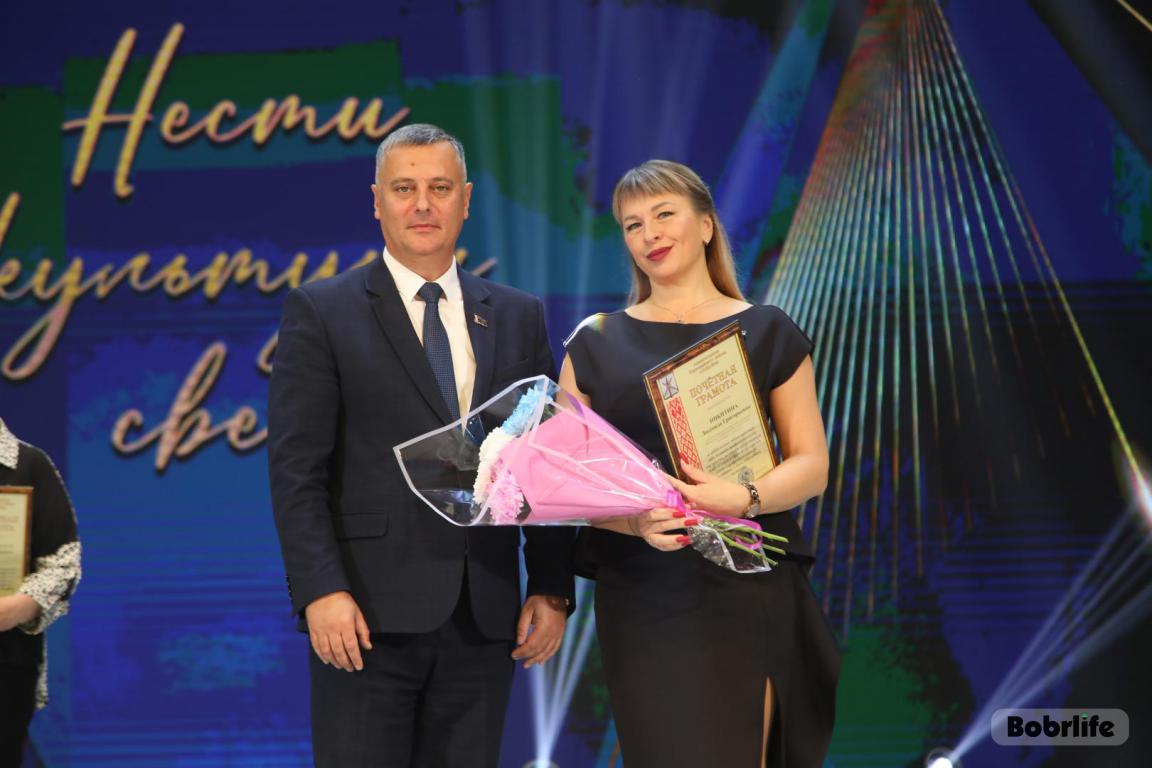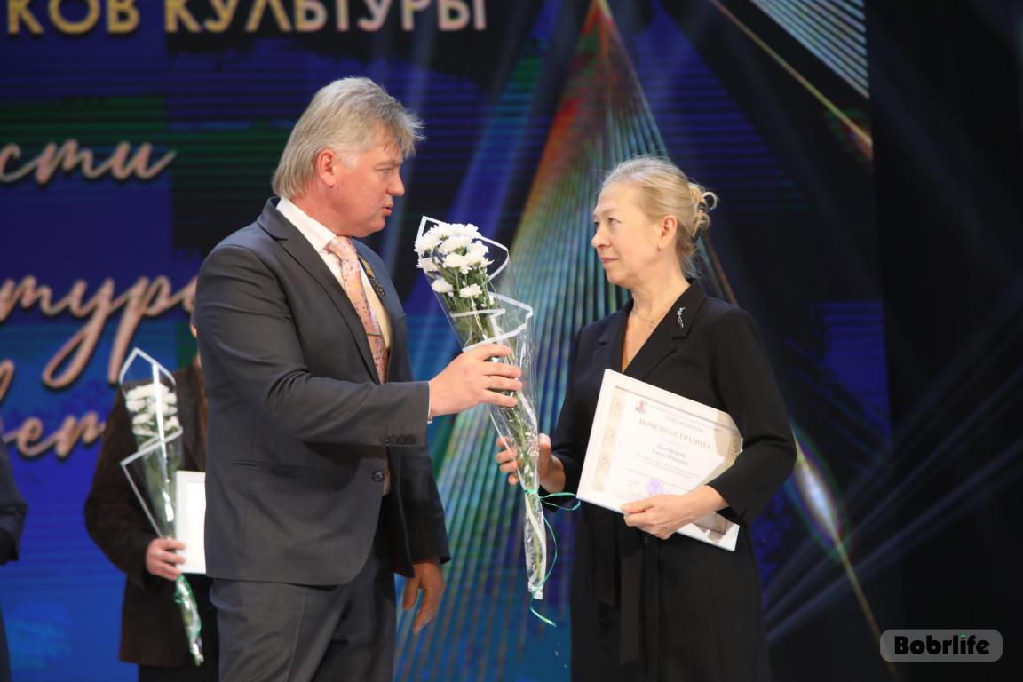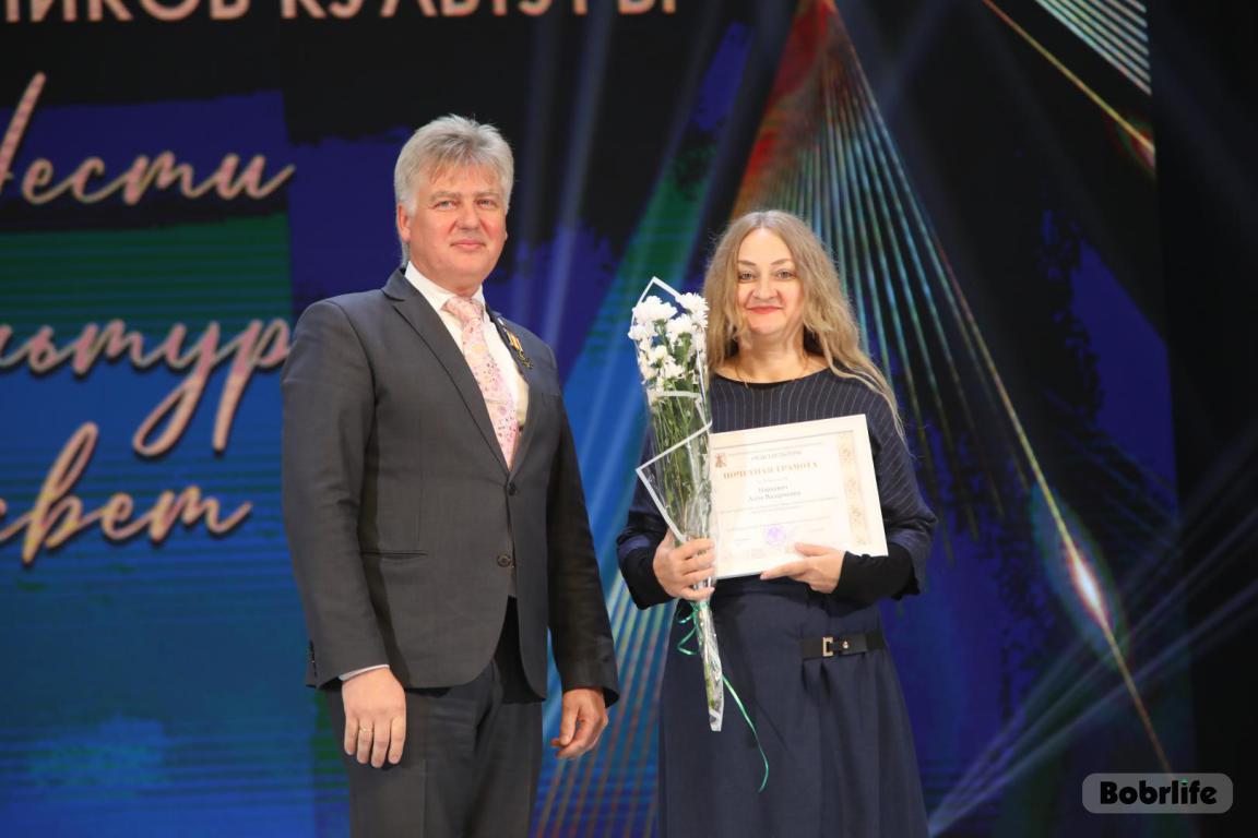 15 октября во Дворце искусств работников культуры чествовали на праздничном мероприятии. И все направления их плодотворной деятельности отразились в тематических выставках и концертных выступлениях. Почетными гостями стали заместитель председателя Бобруйского горисполкома Владимир Книга, главы администраций Первомайского и Ленинского районов Виталий Власевич и Марина Згорская, начальник отдела народного творчества, культурно-досуговой деятельности и учреждений образования управления культуры Могилевского облисполкома Александр Глуздов, председатель Могилевской областной организации Белорусского профсоюза работников культуры, информации, спорта и туризма Андрей Заблоцкий, заслуженный деятель культуры Республики Беларусь Анатолий Синковец. Каждый из гостей искренне поздравлял хранителей искусства с профессиональным праздником, адресуя им самые теплые пожелания и благодарные слова. От почетных гостей звучали пожелания здоровья и счастья, любви, тепла и уюта людям, которые «воспитывают души», и чтобы «талант всегда находил отклик в сердцах». Профессионалам сферы культуры торжественно вручили почетные грамоты и благодарности за достижения в работе, ветеранам в знак признательности – цветы.
