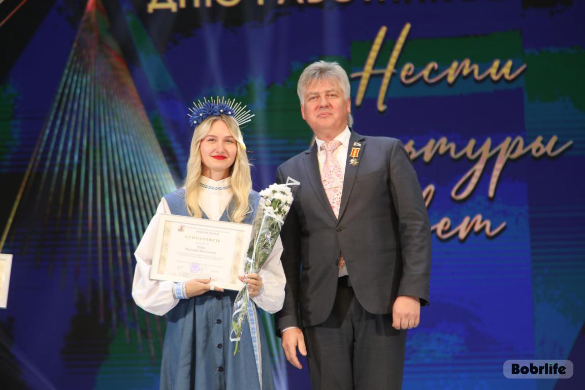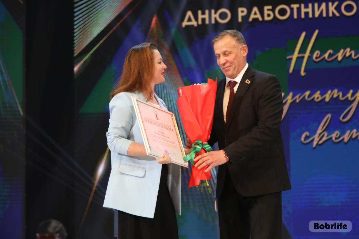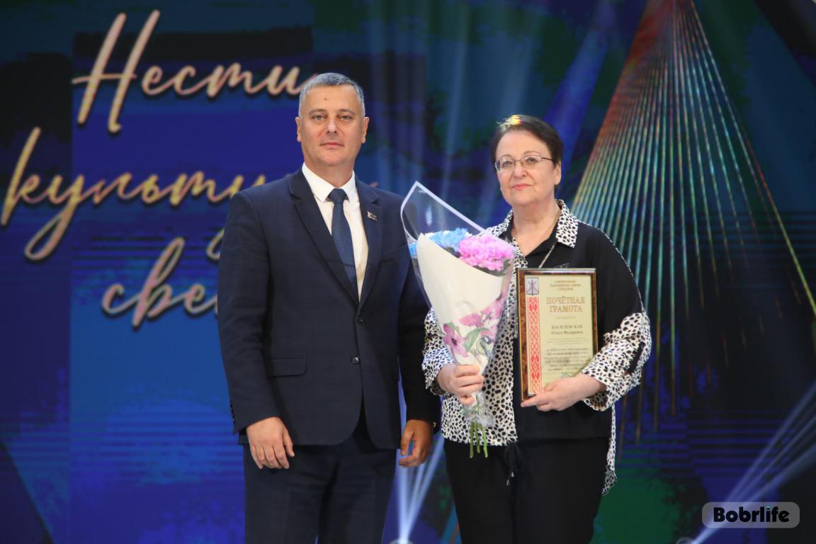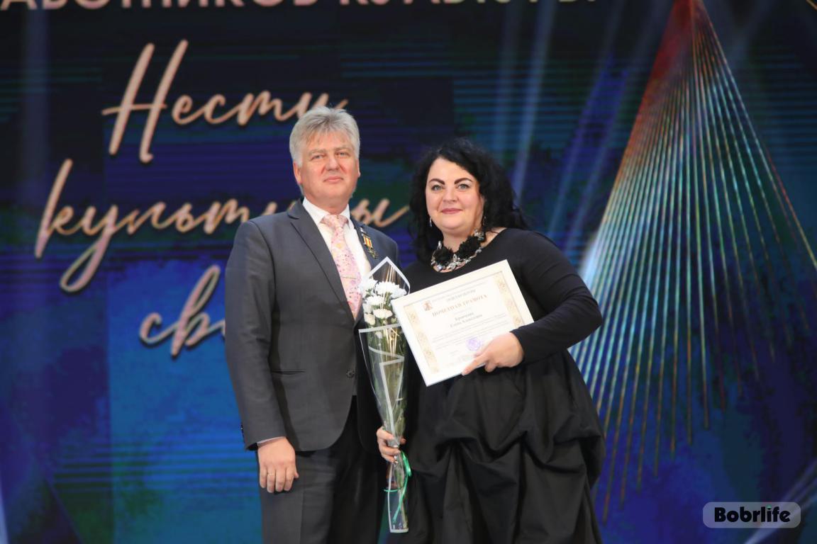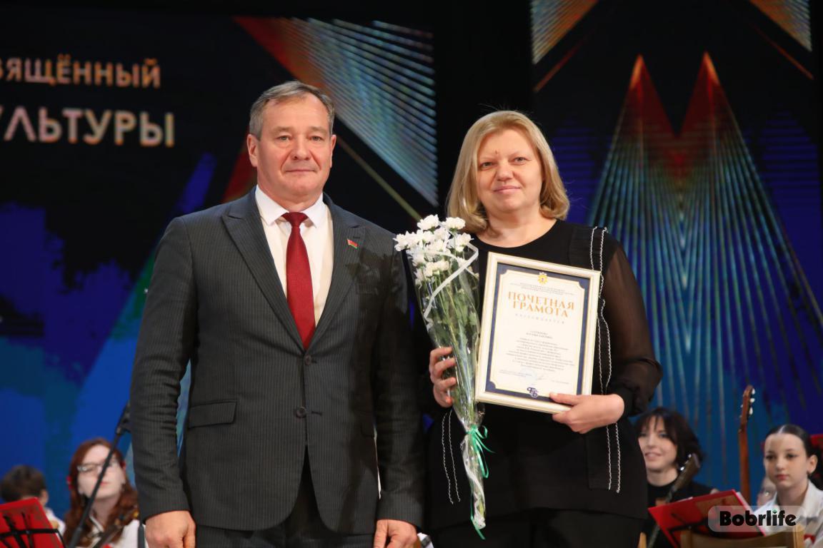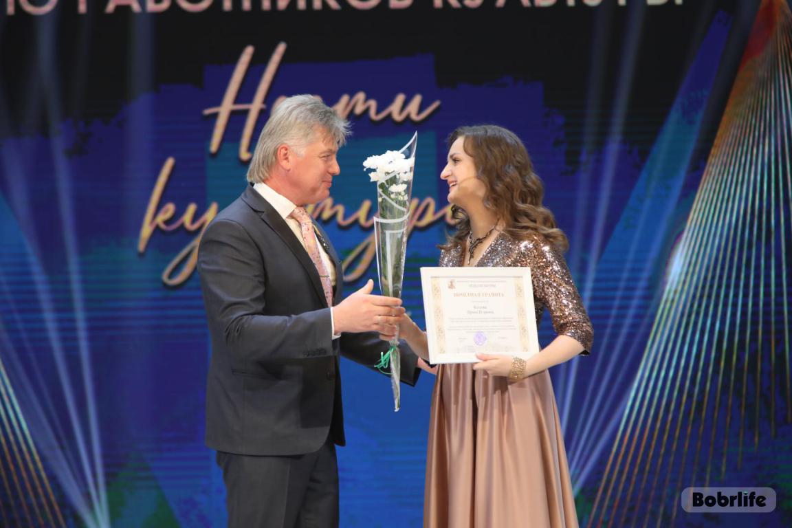 15 октября во Дворце искусств работников культуры чествовали на праздничном мероприятии. И все направления их плодотворной деятельности отразились в тематических выставках и концертных выступлениях. Почетными гостями стали заместитель председателя Бобруйского горисполкома Владимир Книга, главы администраций Первомайского и Ленинского районов Виталий Власевич и Марина Згорская, начальник отдела народного творчества, культурно-досуговой деятельности и учреждений образования управления культуры Могилевского облисполкома Александр Глуздов, председатель Могилевской областной организации Белорусского профсоюза работников культуры, информации, спорта и туризма Андрей Заблоцкий, заслуженный деятель культуры Республики Беларусь Анатолий Синковец. Каждый из гостей искренне поздравлял хранителей искусства с профессиональным праздником, адресуя им самые теплые пожелания и благодарные слова. От почетных гостей звучали пожелания здоровья и счастья, любви, тепла и уюта людям, которые «воспитывают души», и чтобы «талант всегда находил отклик в сердцах». Профессионалам сферы культуры торжественно вручили почетные грамоты и благодарности за достижения в работе, ветеранам в знак признательности – цветы.