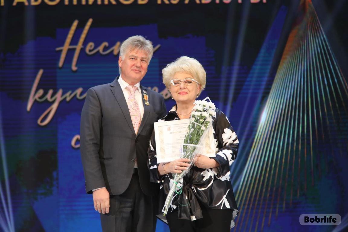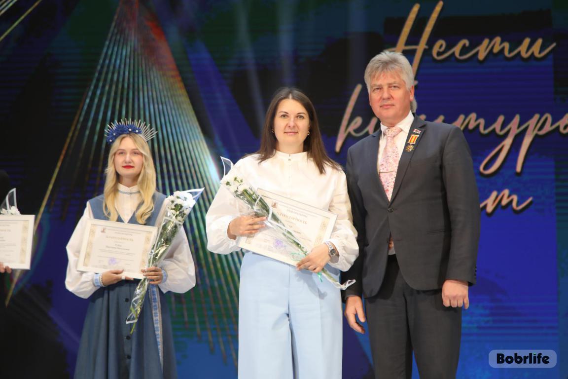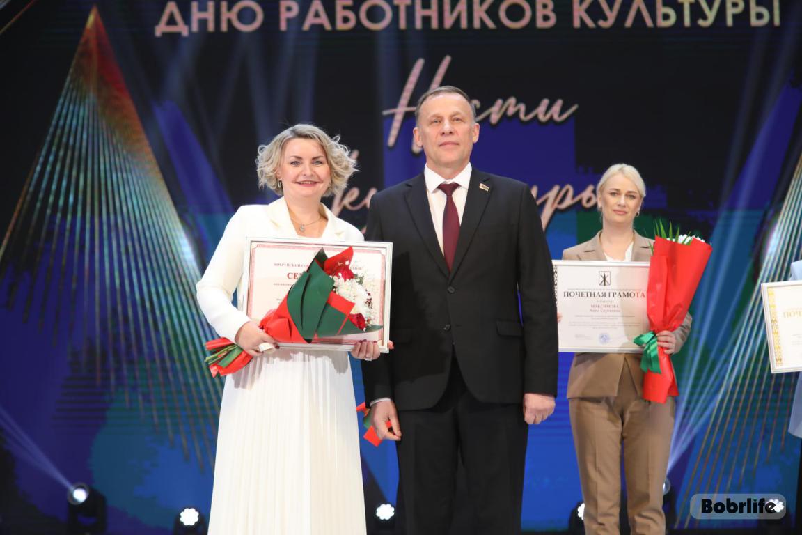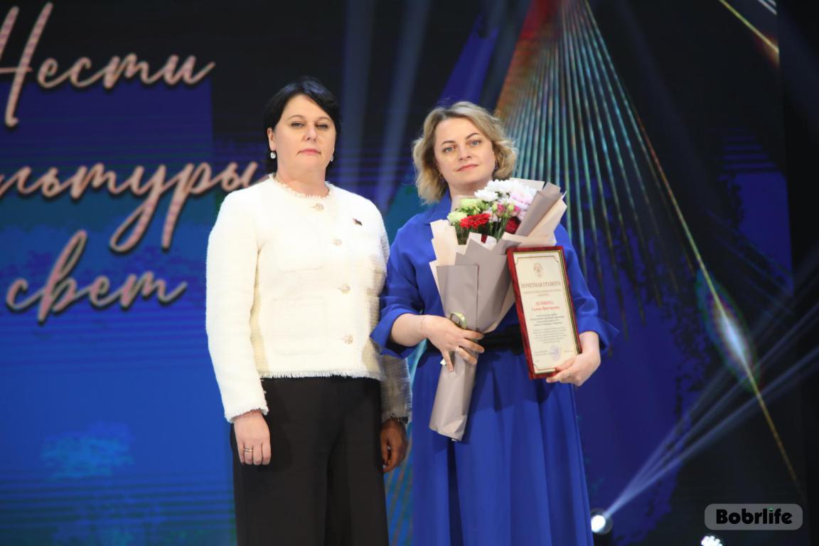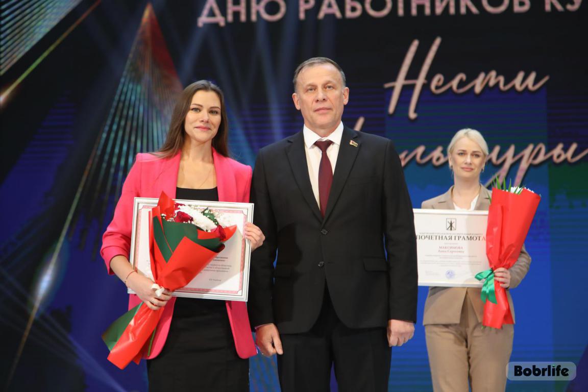 15 октября во Дворце искусств работников культуры чествовали на праздничном мероприятии. И все направления их плодотворной деятельности отразились в тематических выставках и концертных выступлениях. Почетными гостями стали заместитель председателя Бобруйского горисполкома Владимир Книга, главы администраций Первомайского и Ленинского районов Виталий Власевич и Марина Згорская, начальник отдела народного творчества, культурно-досуговой деятельности и учреждений образования управления культуры Могилевского облисполкома Александр Глуздов, председатель Могилевской областной организации Белорусского профсоюза работников культуры, информации, спорта и туризма Андрей Заблоцкий, заслуженный деятель культуры Республики Беларусь Анатолий Синковец. Каждый из гостей искренне поздравлял хранителей искусства с профессиональным праздником, адресуя им самые теплые пожелания и благодарные слова. От почетных гостей звучали пожелания здоровья и счастья, любви, тепла и уюта людям, которые «воспитывают души», и чтобы «талант всегда находил отклик в сердцах». Профессионалам сферы культуры торжественно вручили почетные грамоты и благодарности за достижения в работе, ветеранам в знак признательности – цветы.