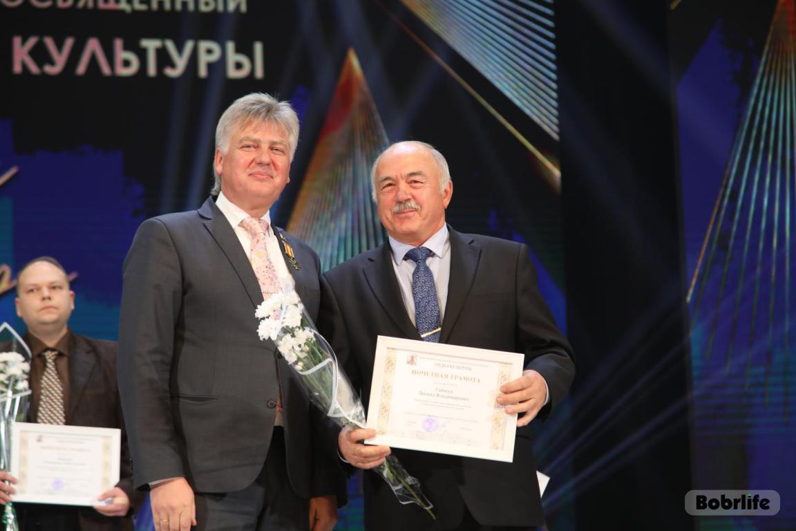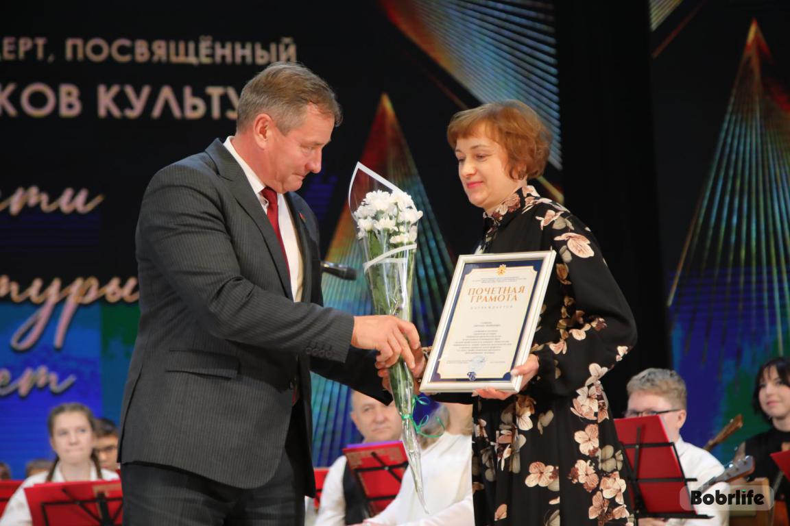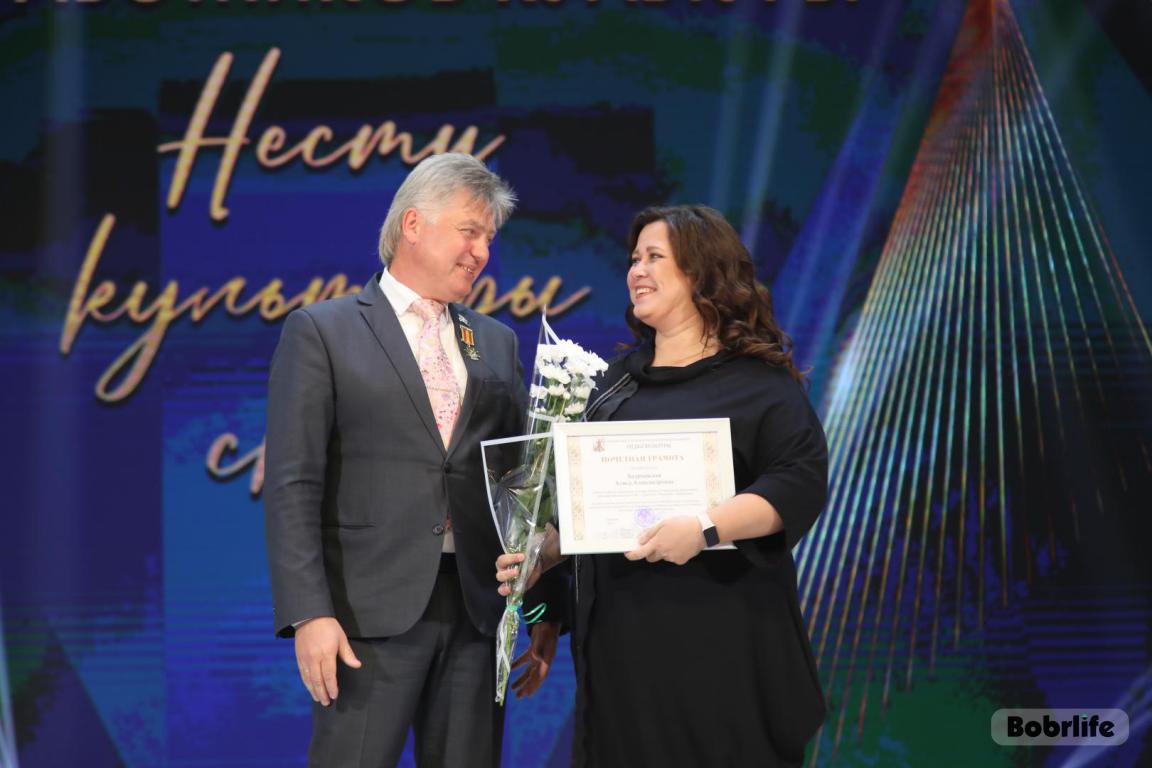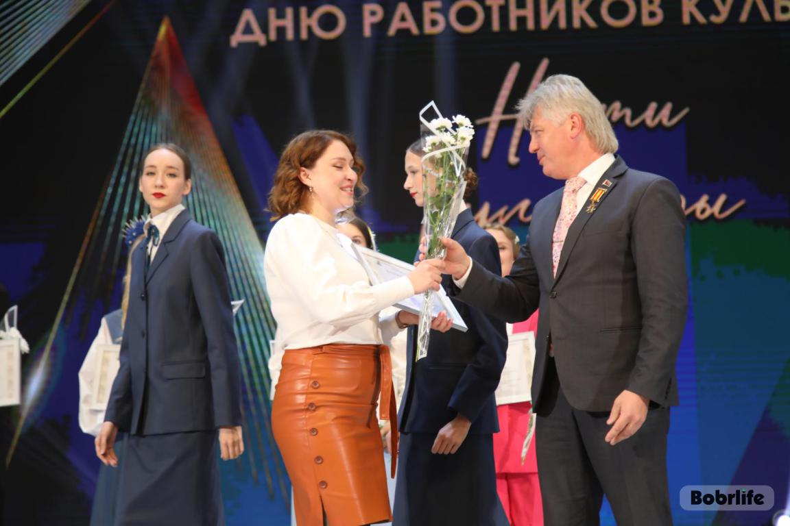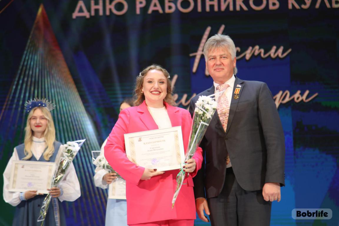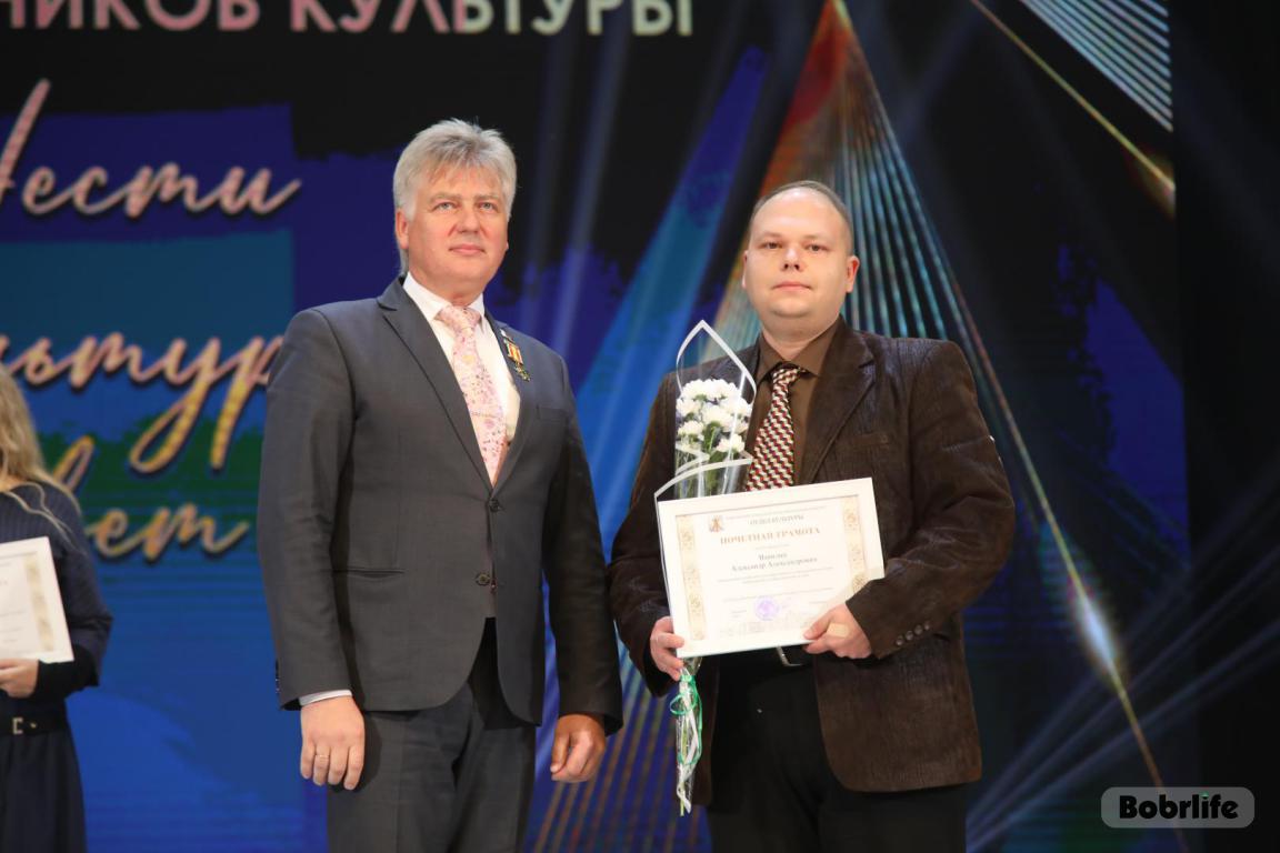 15 октября во Дворце искусств работников культуры чествовали на праздничном мероприятии. И все направления их плодотворной деятельности отразились в тематических выставках и концертных выступлениях. Почетными гостями стали заместитель председателя Бобруйского горисполкома Владимир Книга, главы администраций Первомайского и Ленинского районов Виталий Власевич и Марина Згорская, начальник отдела народного творчества, культурно-досуговой деятельности и учреждений образования управления культуры Могилевского облисполкома Александр Глуздов, председатель Могилевской областной организации Белорусского профсоюза работников культуры, информации, спорта и туризма Андрей Заблоцкий, заслуженный деятель культуры Республики Беларусь Анатолий Синковец. Каждый из гостей искренне поздравлял хранителей искусства с профессиональным праздником, адресуя им самые теплые пожелания и благодарные слова. От почетных гостей звучали пожелания здоровья и счастья, любви, тепла и уюта людям, которые «воспитывают души», и чтобы «талант всегда находил отклик в сердцах». Профессионалам сферы культуры торжественно вручили почетные грамоты и благодарности за достижения в работе, ветеранам в знак признательности – цветы.