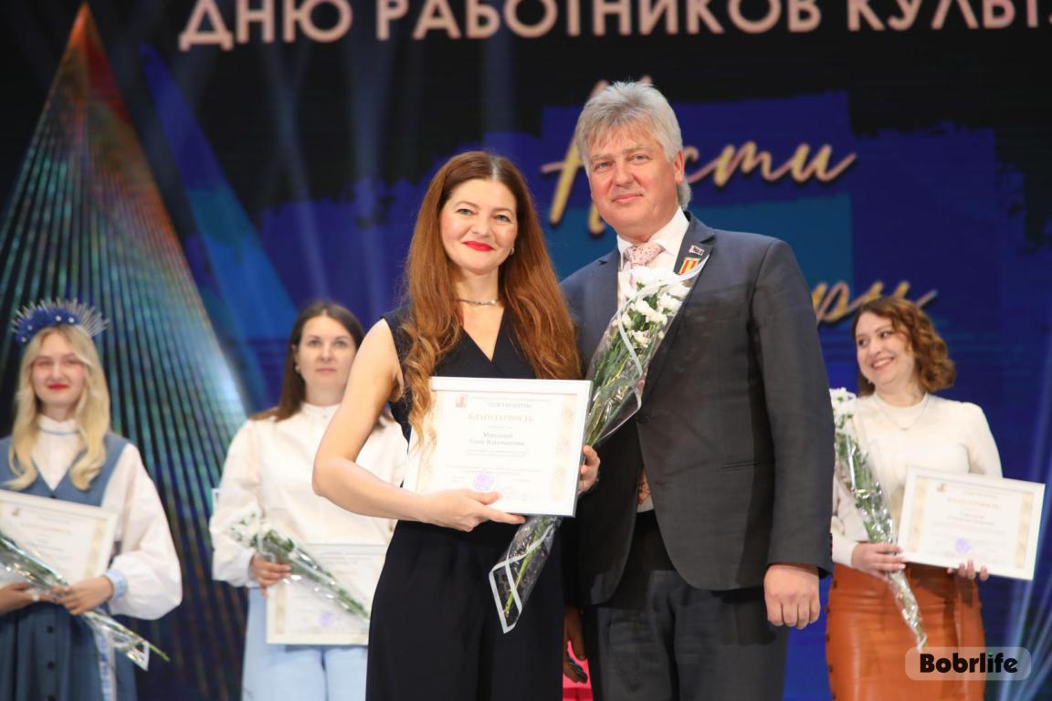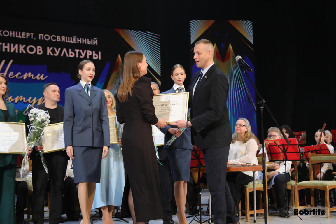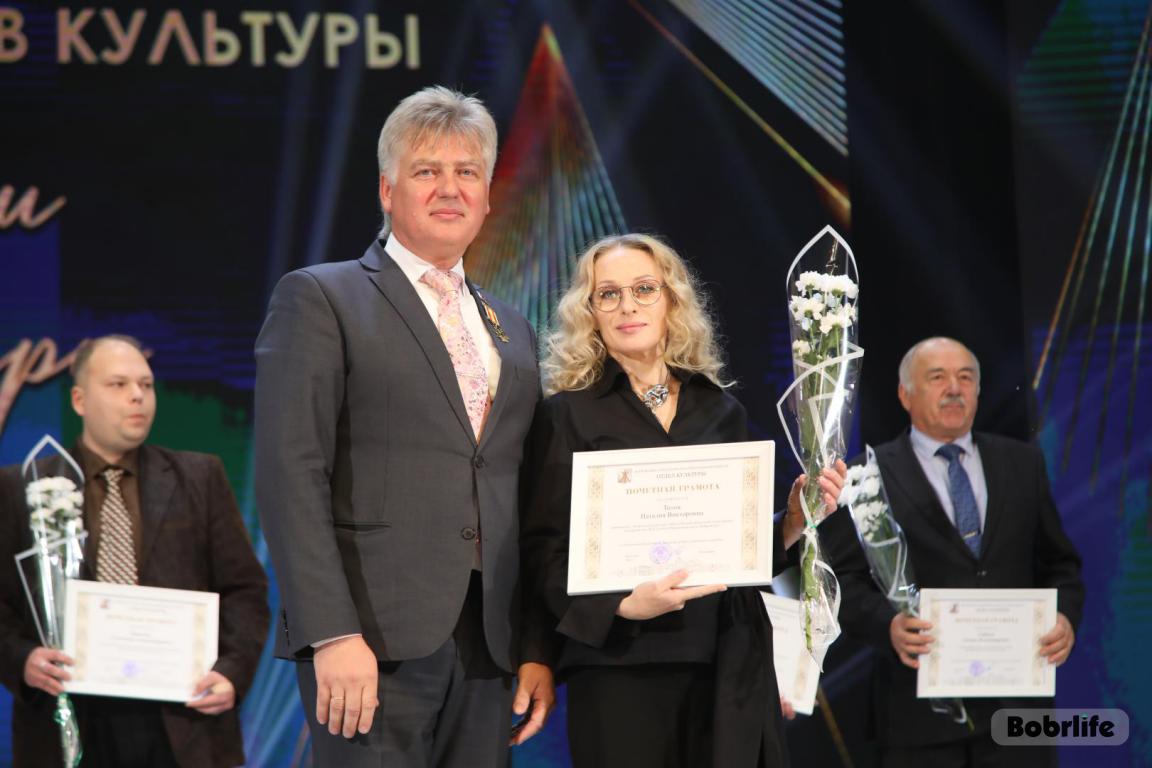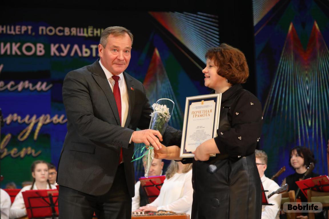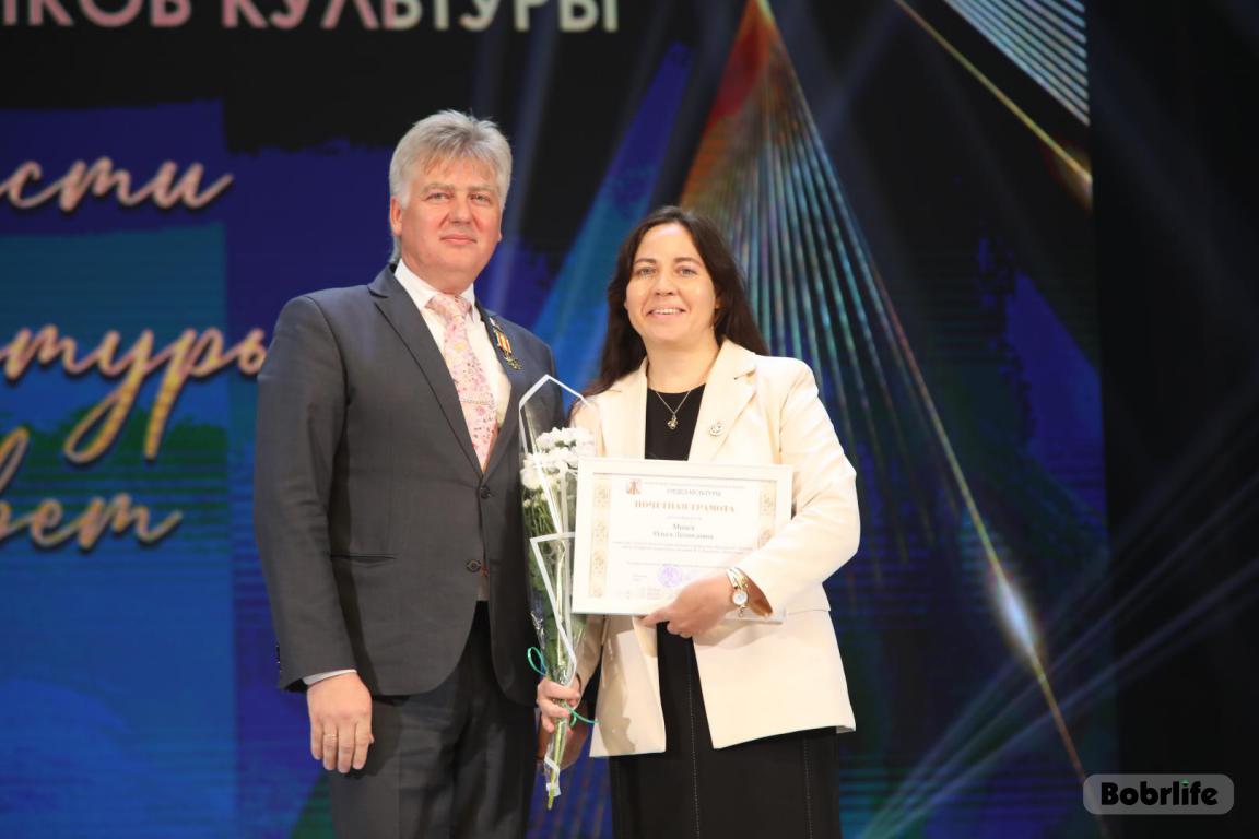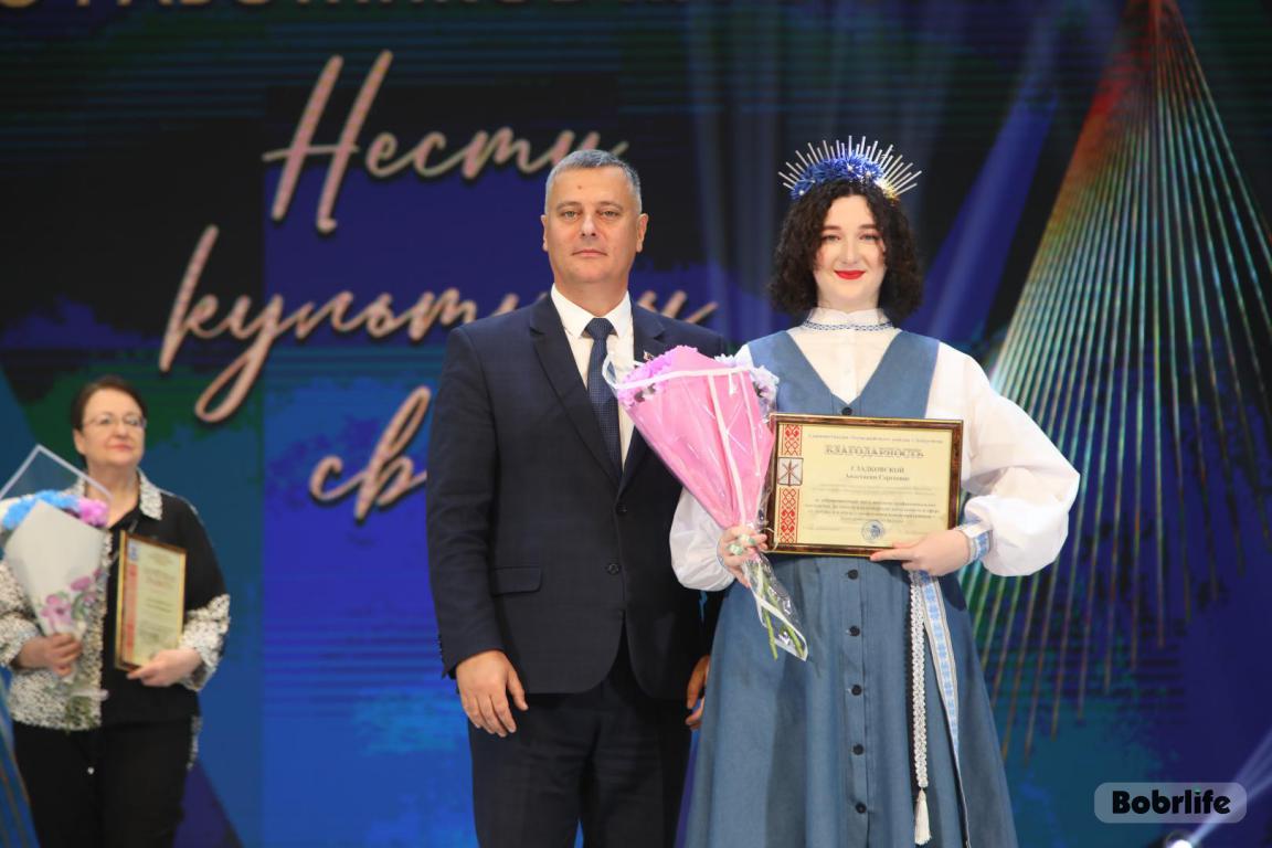 15 октября во Дворце искусств работников культуры чествовали на праздничном мероприятии. И все направления их плодотворной деятельности отразились в тематических выставках и концертных выступлениях. Почетными гостями стали заместитель председателя Бобруйского горисполкома Владимир Книга, главы администраций Первомайского и Ленинского районов Виталий Власевич и Марина Згорская, начальник отдела народного творчества, культурно-досуговой деятельности и учреждений образования управления культуры Могилевского облисполкома Александр Глуздов, председатель Могилевской областной организации Белорусского профсоюза работников культуры, информации, спорта и туризма Андрей Заблоцкий, заслуженный деятель культуры Республики Беларусь Анатолий Синковец. Каждый из гостей искренне поздравлял хранителей искусства с профессиональным праздником, адресуя им самые теплые пожелания и благодарные слова. От почетных гостей звучали пожелания здоровья и счастья, любви, тепла и уюта людям, которые «воспитывают души», и чтобы «талант всегда находил отклик в сердцах». Профессионалам сферы культуры торжественно вручили почетные грамоты и благодарности за достижения в работе, ветеранам в знак признательности – цветы.