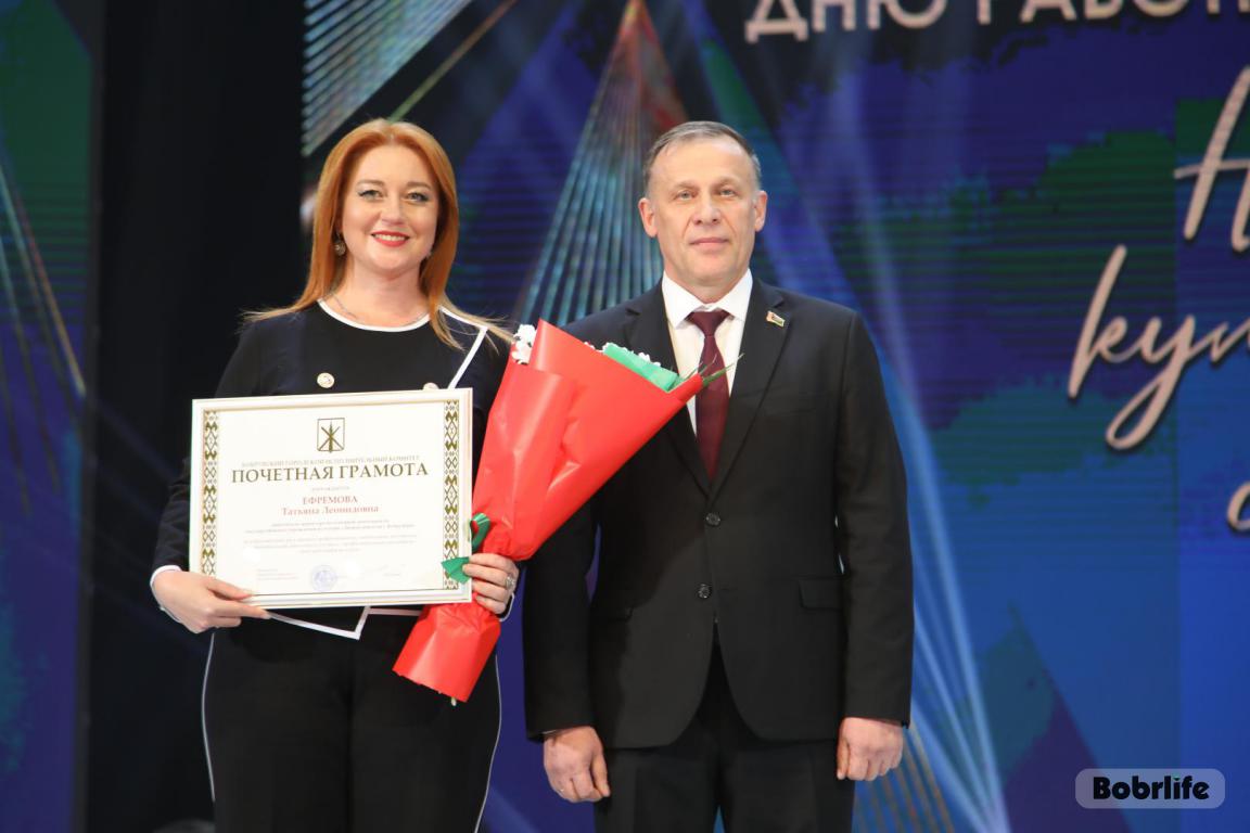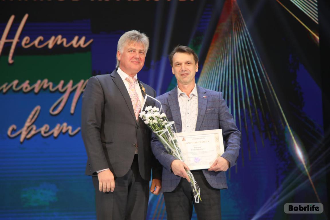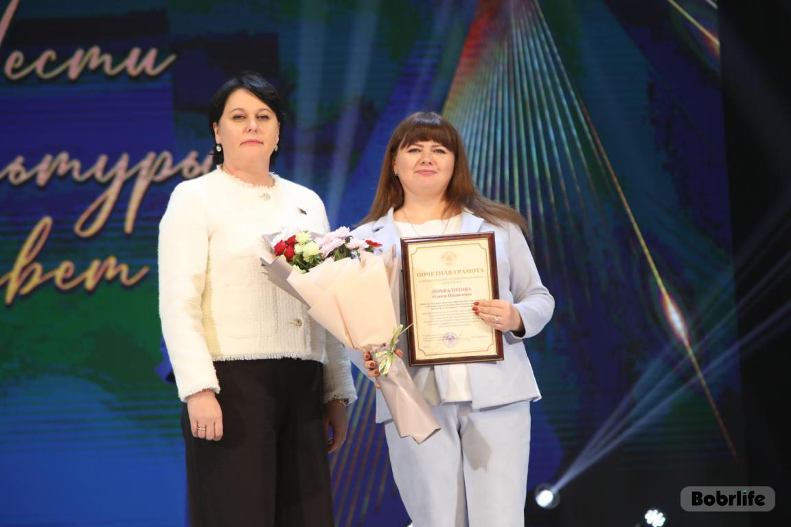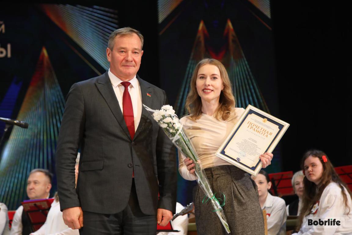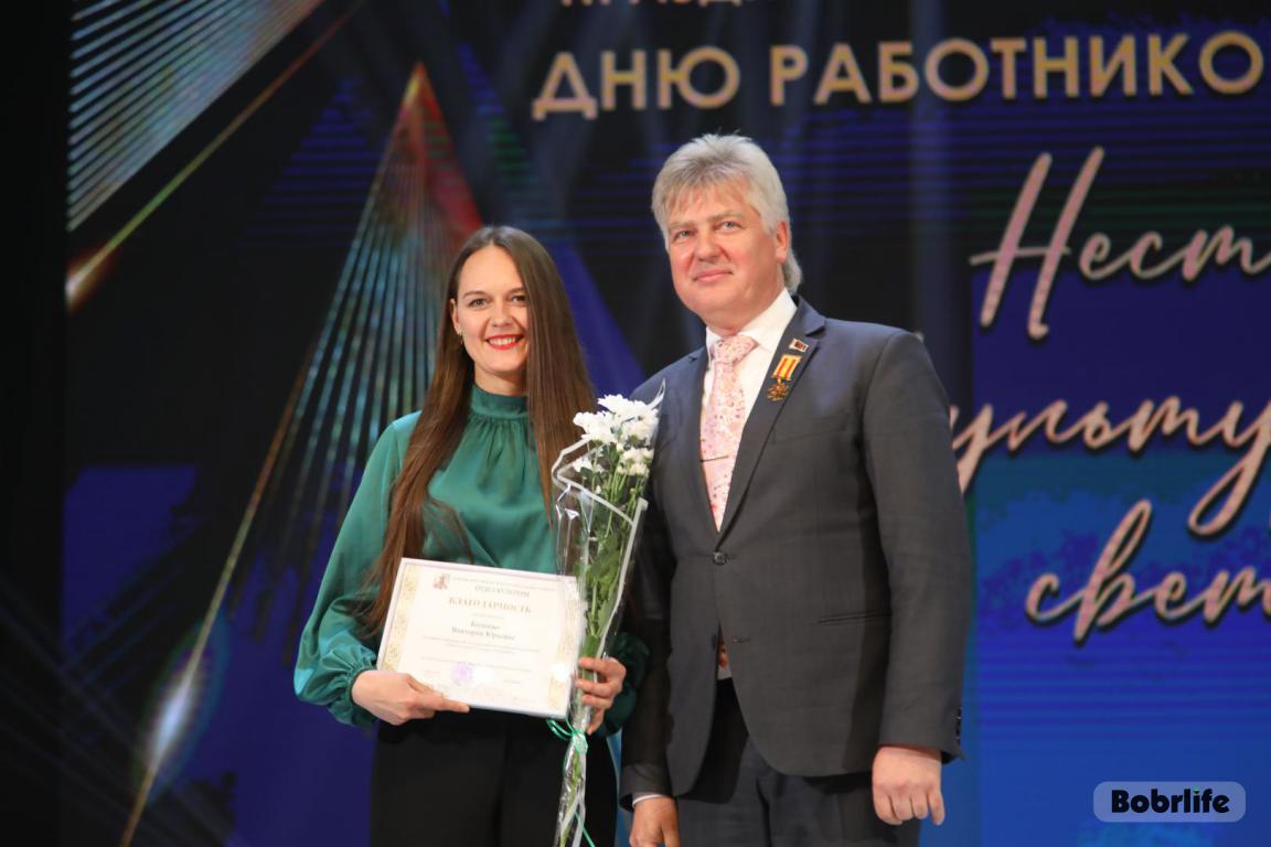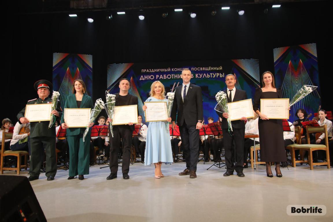 15 октября во Дворце искусств работников культуры чествовали на праздничном мероприятии. И все направления их плодотворной деятельности отразились в тематических выставках и концертных выступлениях. Почетными гостями стали заместитель председателя Бобруйского горисполкома Владимир Книга, главы администраций Первомайского и Ленинского районов Виталий Власевич и Марина Згорская, начальник отдела народного творчества, культурно-досуговой деятельности и учреждений образования управления культуры Могилевского облисполкома Александр Глуздов, председатель Могилевской областной организации Белорусского профсоюза работников культуры, информации, спорта и туризма Андрей Заблоцкий, заслуженный деятель культуры Республики Беларусь Анатолий Синковец. Каждый из гостей искренне поздравлял хранителей искусства с профессиональным праздником, адресуя им самые теплые пожелания и благодарные слова. От почетных гостей звучали пожелания здоровья и счастья, любви, тепла и уюта людям, которые «воспитывают души», и чтобы «талант всегда находил отклик в сердцах». Профессионалам сферы культуры торжественно вручили почетные грамоты и благодарности за достижения в работе, ветеранам в знак признательности – цветы.
