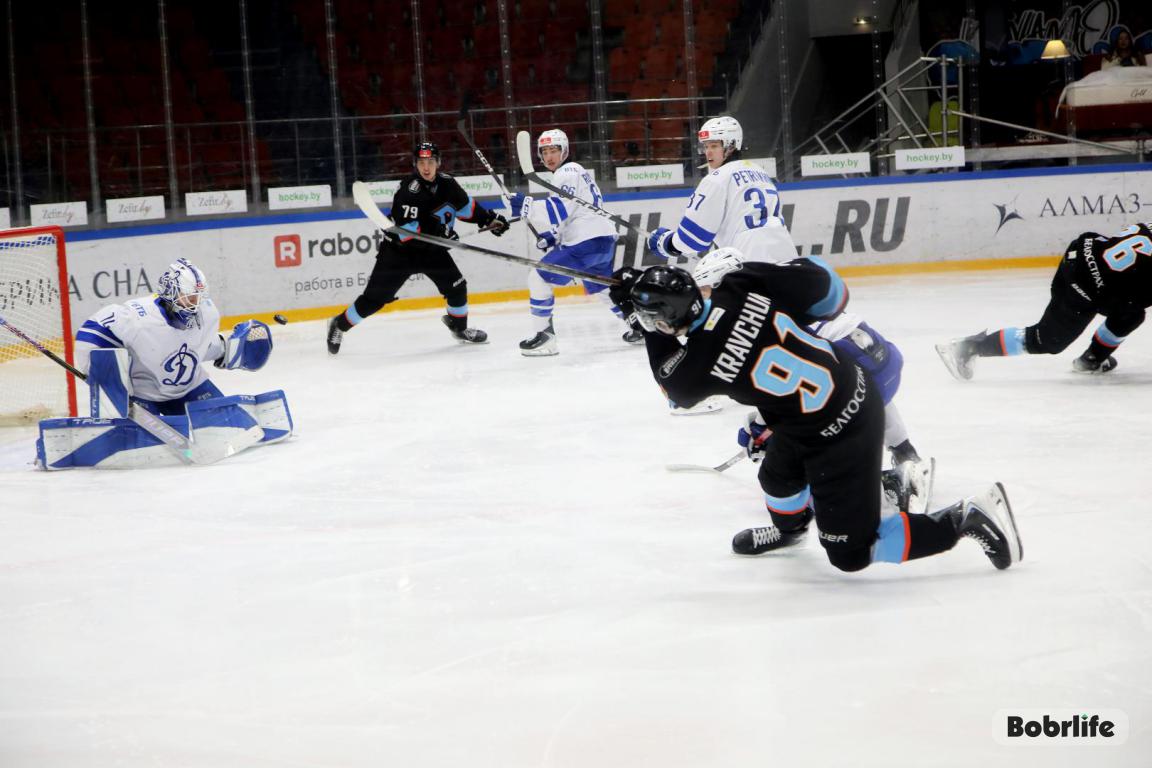 В рамках регулярного чемпионата МХЛ «бобры» на домашней арене обыграли МХК «Динамо-Москва» (в повторной встрече) со счетом 3:2.