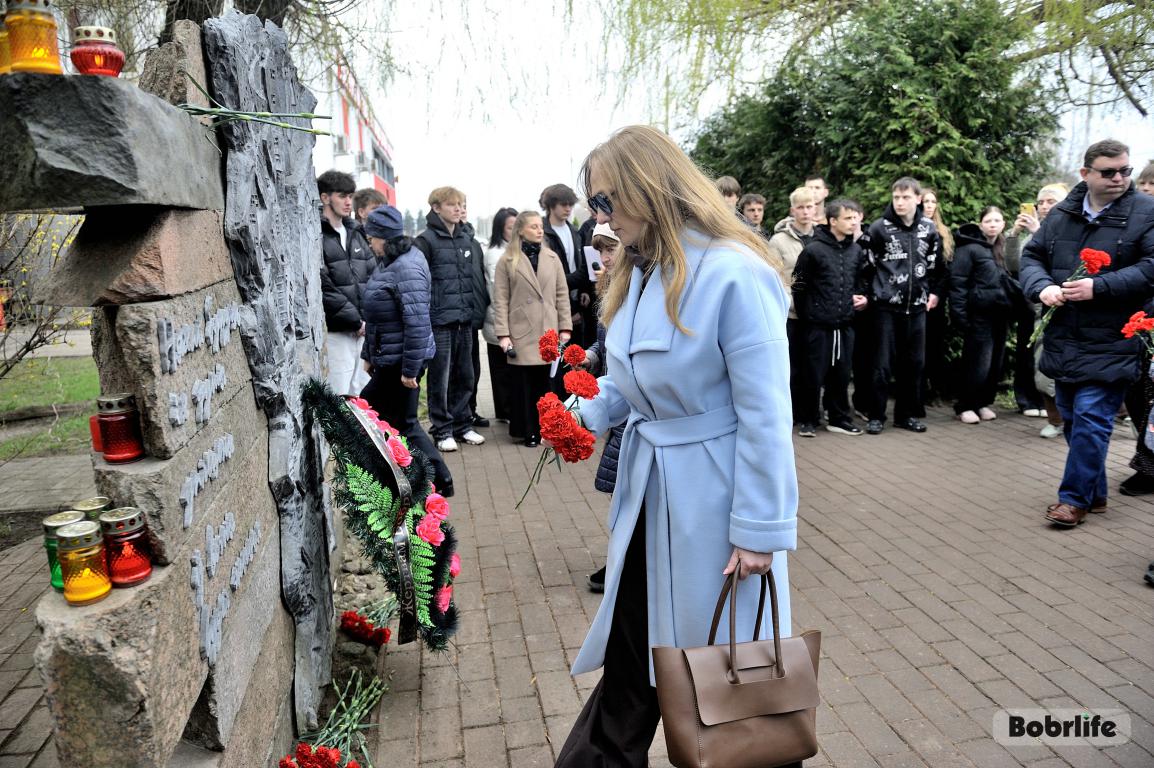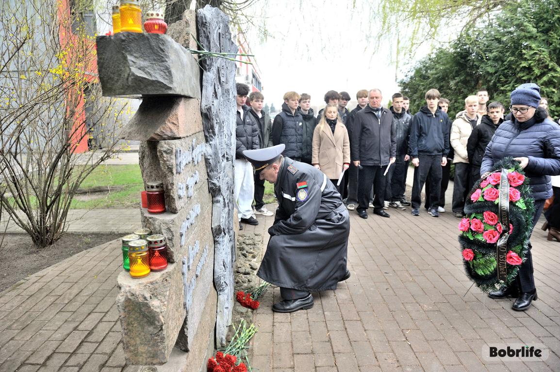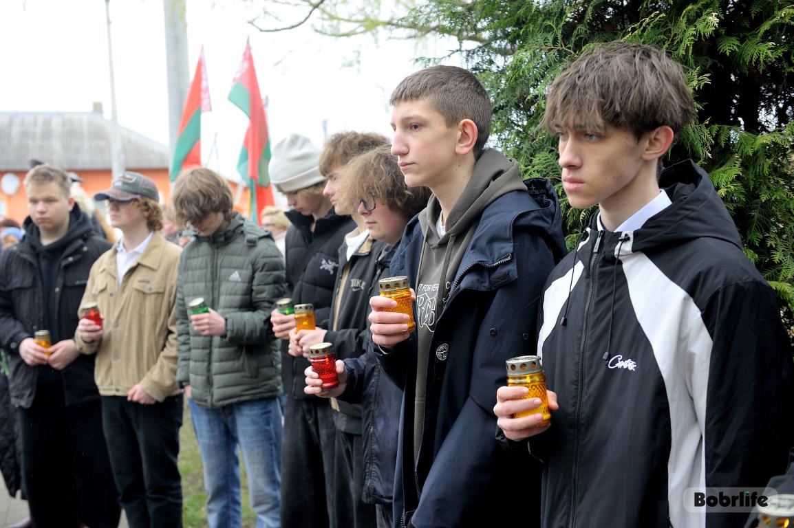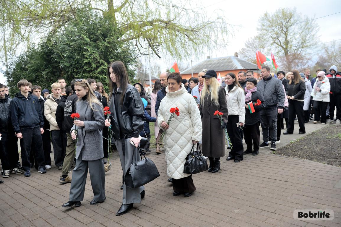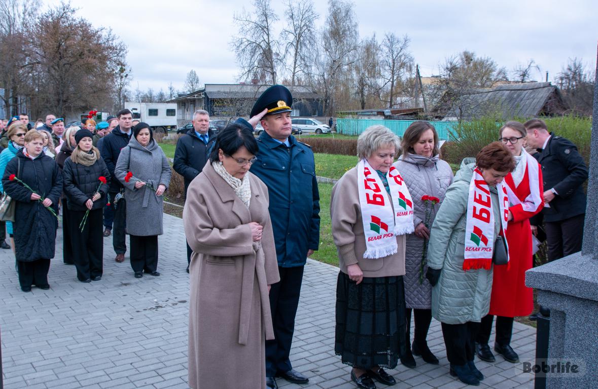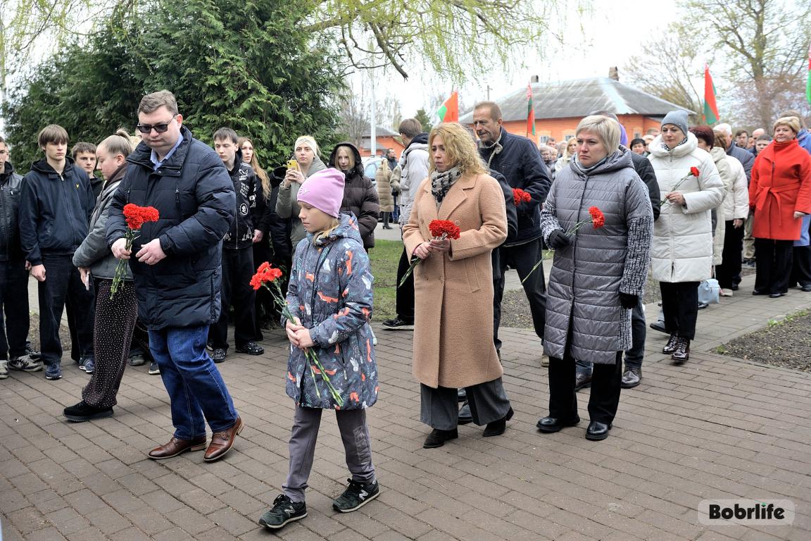 События Великой Отечественной войны стали страшной страницей истории нашего города. Каратели организовали на территории Бобруйской крепости лагерь смерти № 131, устроили в городе гетто, куда согнали все еврейское население Бобруйска, впоследствии зверски уничтоженное в 1941 году возле деревень Каменка и Еловики. В знак глубокой скорби и вечной памяти о безвинно погибших людях, в Международный день освобождения узников фашистских концлагерей неравнодушная молодежь и трудовые коллективы предприятий и организаций нашего города возложили цветы к мемориальному знаку «Узникам Бобруйского гетто». Разделили скорбь с горожанами глава администрации Первомайского района Виталий Власевич, заведующий сектором идеологической работы и по делам молодежи администрации Первомайского района Марта Чичерина, первый секретарь Первомайского РК ОО «БРСМ» Елена Евладова.
