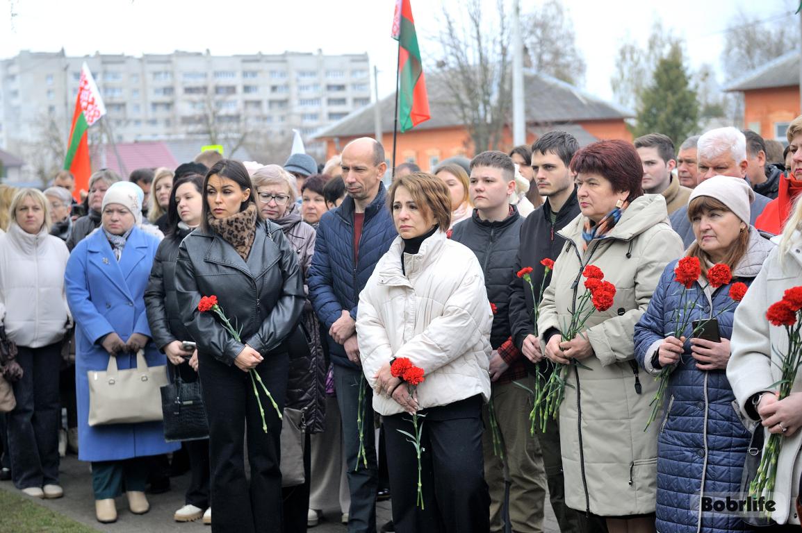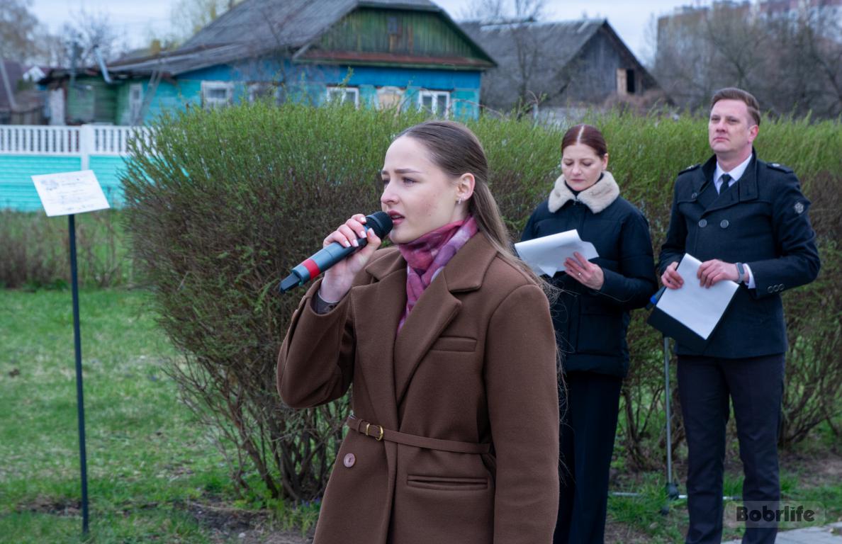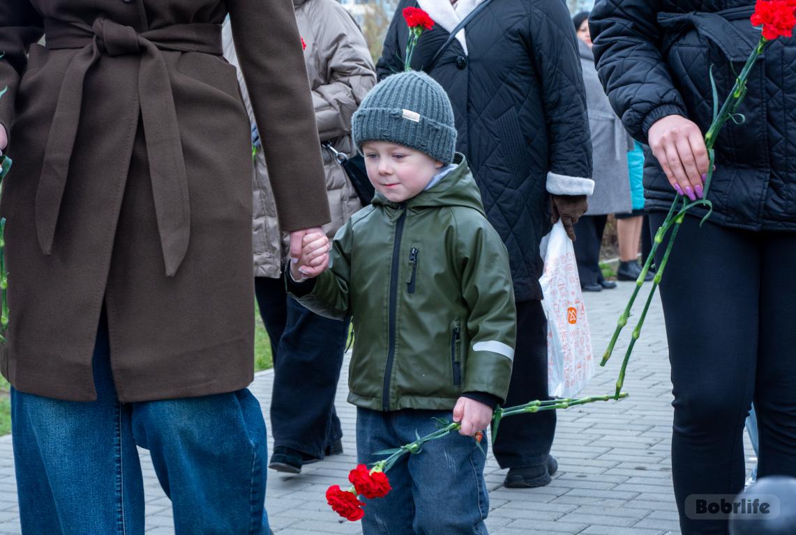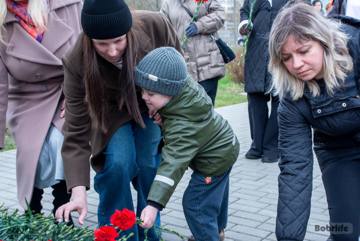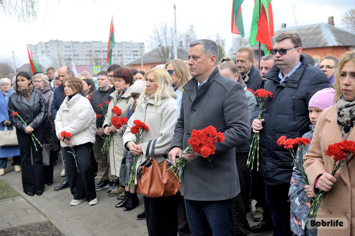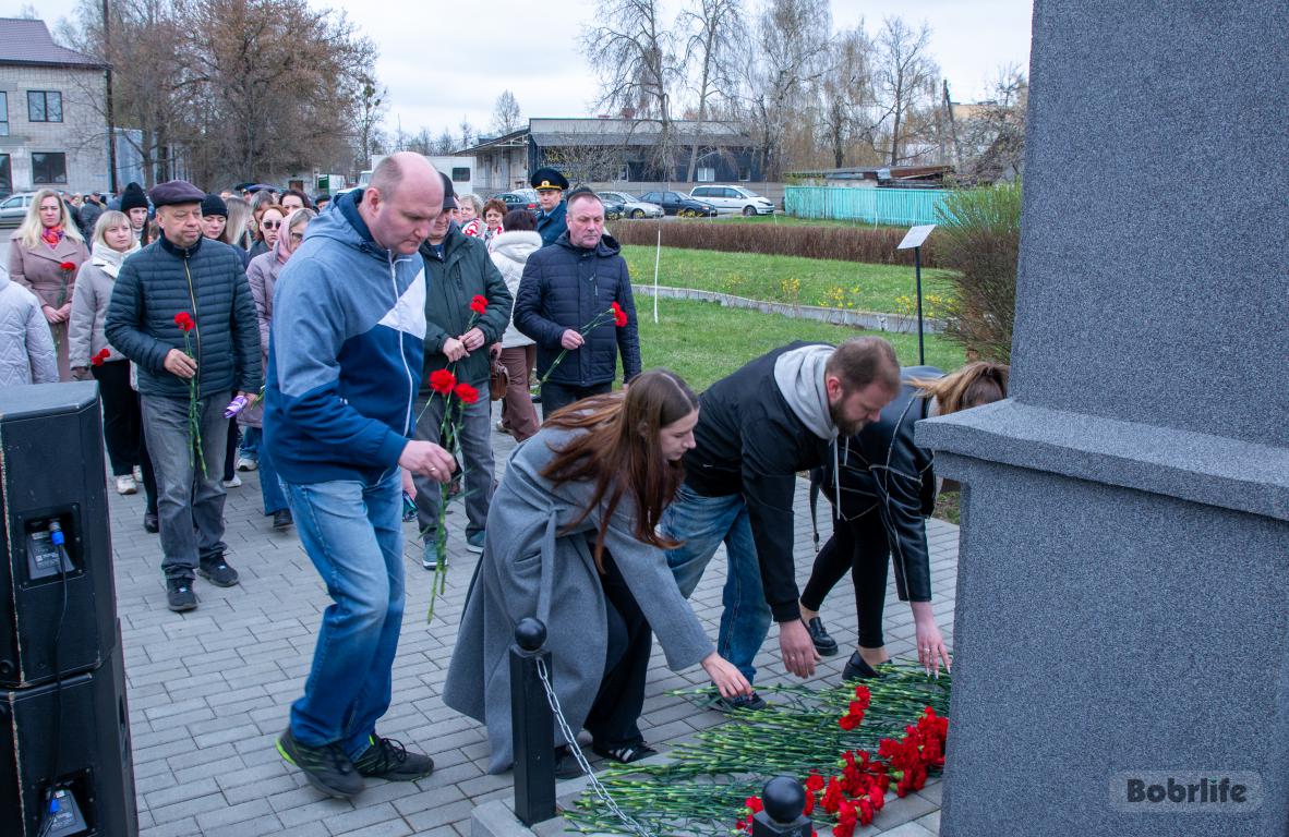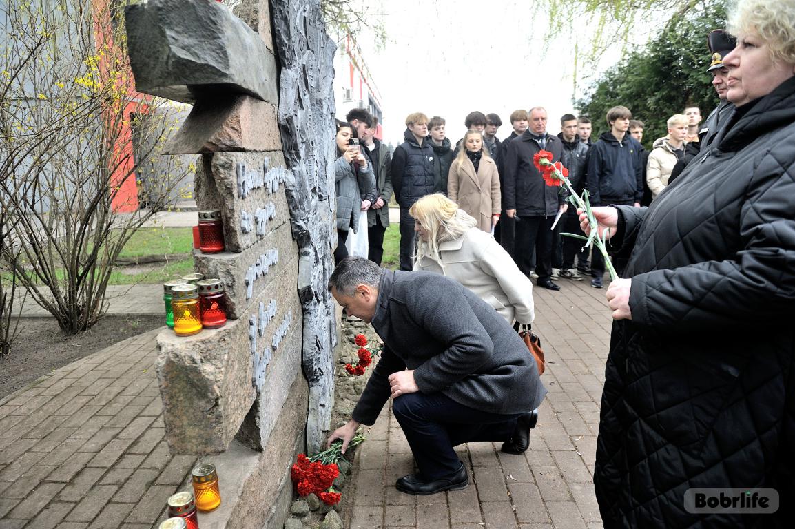 События Великой Отечественной войны стали страшной страницей истории нашего города. Каратели организовали на территории Бобруйской крепости лагерь смерти № 131, устроили в городе гетто, куда согнали все еврейское население Бобруйска, впоследствии зверски уничтоженное в 1941 году возле деревень Каменка и Еловики. В знак глубокой скорби и вечной памяти о безвинно погибших людях, в Международный день освобождения узников фашистских концлагерей неравнодушная молодежь и трудовые коллективы предприятий и организаций нашего города возложили цветы к мемориальному знаку «Узникам Бобруйского гетто». Разделили скорбь с горожанами глава администрации Первомайского района Виталий Власевич, заведующий сектором идеологической работы и по делам молодежи администрации Первомайского района Марта Чичерина, первый секретарь Первомайского РК ОО «БРСМ» Елена Евладова.