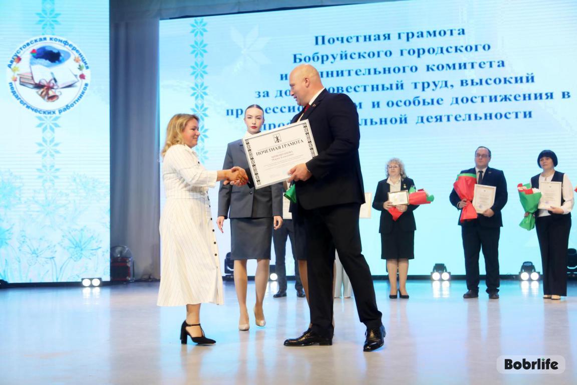 28 августа во Дворце искусств состоялась августовская педагогическая конференция. В конце последнего летнего месяца самое время подвести итоги учебного года, поставить новые цели на 2025-2026-й и поприветствовать молодых специалистов, которые прибыли в город на Березине, чтобы начать свой профессиональный путь. Поблагодарили за труд педагогов почетные гости – председатель Бобруйского горисполкома Максим Гурин, председатель Бобруйского городского Совета депутатов Ирина Рынейская, начальник управления по образованию горисполкома Елена Лисица, председатель Бобруйской городской организации профсоюза работников образования и науки Руслана Кравцова.
