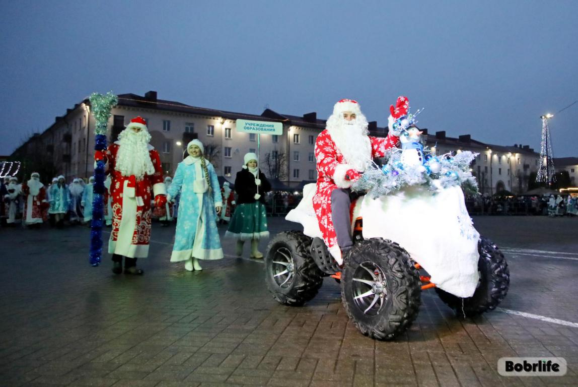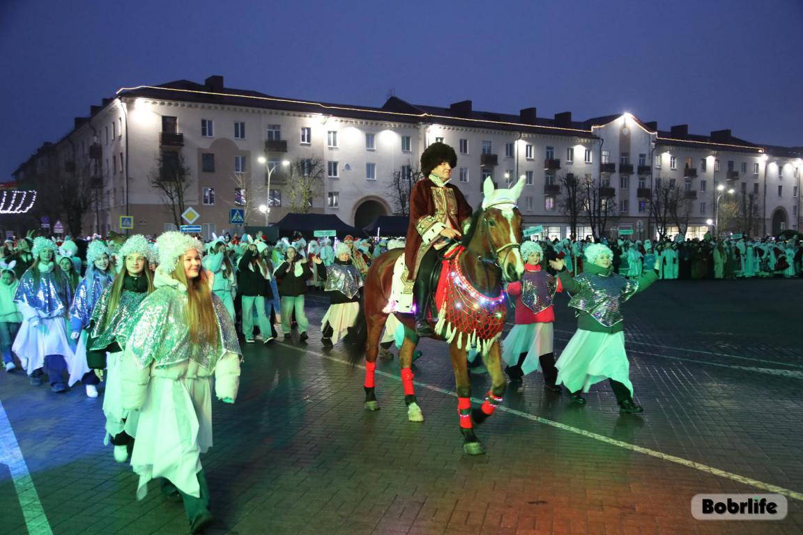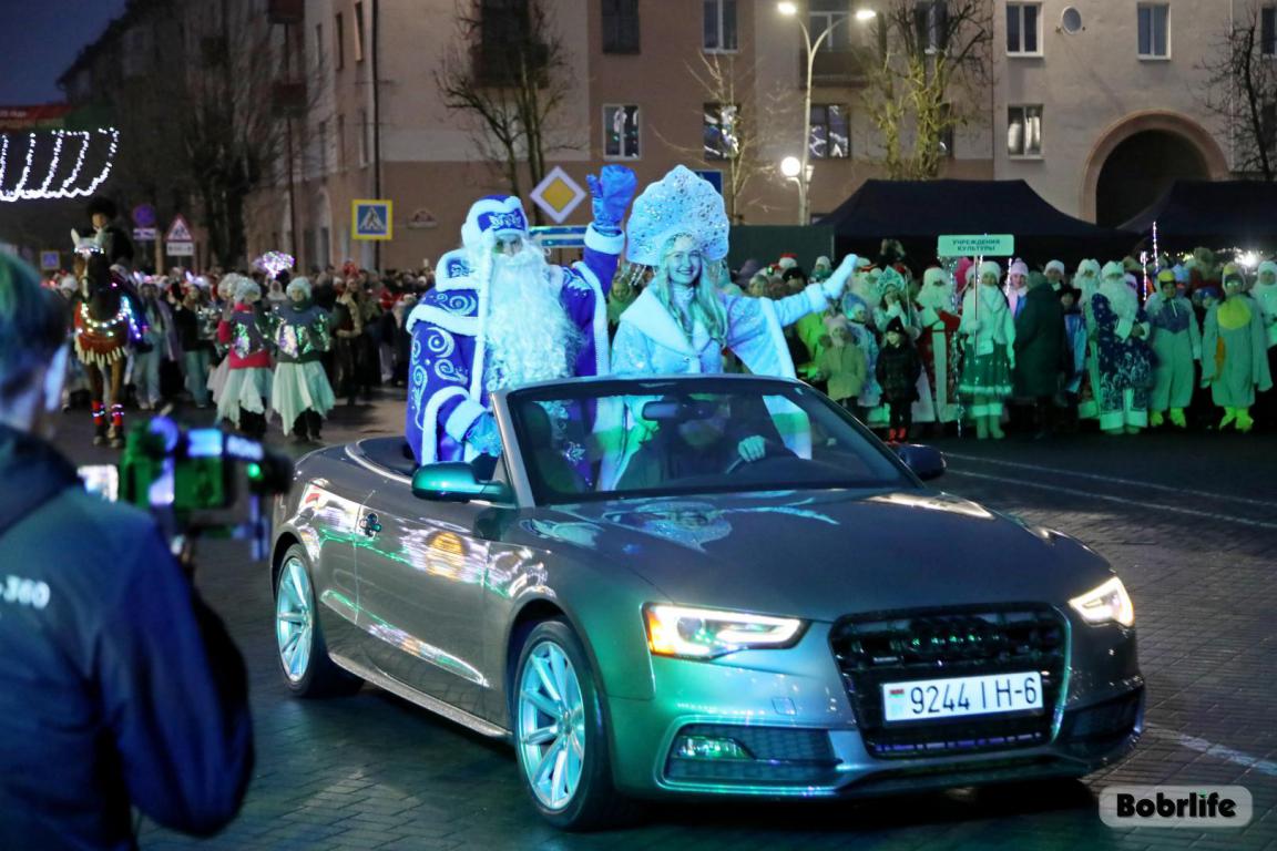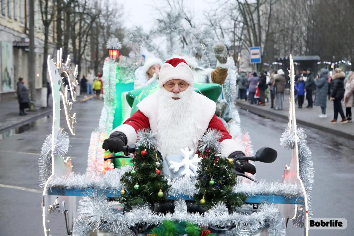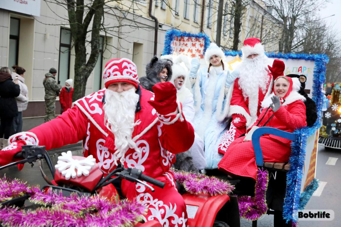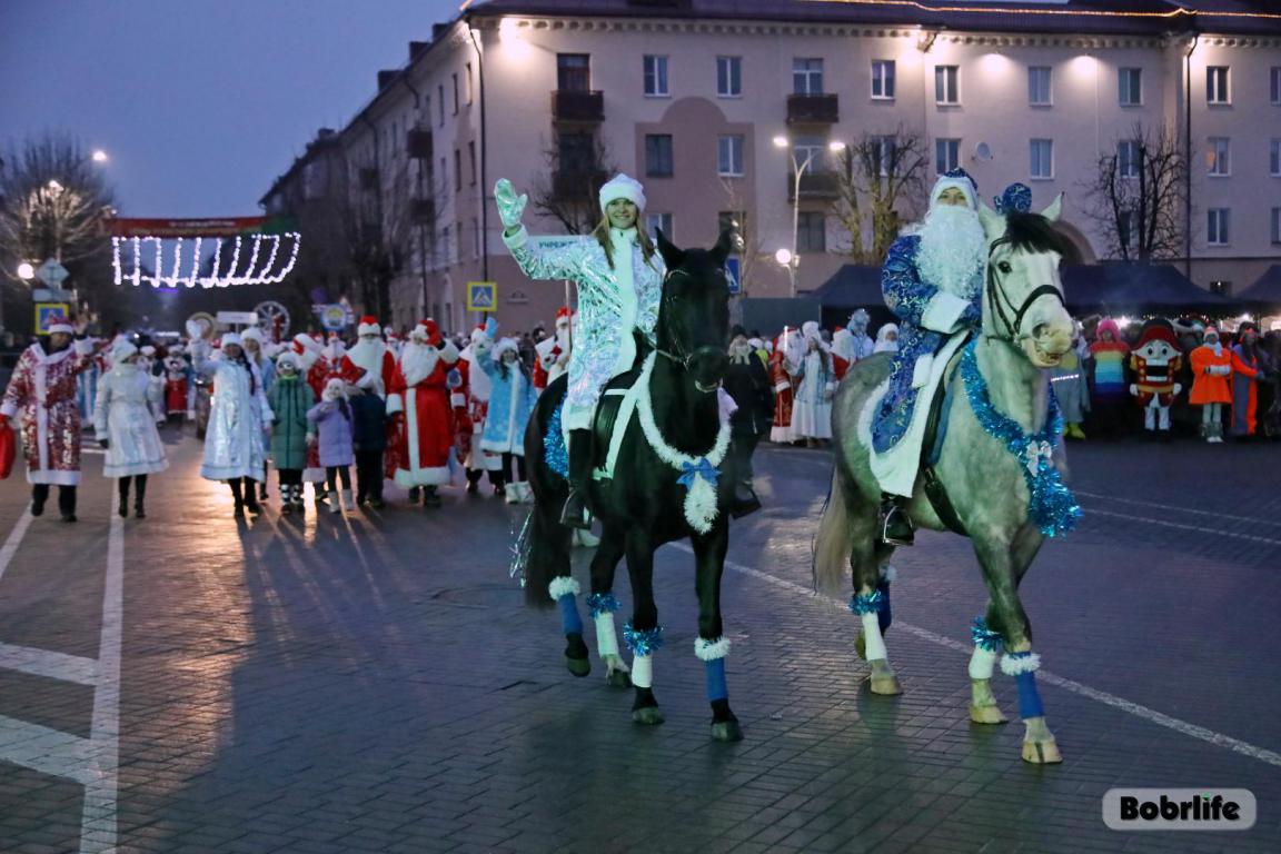 Парад зимних волшебников сопровождал празднично украшенный транспорт в сверкающих гирляндах и новогодних атрибутах. Деды Морозы и Снегурочки шли пешком, передвигались на мотоциклах, машинах и даже верхом на лошадях. Жители Бобруйска радостно приветствовали театрализованное шествие аплодисментами и восхищенными возгласами. К праздничному мероприятию присоединились руководство города и коллективы предприятий, организаций, учреждения образования и творческие объединения.