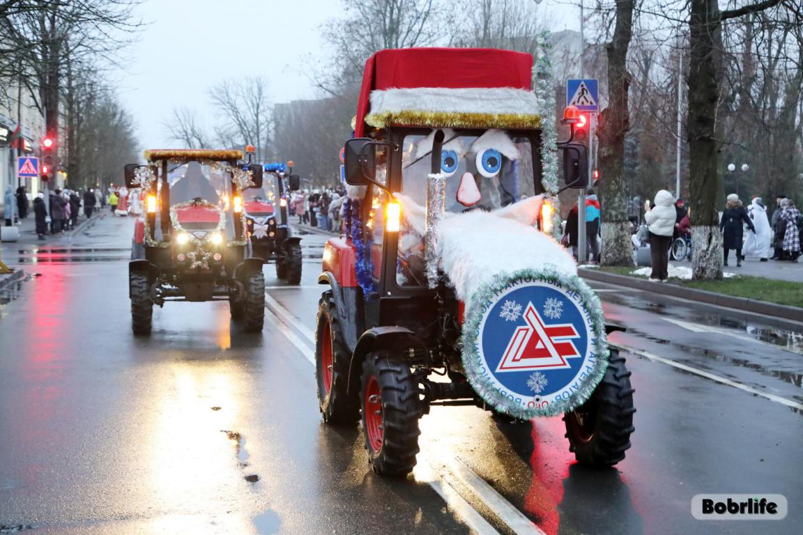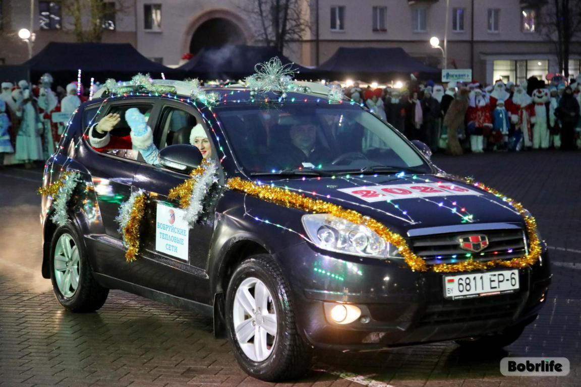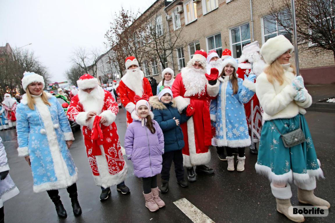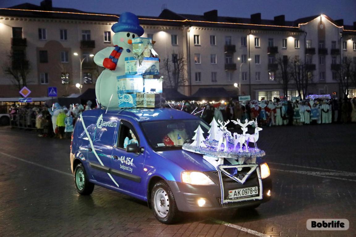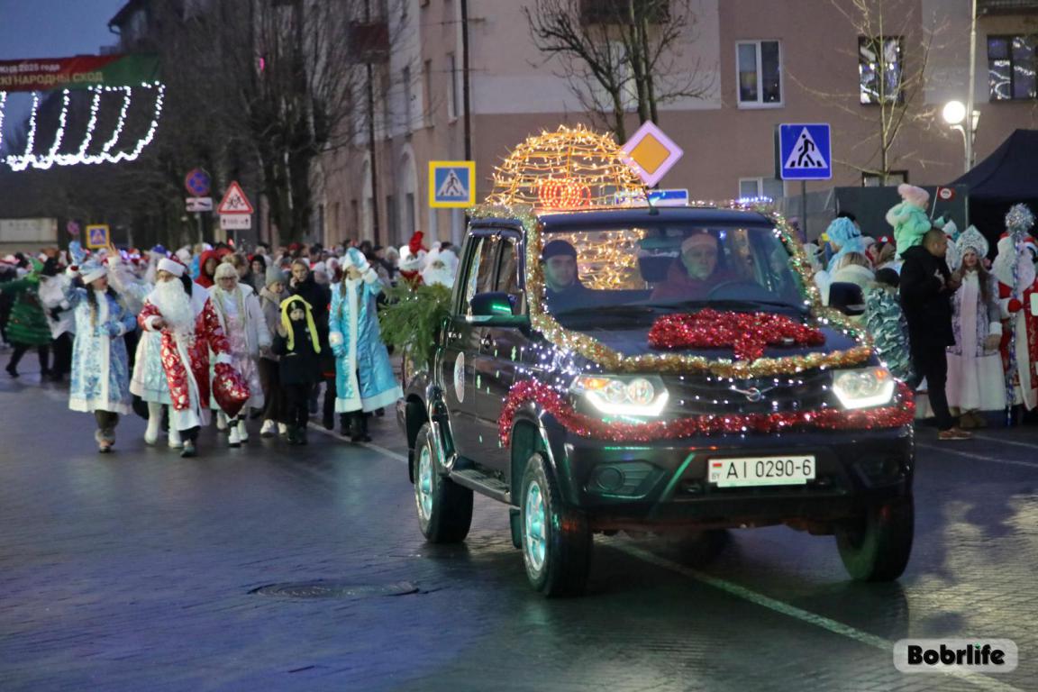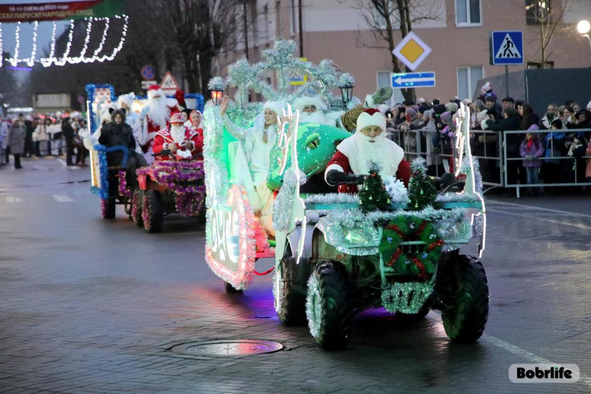 Парад зимних волшебников сопровождал празднично украшенный транспорт в сверкающих гирляндах и новогодних атрибутах. Деды Морозы и Снегурочки шли пешком, передвигались на мотоциклах, машинах и даже верхом на лошадях. Жители Бобруйска радостно приветствовали театрализованное шествие аплодисментами и восхищенными возгласами. К праздничному мероприятию присоединились руководство города и коллективы предприятий, организаций, учреждения образования и творческие объединения.