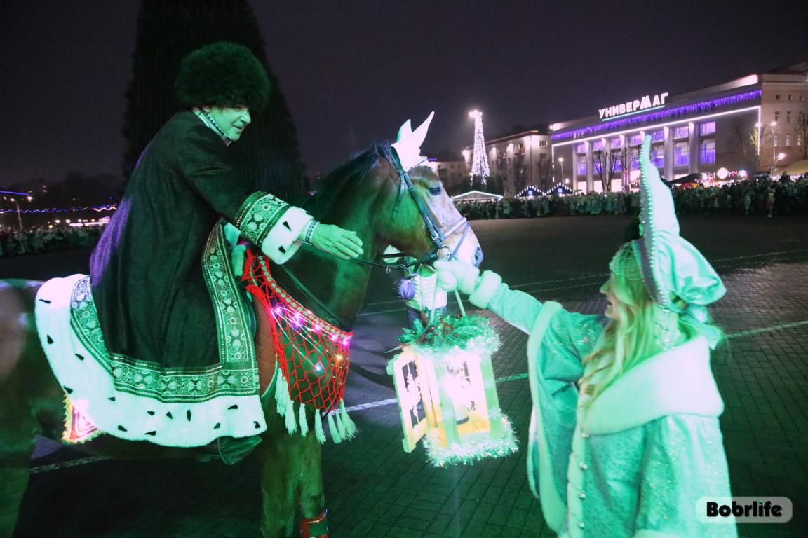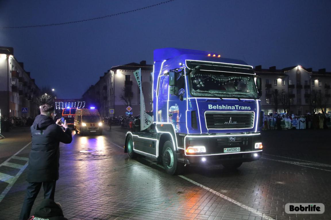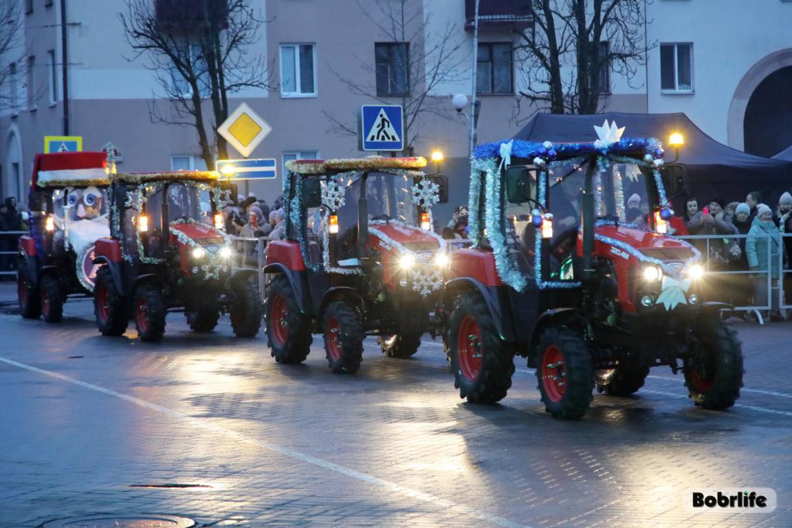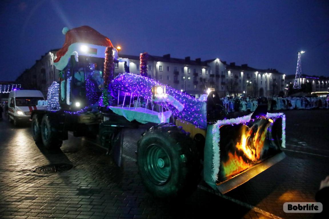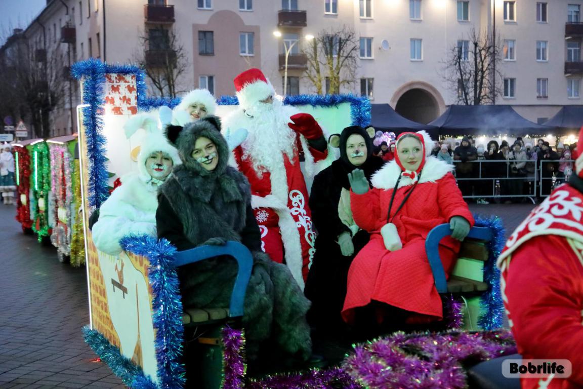 Парад зимних волшебников сопровождал празднично украшенный транспорт в сверкающих гирляндах и новогодних атрибутах. Деды Морозы и Снегурочки шли пешком, передвигались на мотоциклах, машинах и даже верхом на лошадях. Жители Бобруйска радостно приветствовали театрализованное шествие аплодисментами и восхищенными возгласами. К праздничному мероприятию присоединились руководство города и коллективы предприятий, организаций, учреждения образования и творческие объединения.