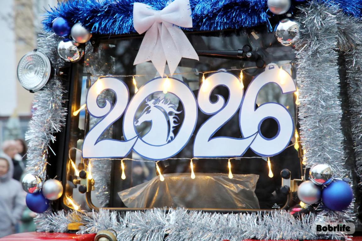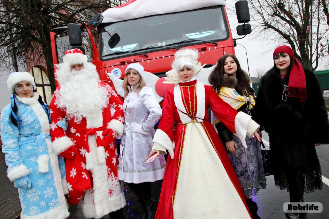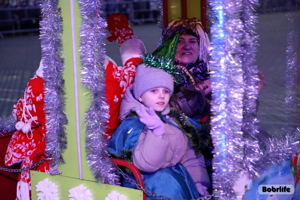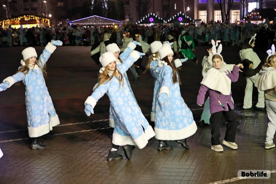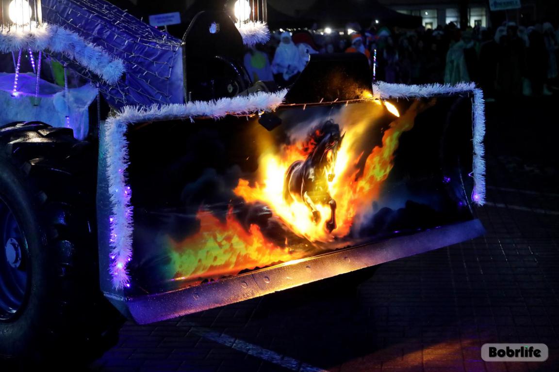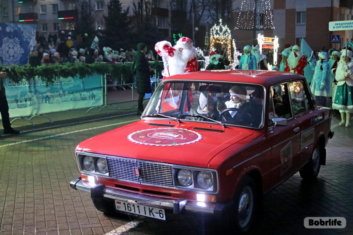 Парад зимних волшебников сопровождал празднично украшенный транспорт в сверкающих гирляндах и новогодних атрибутах. Деды Морозы и Снегурочки шли пешком, передвигались на мотоциклах, машинах и даже верхом на лошадях. Жители Бобруйска радостно приветствовали театрализованное шествие аплодисментами и восхищенными возгласами. К праздничному мероприятию присоединились руководство города и коллективы предприятий, организаций, учреждения образования и творческие объединения.