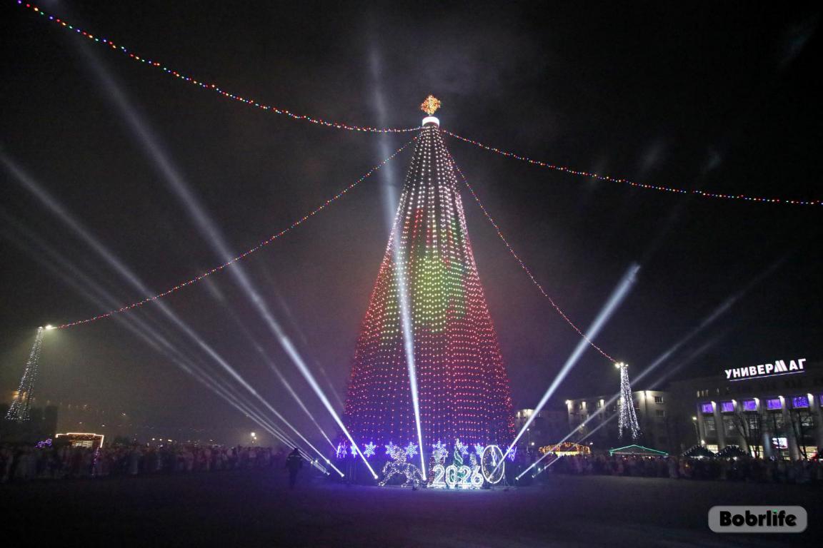Вместе с председателем горисполкома Максимом Гуриным и главным Дедом Морозом вспомнили успехи и открытия в разных сферах, которые принес нашему городу Год благоустройства. С пожеланиями ярких событий и удивительных свершений в наступающем году на городской елке торжественно зажгли разноцветные огни, а в небе рассыпался фейерверк.