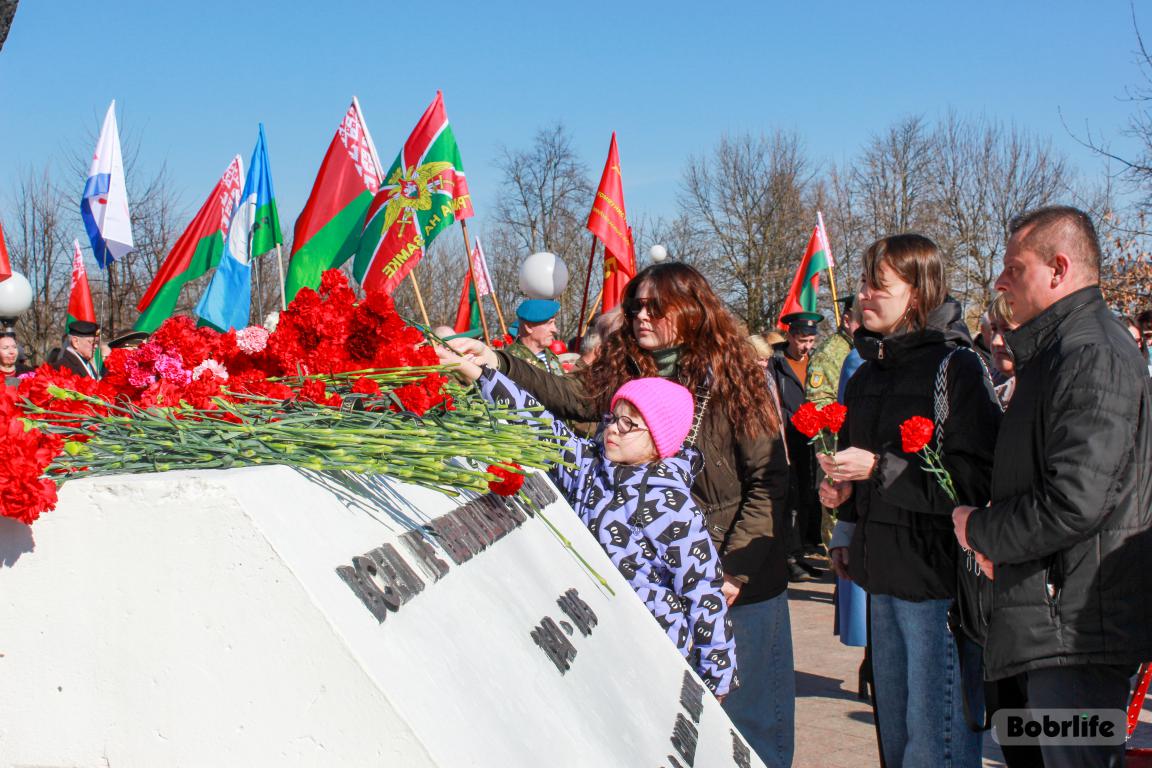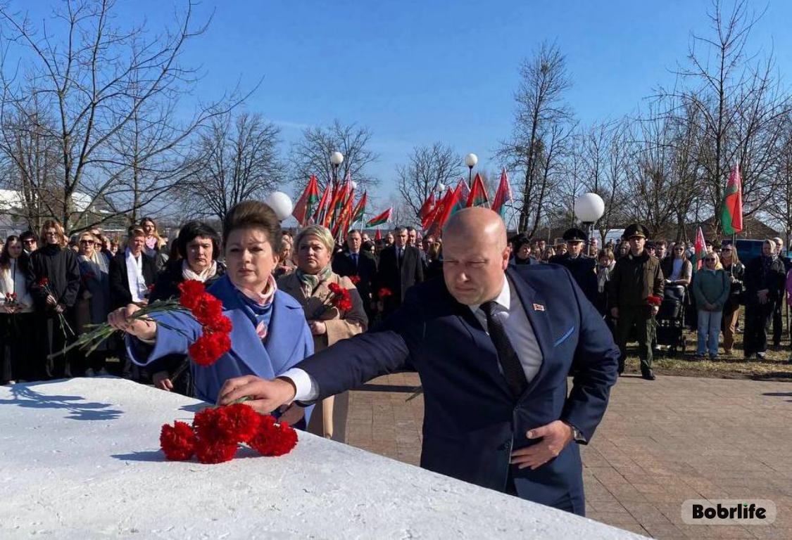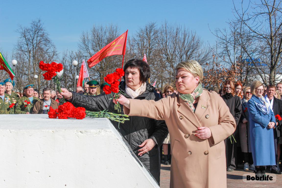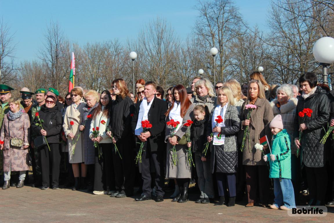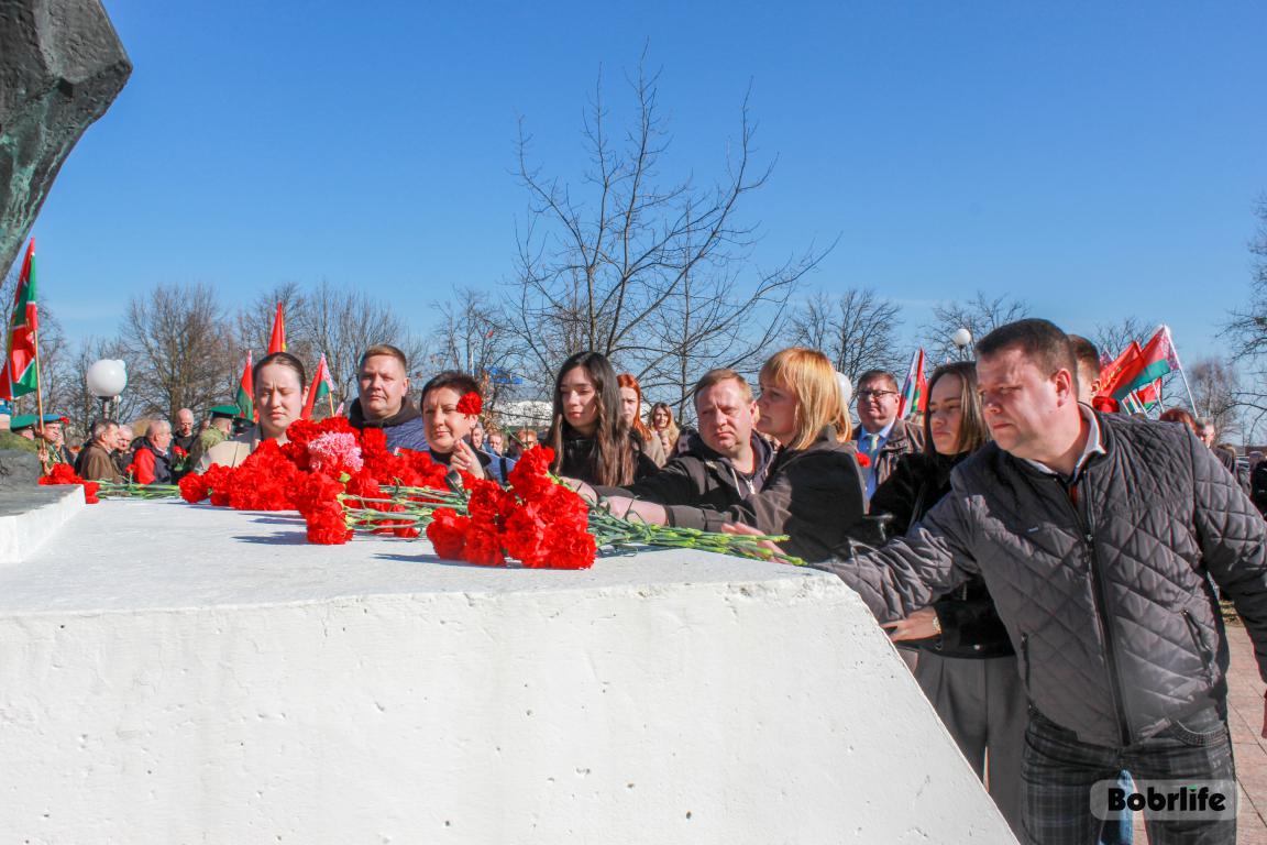Бобруйчане пришли почтить память мирных жителей сожженных белорусских деревень и всех погибших. Председатель Бобруйского горисполкома Максим Гурин, председатель Бобруйского горсовета депутатов Ирина Рынейская, депутаты Палаты представителей Национального собрания Ольга Жук и Оксана Приходько, представители администраций районов, силовых структур, общественных объединений и политических партий, трудовые коллективы и молодежь возложили живые цветы к Братской могиле советских военнопленных, уничтоженных фашистами в годы Великой Отечественной войны.