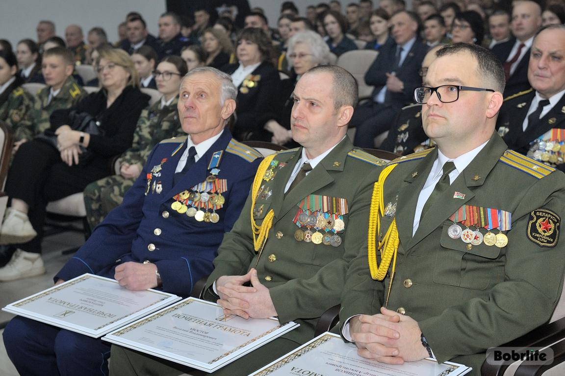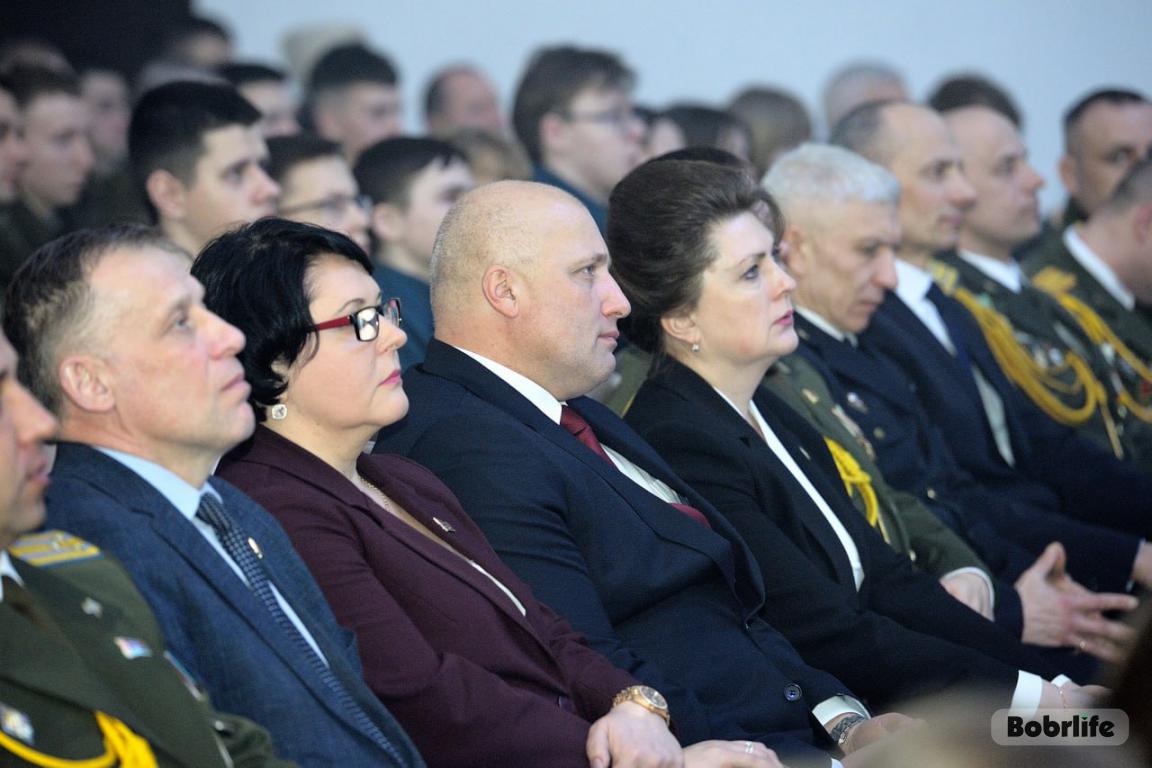 На мероприятии присутствовали председатель Бобруйского горисполкома Максим Гурин, председатель городского Совета депутатов Ирина Рынейская, глава администрации Ленинского района Марина Згорская, начальник Бобруйского гарнизона полковник Павел Готовчиц, генерал-майор Валерий Боровой – в прошлом заместитель командующего сухопутными войсками Вооруженных Сил РБ, начальник управления боевой подготовки и подготовки резерва, а также представители трудовых коллективов и общественных объединений, войсковых частей Бобруйского гарнизона и участники военно-патриотических классов и клубов.