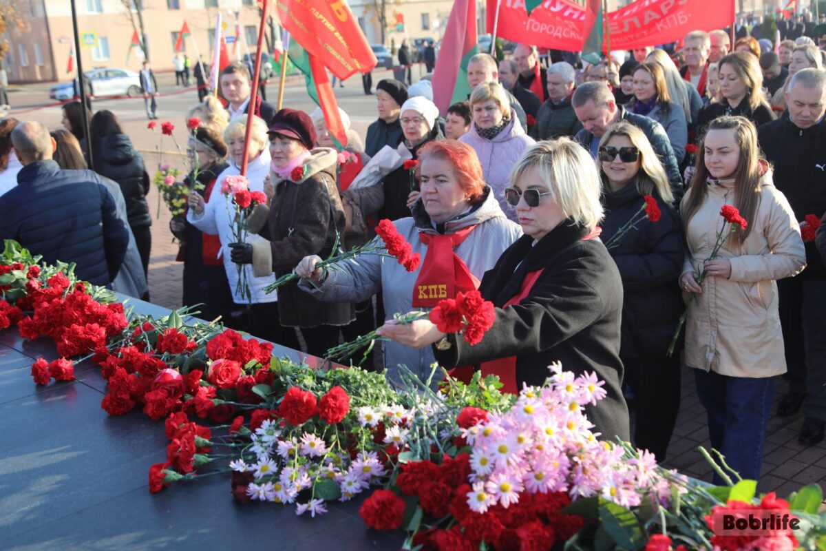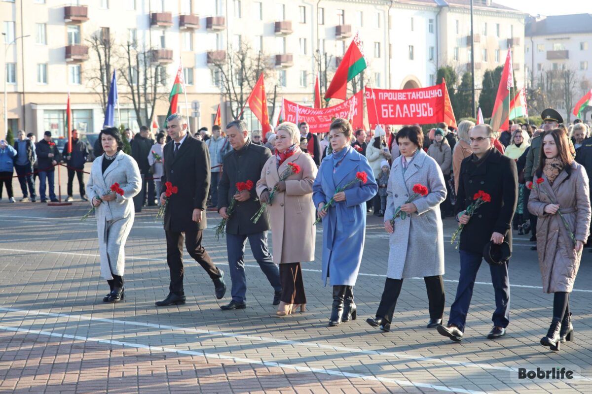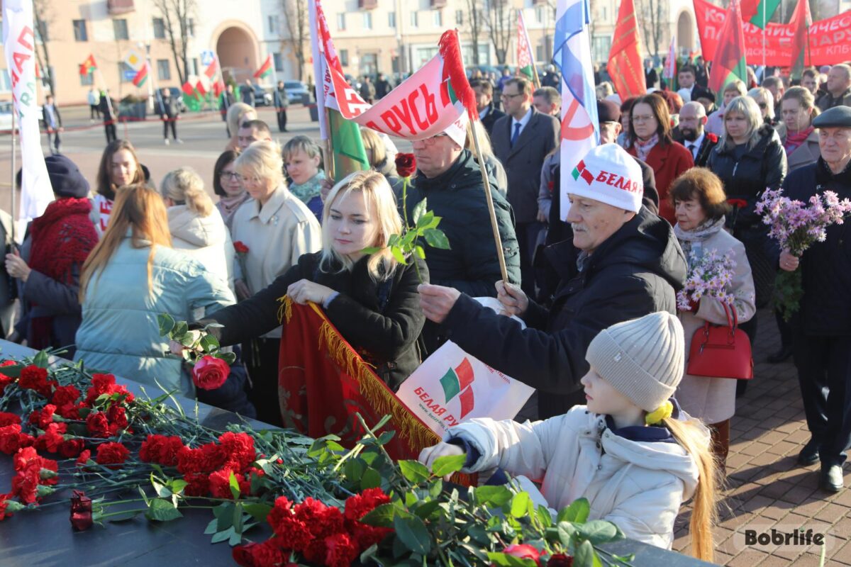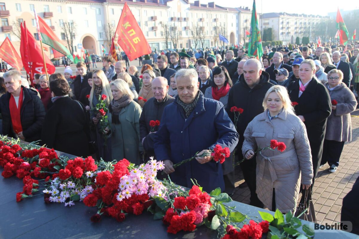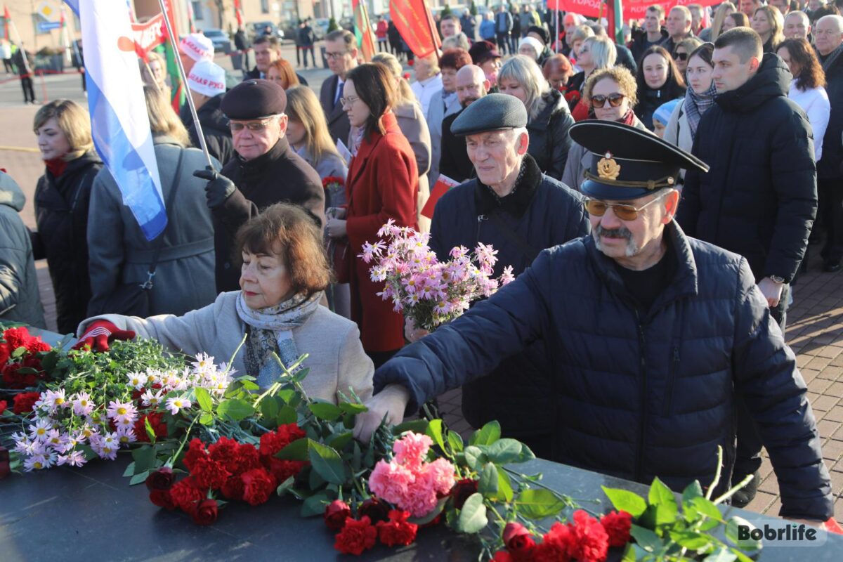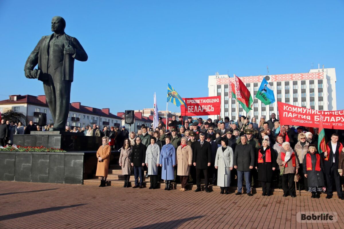 В день 108-й годовщины Великой Октябрьской революции на главной площади города состоялось торжественное возложение цветов к памятнику В.И. Ленину. В праздничном мероприятии приняли участие сотни бобруйчан. Среди них – представители городской власти, председатель Бобруйского городского Совета депутатов Ирина Рынейская, депутаты Палаты представителей Национального собрания Республики Беларусь Ольга Жук, Оксана Приходько и Антон Каранкевич, члены городской организации Коммунистической партии Беларуси, общественных организаций, представители трудовых коллективов и общественность.
