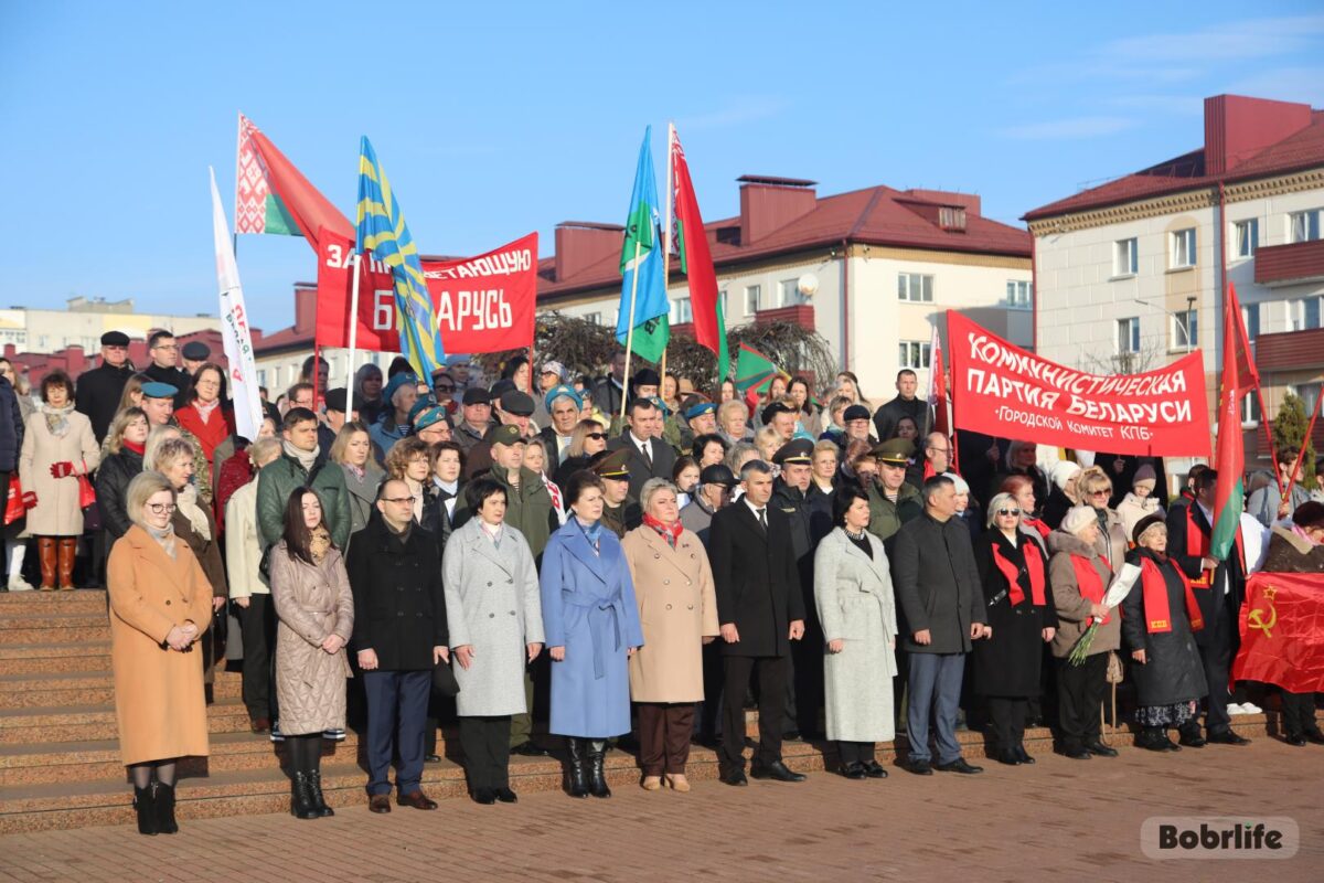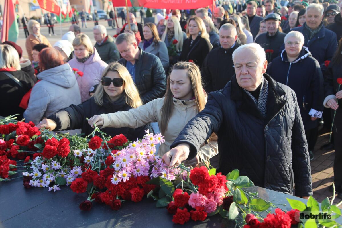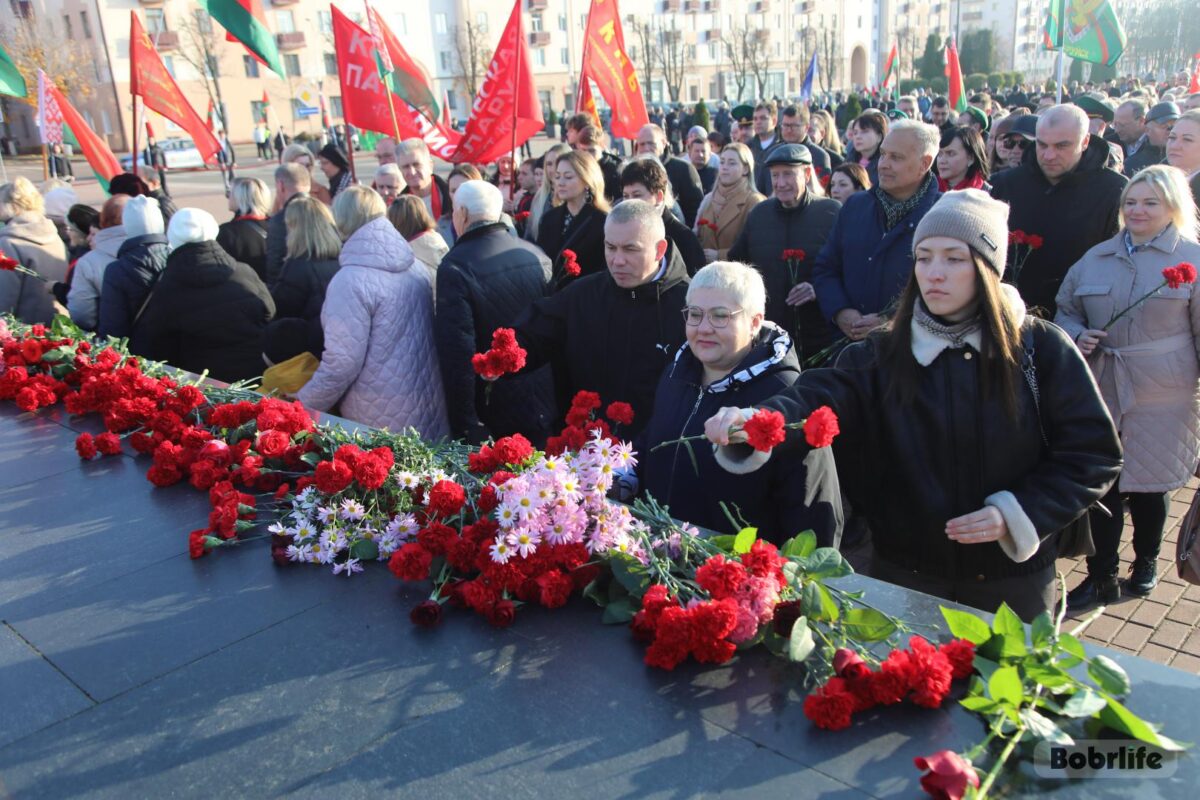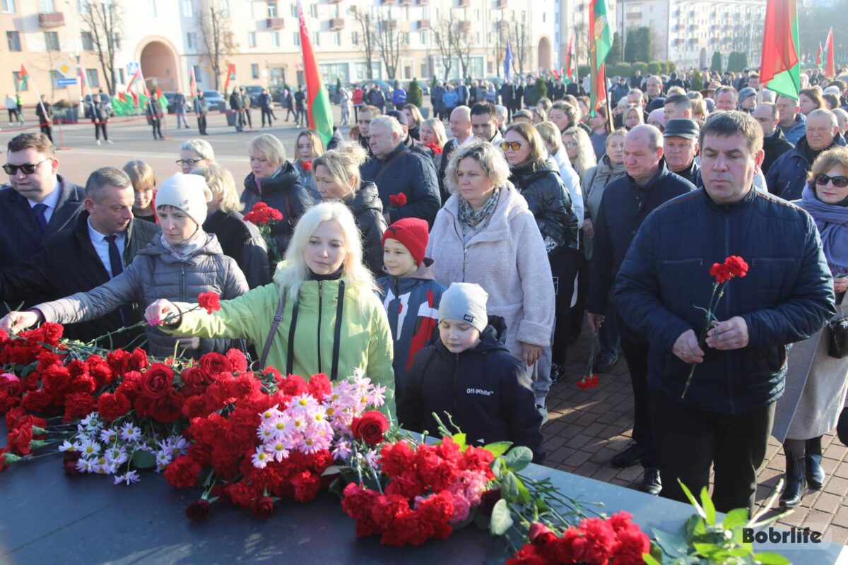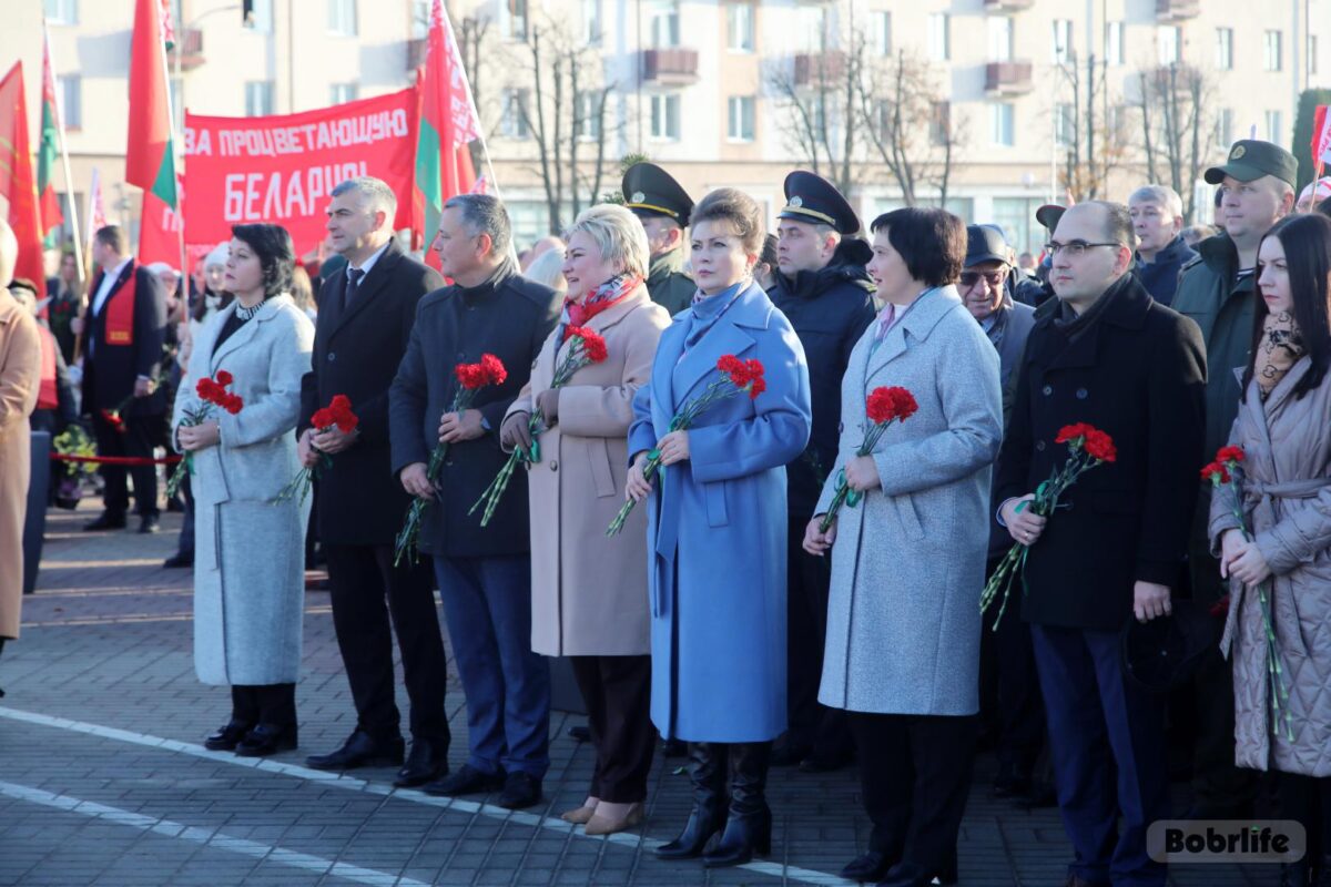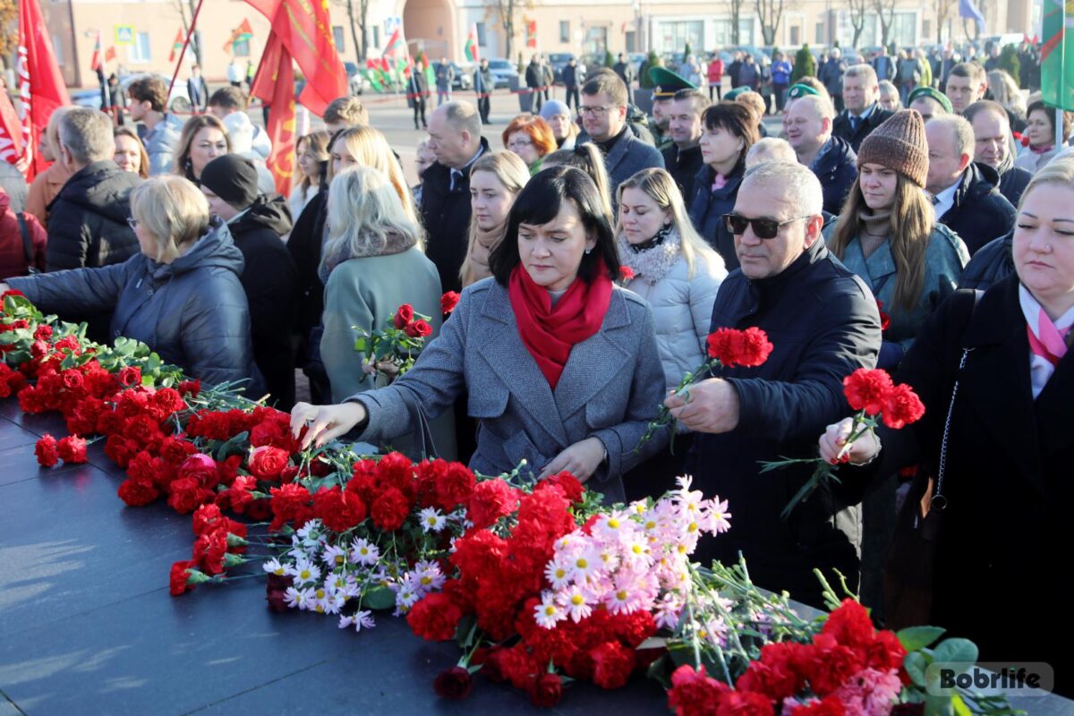 В день 108-й годовщины Великой Октябрьской революции на главной площади города состоялось торжественное возложение цветов к памятнику В.И. Ленину. В праздничном мероприятии приняли участие сотни бобруйчан. Среди них – представители городской власти, председатель Бобруйского городского Совета депутатов Ирина Рынейская, депутаты Палаты представителей Национального собрания Республики Беларусь Ольга Жук, Оксана Приходько и Антон Каранкевич, члены городской организации Коммунистической партии Беларуси, общественных организаций, представители трудовых коллективов и общественность.