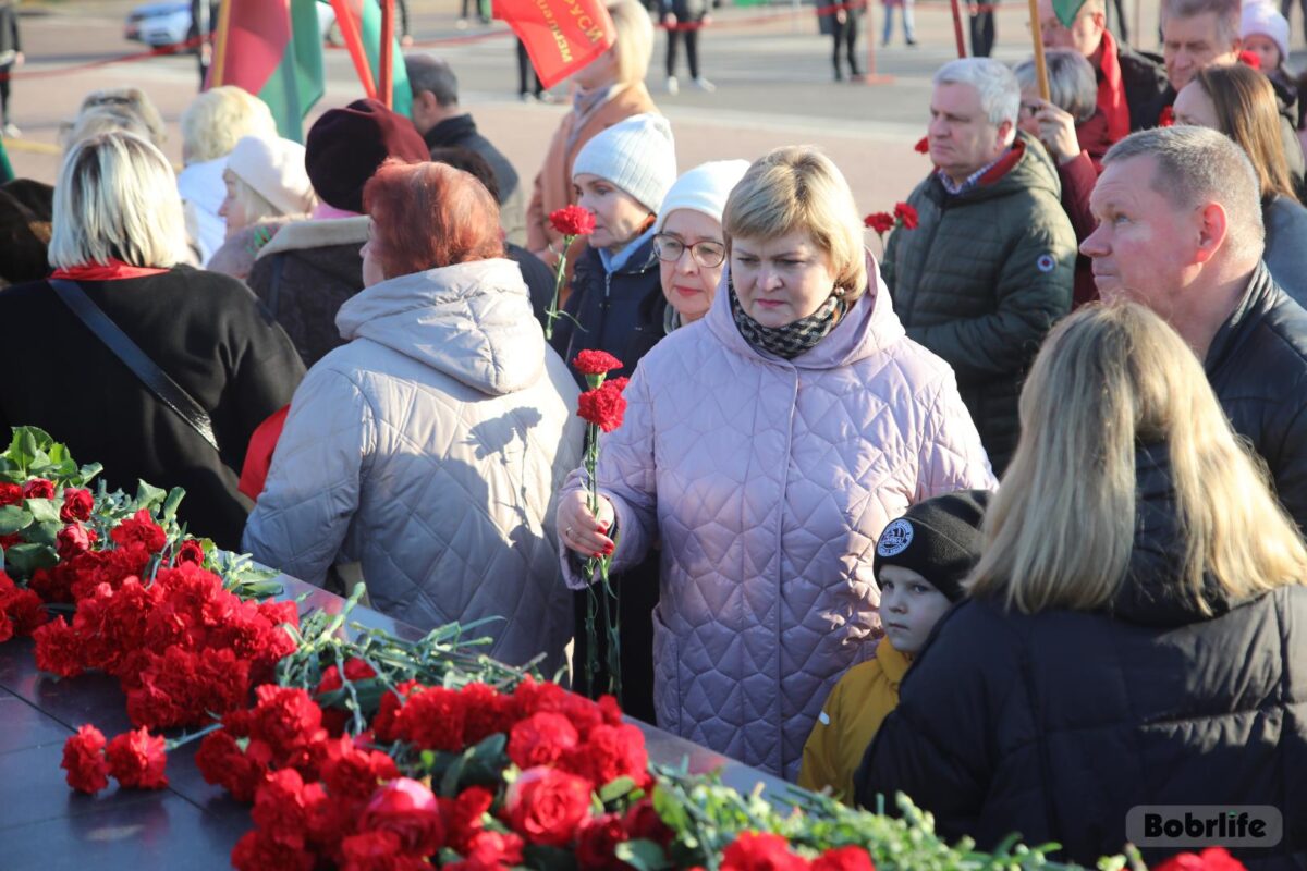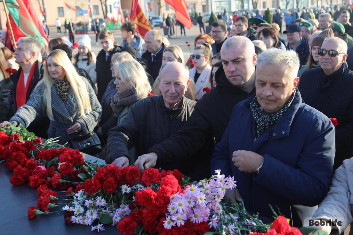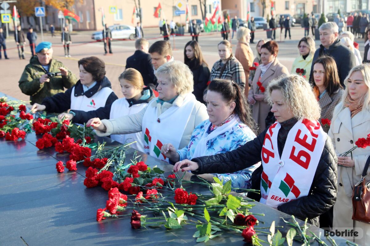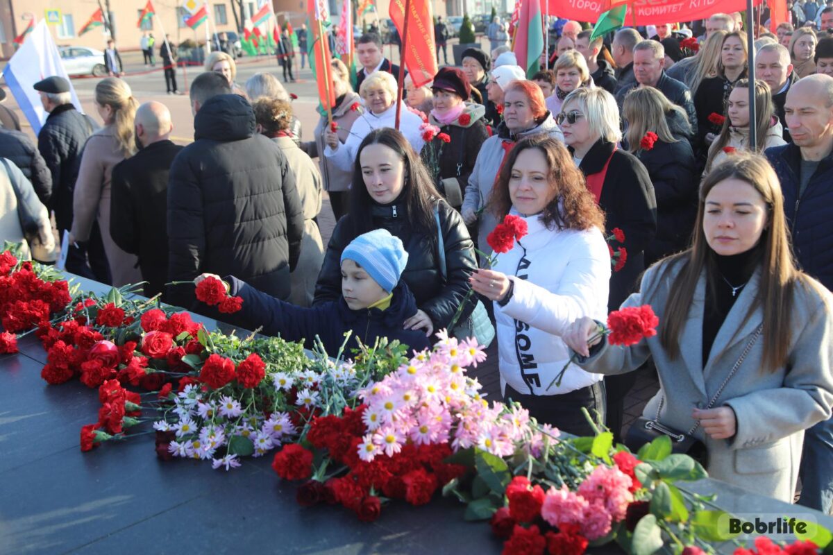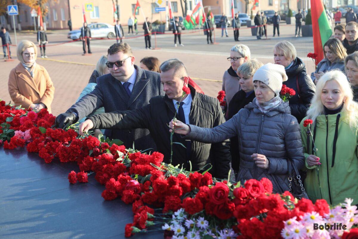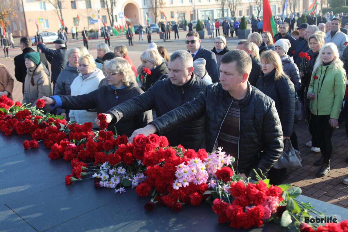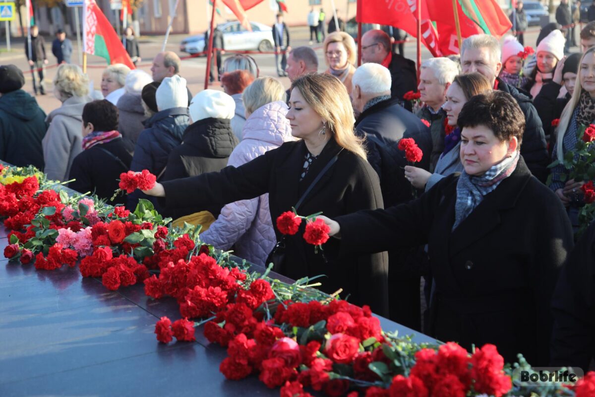 В день 108-й годовщины Великой Октябрьской революции на главной площади города состоялось торжественное возложение цветов к памятнику В.И. Ленину. В праздничном мероприятии приняли участие сотни бобруйчан. Среди них – представители городской власти, председатель Бобруйского городского Совета депутатов Ирина Рынейская, депутаты Палаты представителей Национального собрания Республики Беларусь Ольга Жук, Оксана Приходько и Антон Каранкевич, члены городской организации Коммунистической партии Беларуси, общественных организаций, представители трудовых коллективов и общественность.