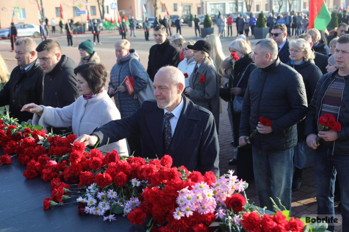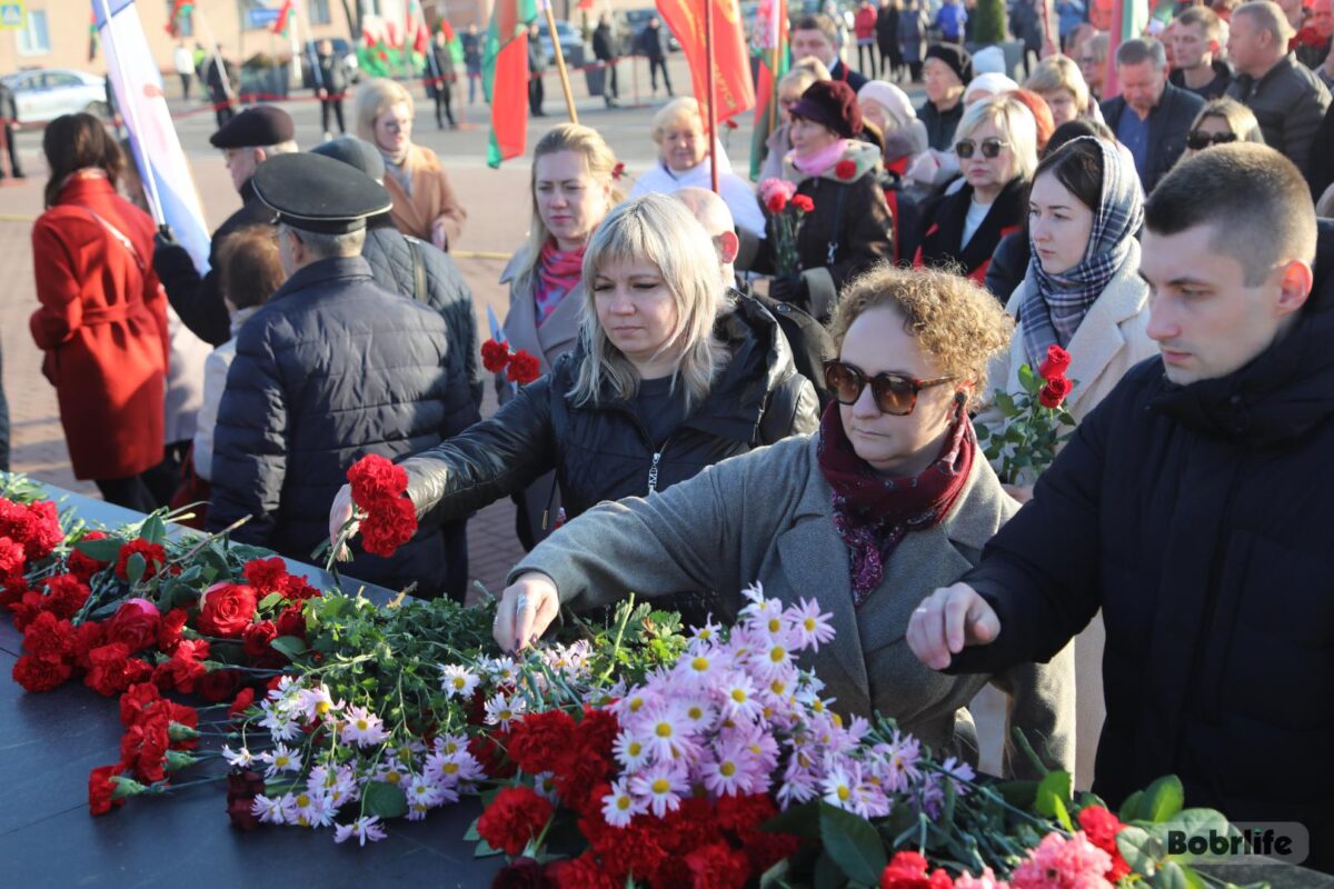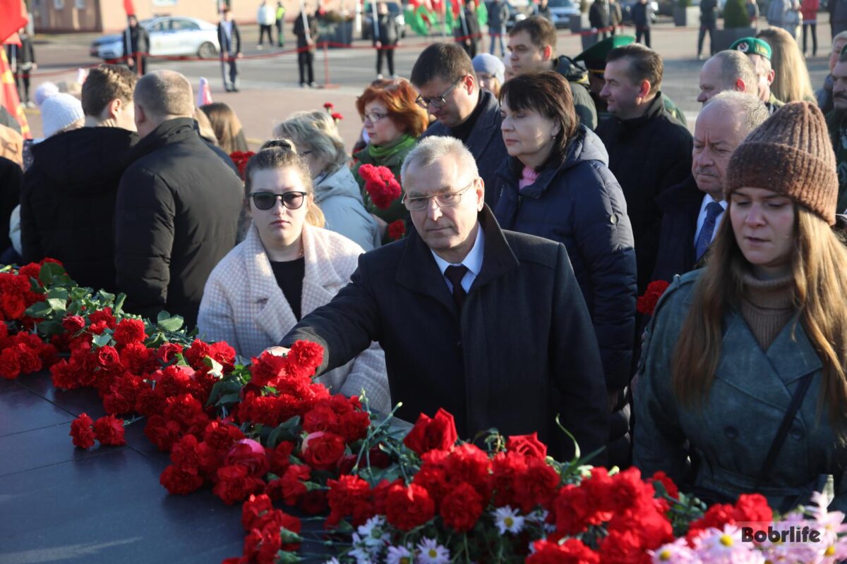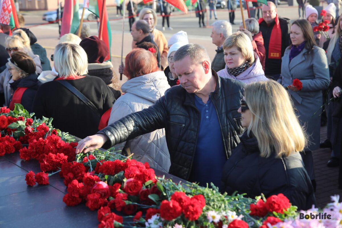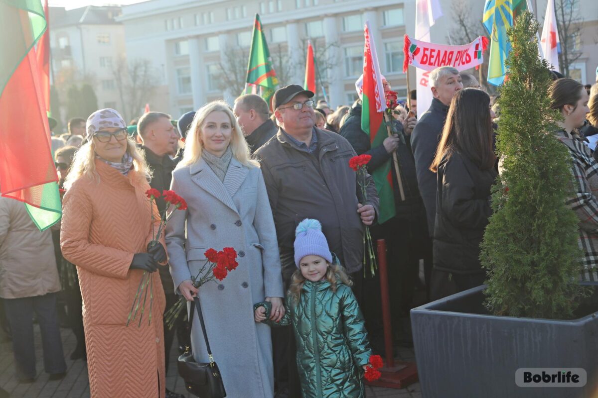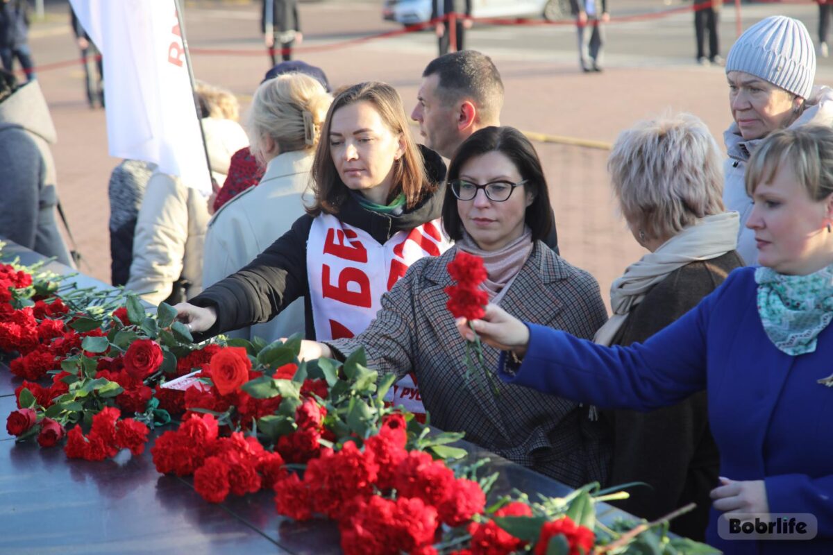 В день 108-й годовщины Великой Октябрьской революции на главной площади города состоялось торжественное возложение цветов к памятнику В.И. Ленину. В праздничном мероприятии приняли участие сотни бобруйчан. Среди них – представители городской власти, председатель Бобруйского городского Совета депутатов Ирина Рынейская, депутаты Палаты представителей Национального собрания Республики Беларусь Ольга Жук, Оксана Приходько и Антон Каранкевич, члены городской организации Коммунистической партии Беларуси, общественных организаций, представители трудовых коллективов и общественность.