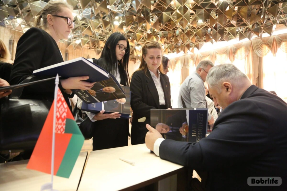 В Бобруйске 25 марта состоялась презентация книги «Наш Президент» с участием авторов – заслуженного деятеля науки Беларуси, доктора педагогических наук, профессора Александра Радькова и директора издательства «Беларусь», председателя Союза писателей Беларуси Александра Карлюкевича. На мероприятии присутствовали председатель Бобруйского горисполкома Максим Гурин, председатель Бобруйского горсовета депутатов Ирина Рынейская, заместитель председателя Могилевского облисполкома Олег Стельмашок.