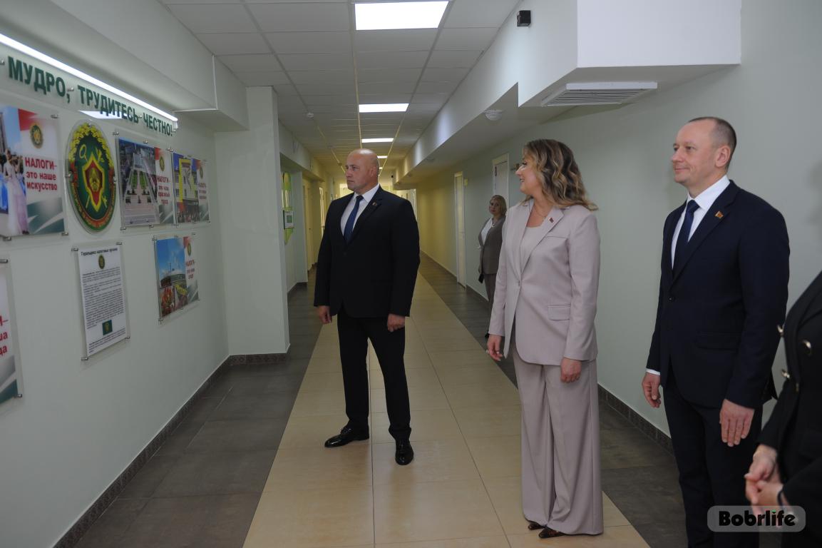 В Бобруйске в средней школе №34 в этом учебном году новшество – открыт налоговый класс, первый в Могилевской области. 25 десятиклассников будут осваивать азы экономики и финансовой грамотности, чтобы в будущем пополнить ряды сотрудников налоговой службы. Почетными гостями торжественного мероприятия в учреждении образования стали министр по налогам и сборам Республики Беларусь Дмитрий Кийко, председатель Бобруйского горисполкома Максим Гурин, начальник налоговой инспекции Министерства по налогам и сборам по Могилевской области Елена Бода, работники налоговой инспекции Бобруйска. В значимый день почетные гости вручили директору школы Ирине Матузовой сертификаты на приобретение интерактивной панели и многофункционального устройства, которые будут помогать в учебном процессе.