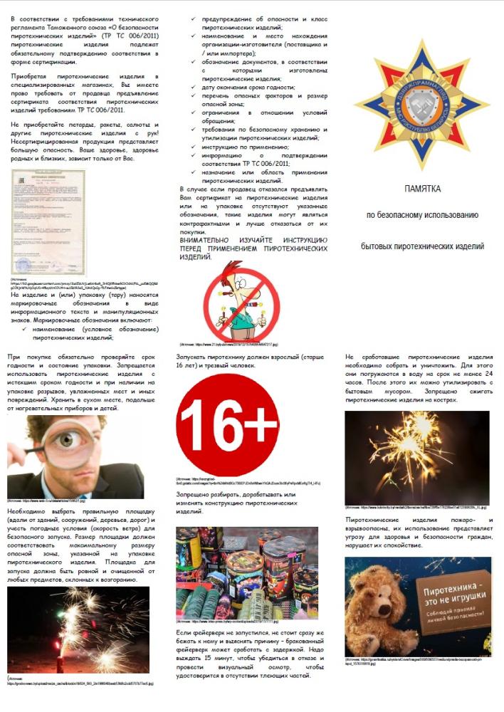 Памятка по безопасному использованию бытовых пиротехнических изделий