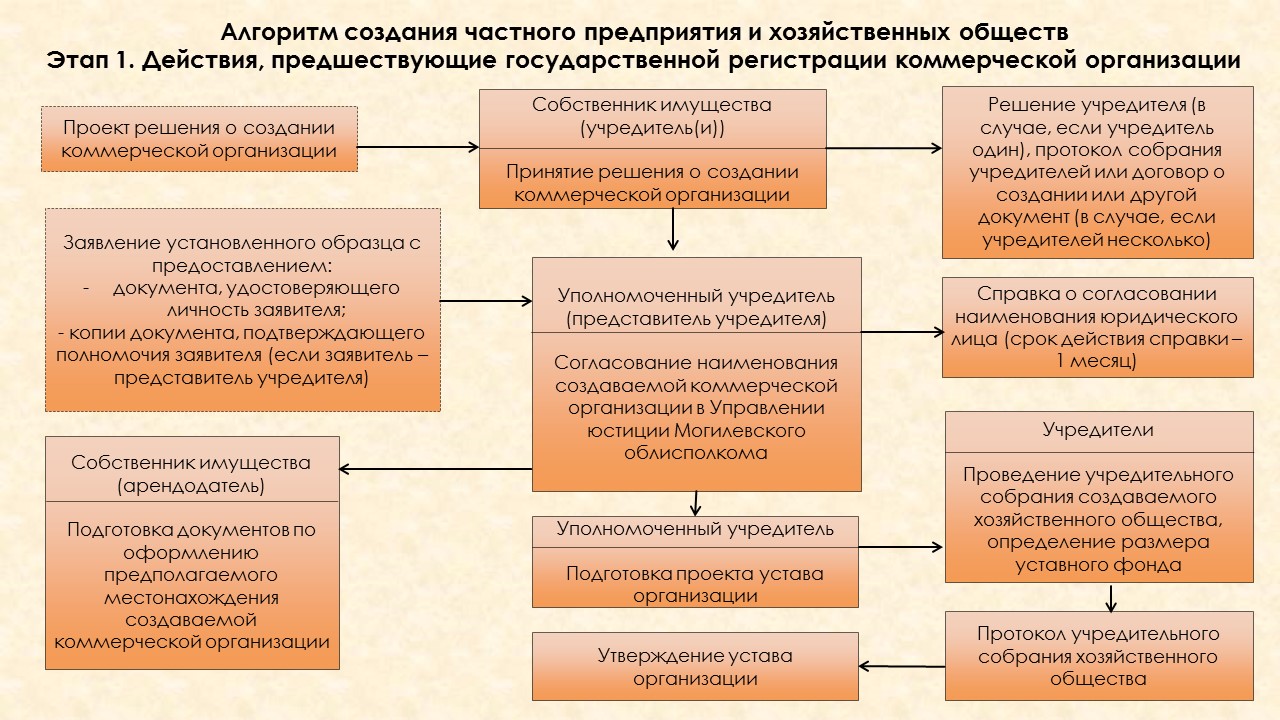 Алгоритм создания частного унитарного предприятия и хозяйственных обществ