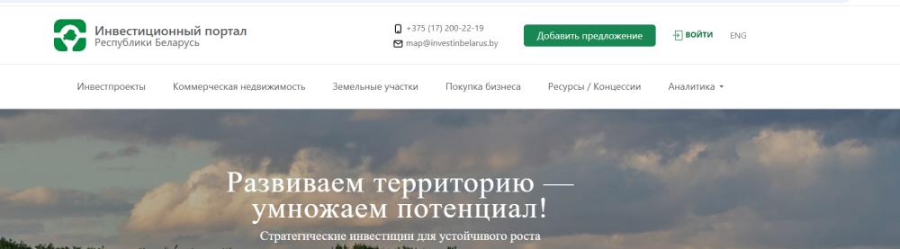 - размещение на официальном Инвестиционном портале Республики Беларусь https://map.investinbelarus.by/ на русском и английском языках Ваших предложений: инвестиционных проектов, объектов недвижимости, земельных участков;