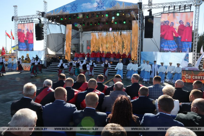 «Этот праздник - дань уважения людям, чья работа, самоотдача и преданность родной земле обеспечивают продовольственный суверенитет и благополучие нашей Беларуси, - сказал он. - Для всех селян осень - это венец сельскохозяйственных работ, время для подведения результатов тяжелого, но такого почетного труда. Труда, который не знает выходных, который начинается до восхода солнца и заканчивается глубокой ночью».