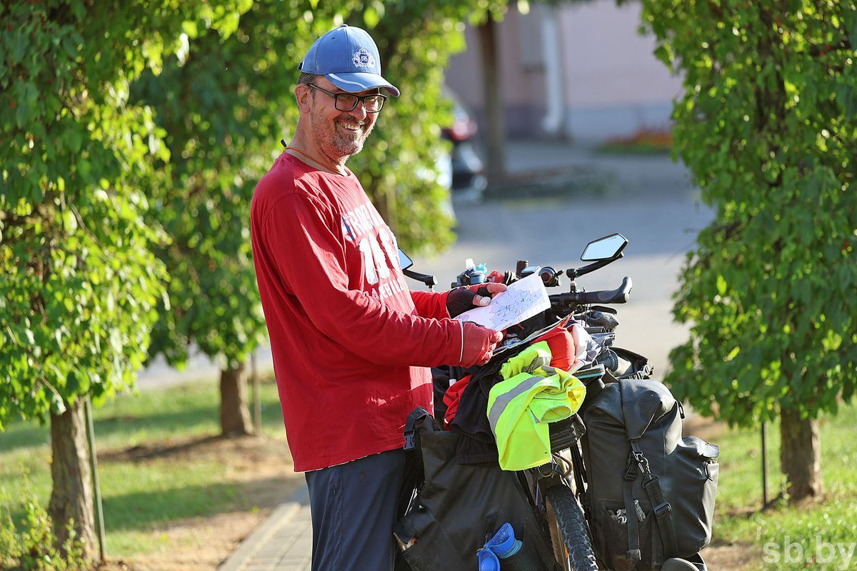 Далее маршрут велопутешественника пролежит через Большую Берестовицу, Волковыск, Свислочь, Жабинку и Пинск. Потом — несколько районных центров в Гомельской области. А в родной Бобруйск Константин Царик планирует вернуться до конца сентября.