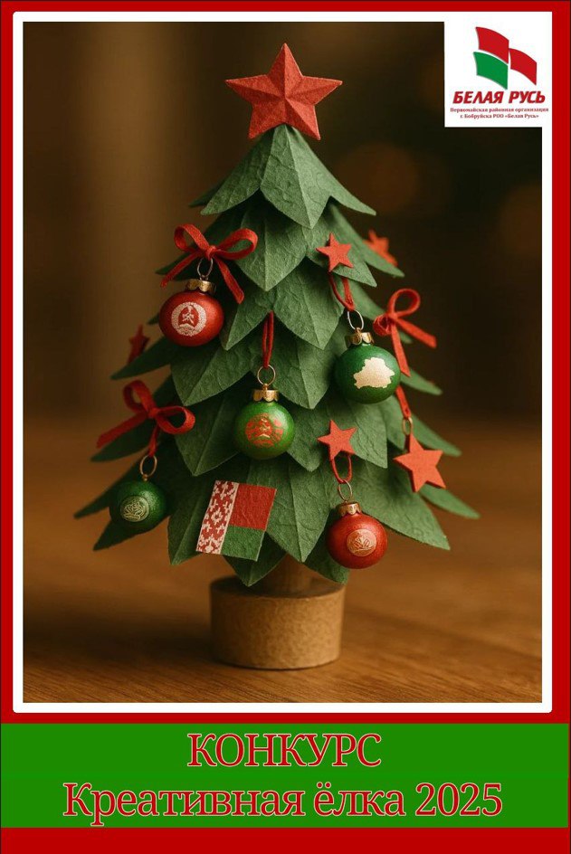 Первомайская районная организация г. Бобруйска РОО «Белая Русь» сообщает о проведении районного декоративно-прикладного конкурса «Креативная ёлка 2025».