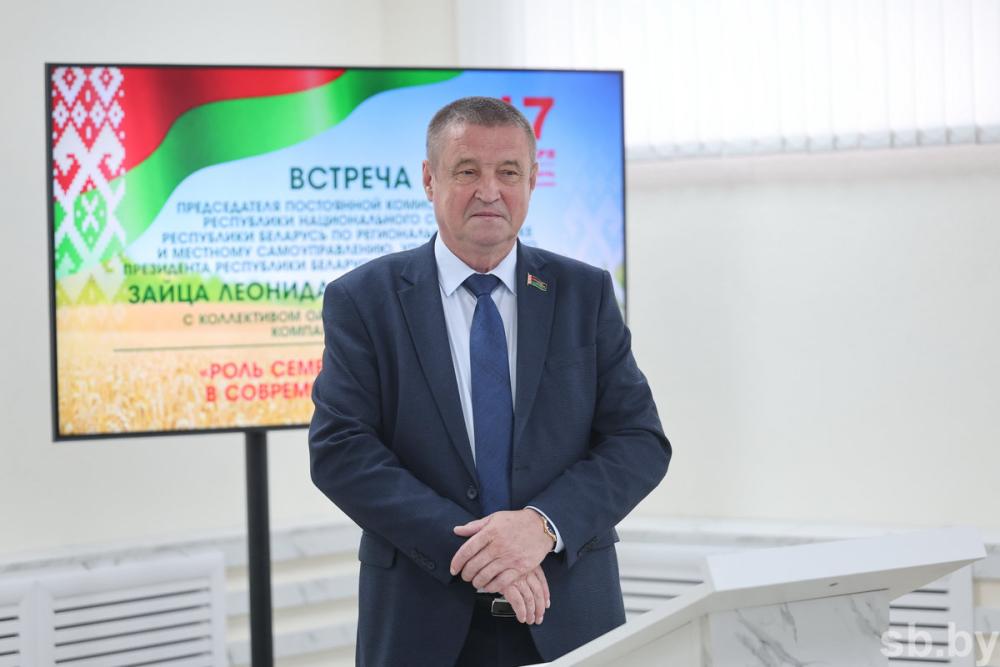 Предметный разговор стал частью единого дня информирования, посвященного Неделе родительской любви, которая с 14 по 21 октября проходит в Беларуси. Общаясь с коллективом, Леонид Заяц высказал уверенность, что традиционные семейные ценности должны поддерживаться на государственном уровне: