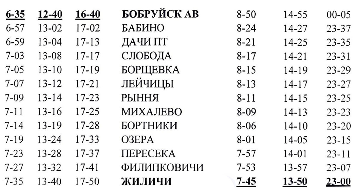 В связи с проведением 27 сентября в аг. Жиличи праздника «Вераснёўскi фэст. Палац у Жылiчах» автобусы пригородного маршрута «Бобруйск — Жиличи ч/з Озеры» будут осуществлять движение по следующему расписанию: