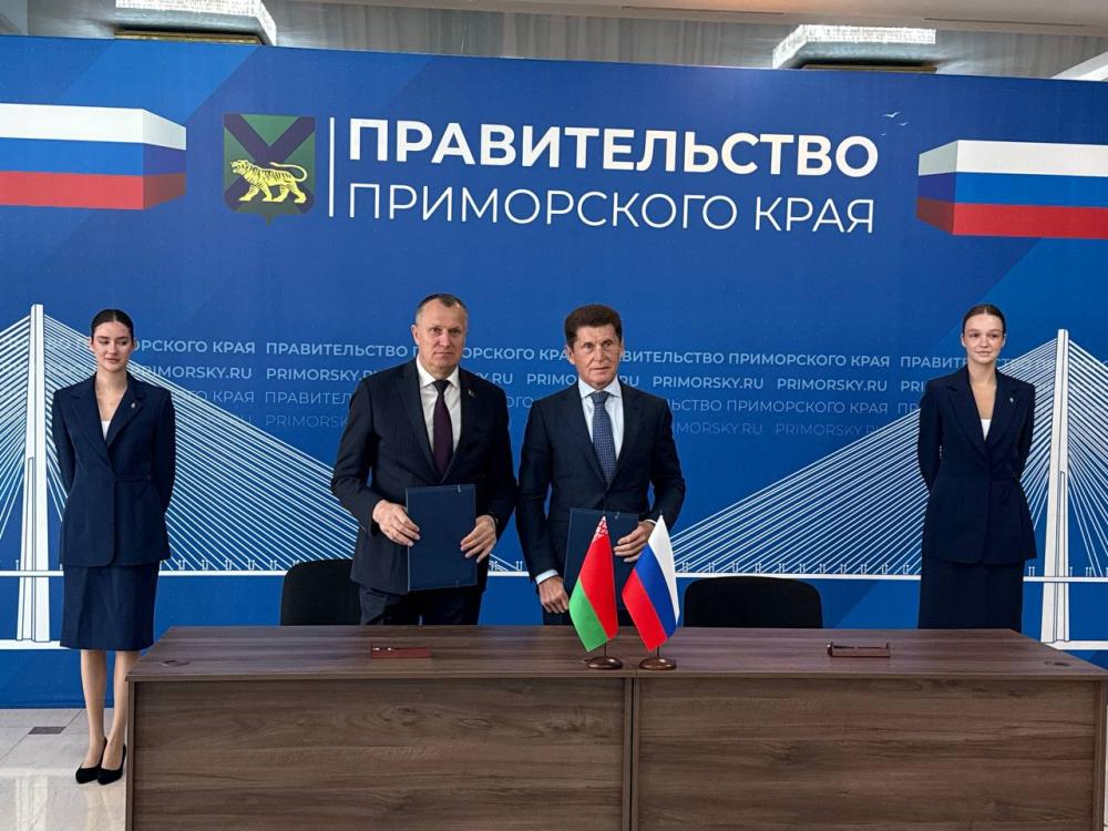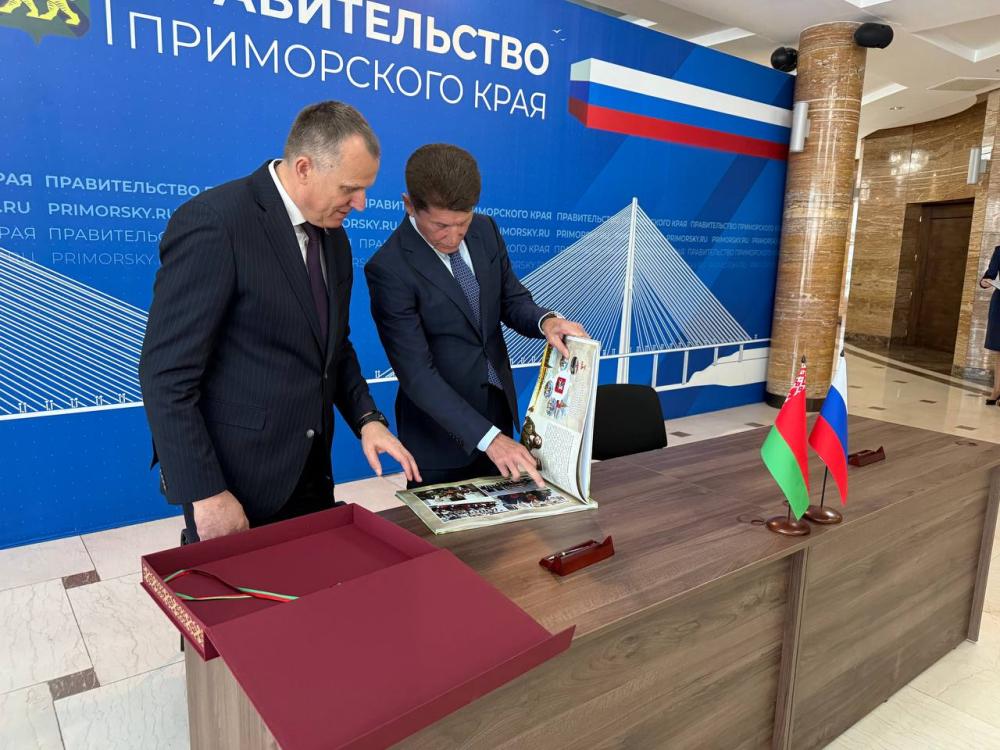 Программа делового визита обширная и насыщенная. Так, 8 октября прошло совместное заседание Рабочей группы по сотрудничеству Республики Беларусь и Приморского края Российской Федерации, где представителями белорусского и российского регионов подписан ряд документов о дальнейшем двустороннем сотрудничестве.
