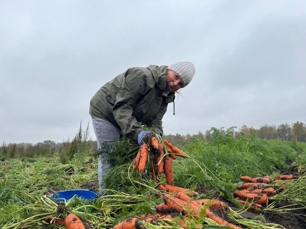 Только начался сбор, а на счету жизнерадостной и трудолюбивой Светланы уже 40 ведерок моркови. Ее энтузиазм заряжает всю команду, напоминая, что даже рутинная работа на свежем воздухе может стать источником адреналина и хорошего настроения. Урожай собирается, а вместе с ним – множатся истории трудовых подвигов молодых тружеников.