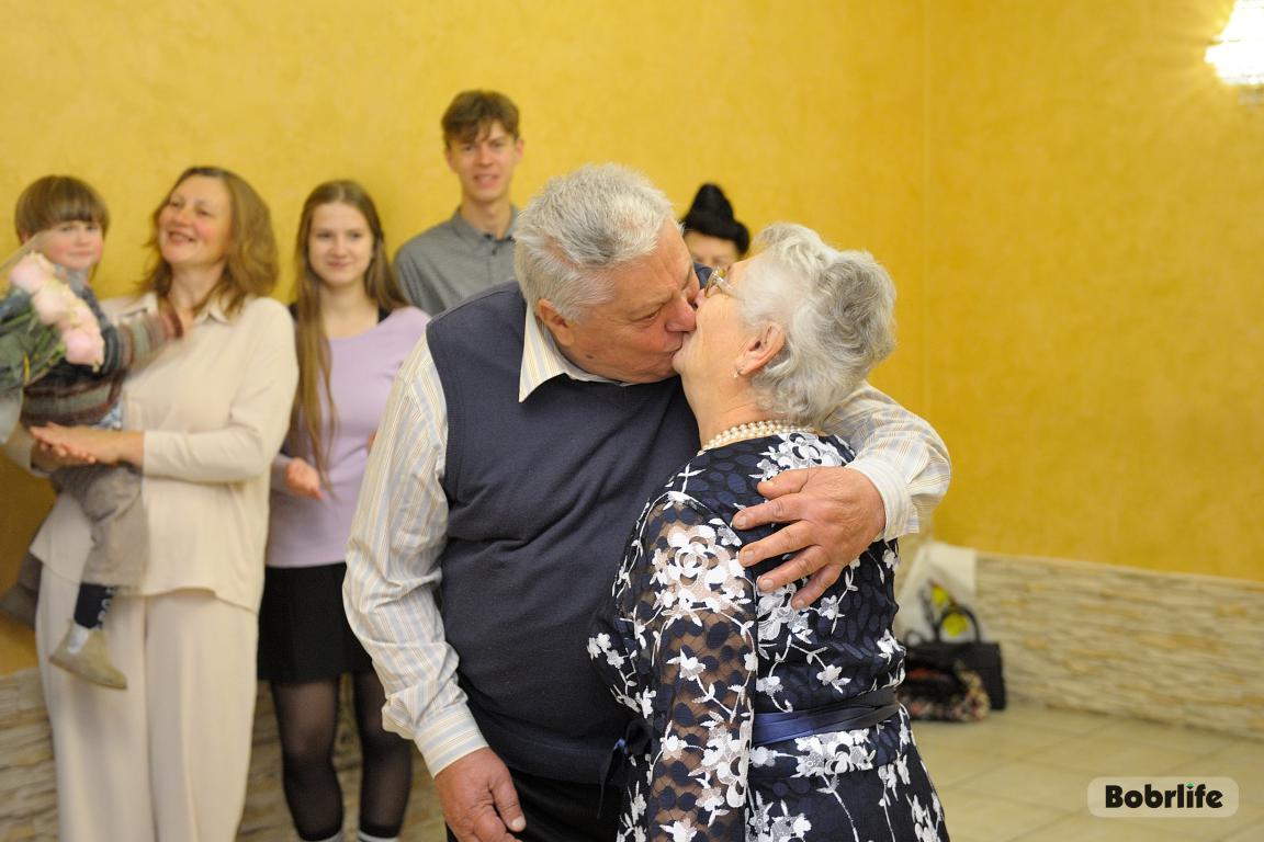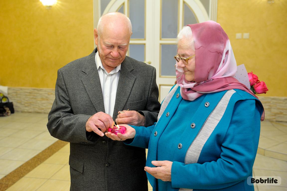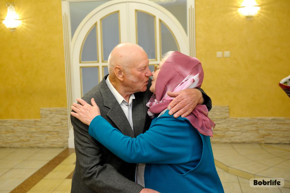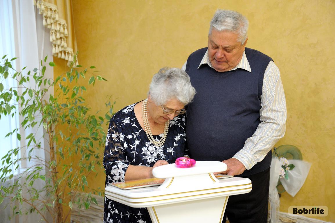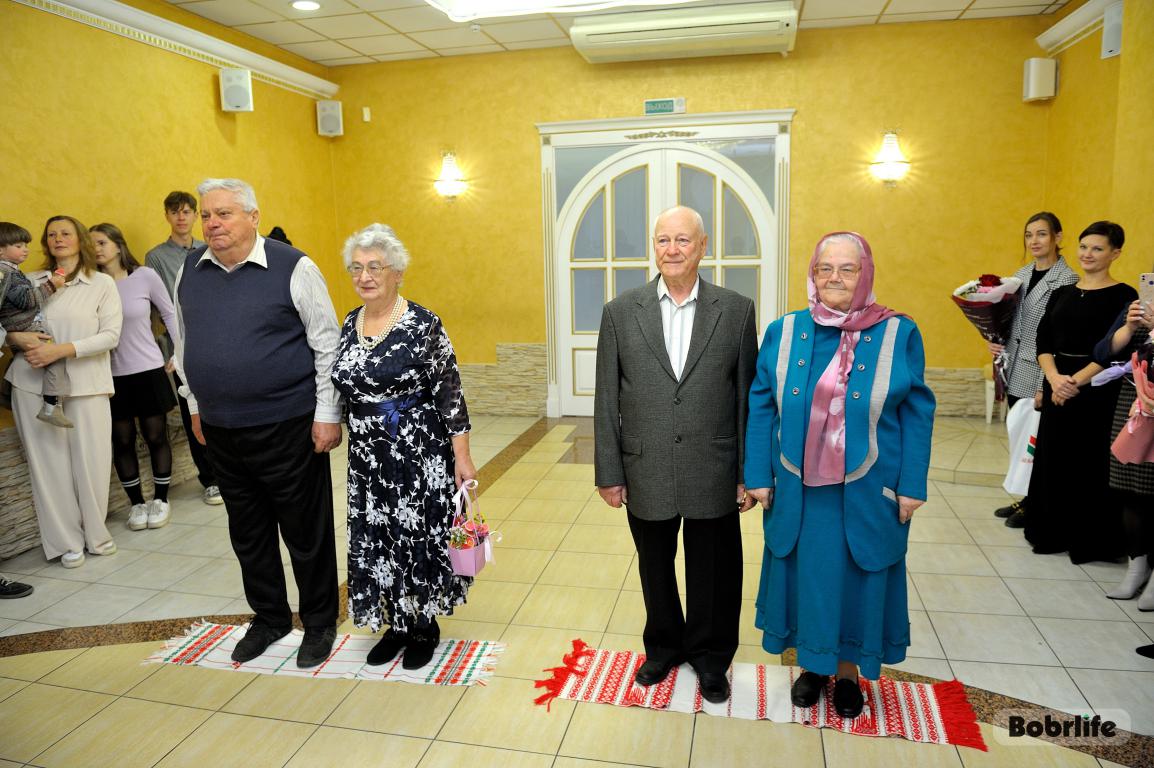 Представители Ленинского и Первомайского ТЦСОН, Ленинской районной организации г. Бобруйска РОО «Белорусское общество Красного Креста», а также Первомайской районной организации Бобруйска РОО «Белая Русь» поздравили юбиляров с важными датами, пожелав им крепкого здоровья, благополучия и долгих лет счастливой семейной жизни. Трогательными моментами церемонии стали зажжение свечи, супружеский поцелуй и свадебный вальс. И кульминация торжества – подписи в Книге почетных юбиляров, где супруги увековечили свои имена и историю любви для будущих поколений.