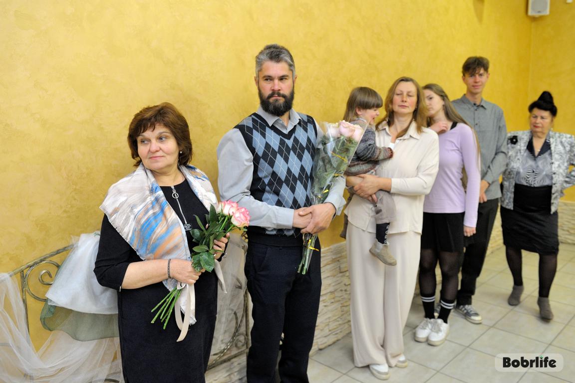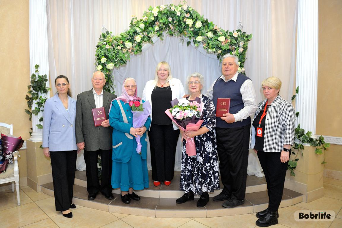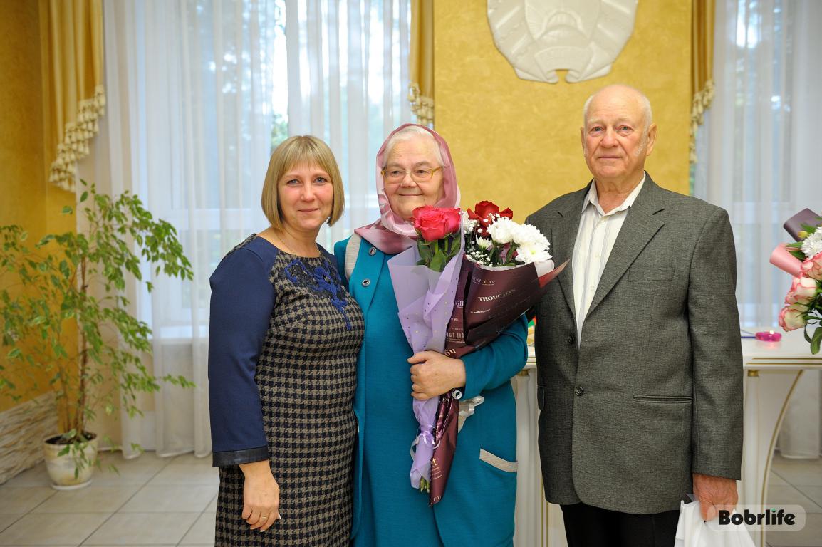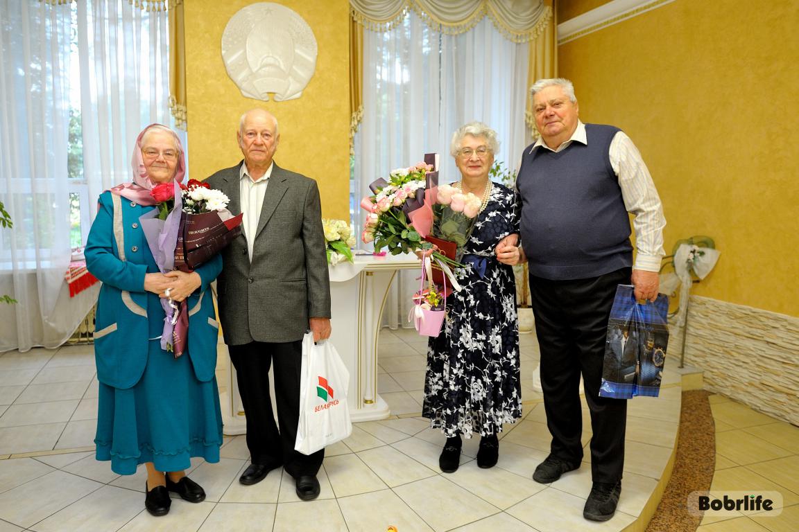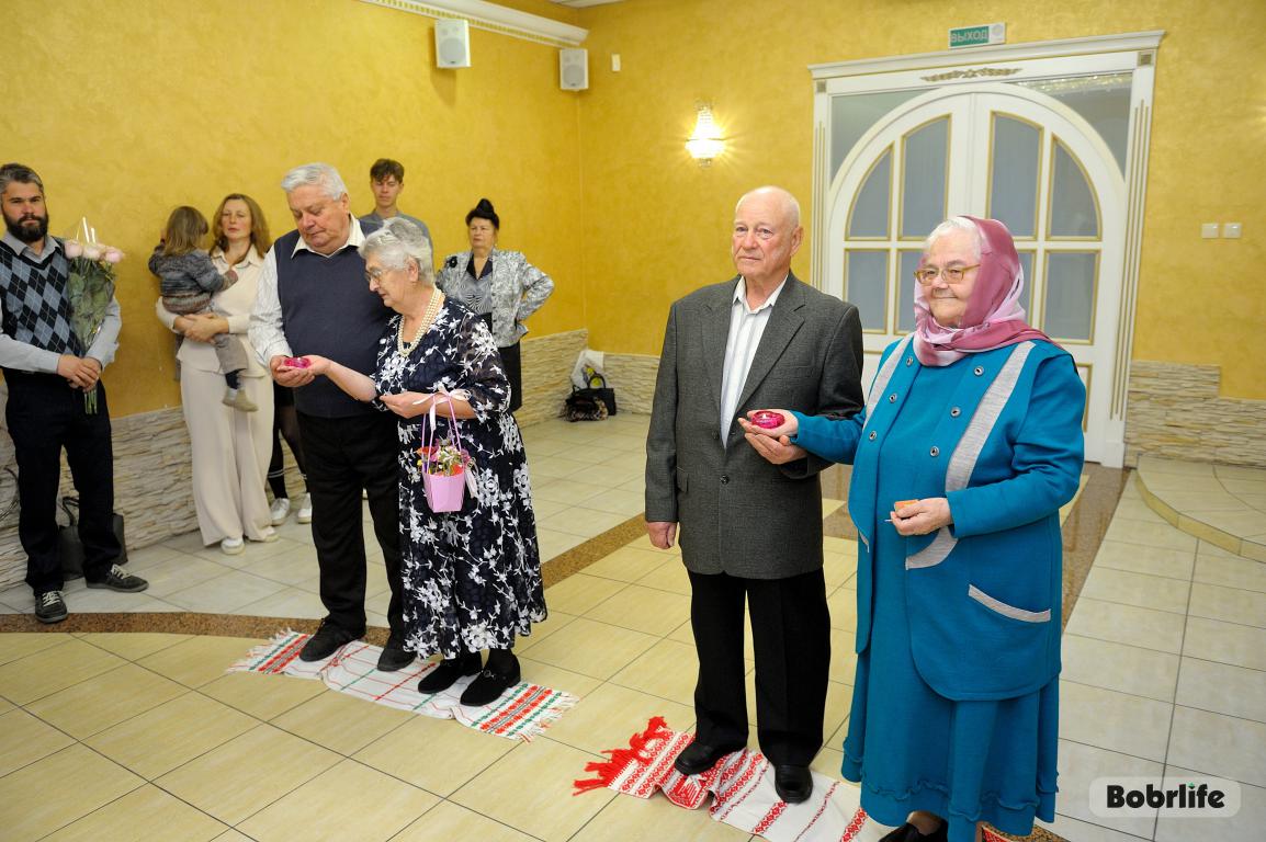 Представители Ленинского и Первомайского ТЦСОН, Ленинской районной организации г. Бобруйска РОО «Белорусское общество Красного Креста», а также Первомайской районной организации Бобруйска РОО «Белая Русь» поздравили юбиляров с важными датами, пожелав им крепкого здоровья, благополучия и долгих лет счастливой семейной жизни. Трогательными моментами церемонии стали зажжение свечи, супружеский поцелуй и свадебный вальс. И кульминация торжества – подписи в Книге почетных юбиляров, где супруги увековечили свои имена и историю любви для будущих поколений.