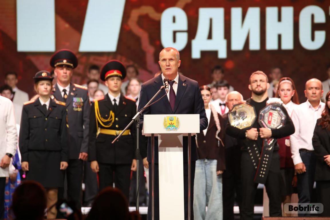 «Сегодня мы отмечаем самый молодой государственный праздник, который является символом единства, преемственности поколений, патриотизма и нашего созидательного труда, – отметила председатель Бобруйского городского Совета депутатов Ирина Рынейская. – В этот день всегда проходят торжественные концерты и встречи. Эти торжества подчеркивают наши единство, силу духа, наше стремление к миру и созиданию, добру».
