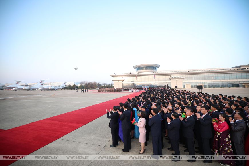 Завершился первый в истории официальный визит Президента Беларуси Александра Лукашенко в КНДР. В аэропорту главу белорусского государства лично проводил Председатель Государственных дел КНДР Ким Чен Ын, передает корреспондент БЕЛТА.