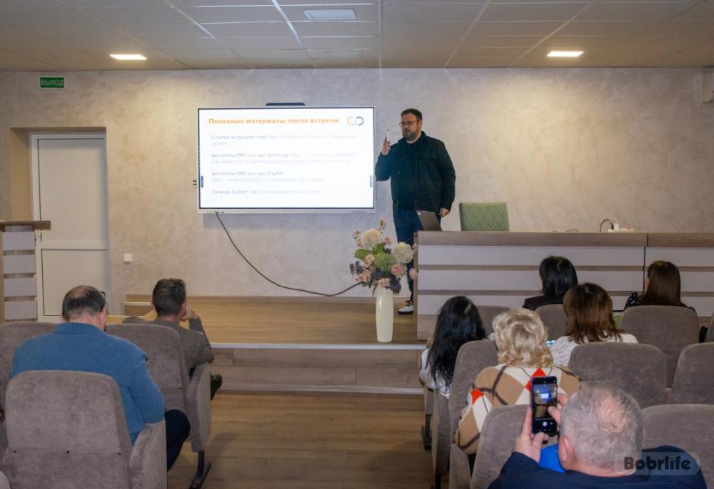 Организатором мероприятия выступил инкубатор малого предпринимательства филиал «Бобруйский региональный инновационный центр развития бизнеса». Рассказал о работе ИИ «под капотом» и его грамотной интеграции в бизнесе директор по развитию AAR и HRD MCB Logistics Никита Карпук. Специалист работает в HR и обучает взрослых более 15 лет, за его плечами более 400 очных тренингов. Основной мотив, с которым выступил спикер, – помочь предпринимателям и руководителям использовать нейросети, чтобы повышать эффективность и конкурентоспособность бизнеса.