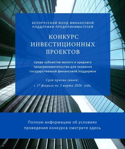 Белорусский фонд финансовой поддержки предпринимателей проводит конкурс инвестиционных проектов, бизнес-проектов среди субъектов малого предпринимательства для оказания государственной финансовой поддержки.