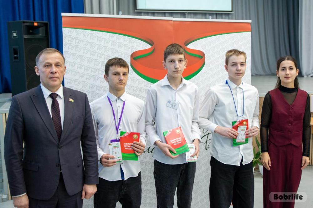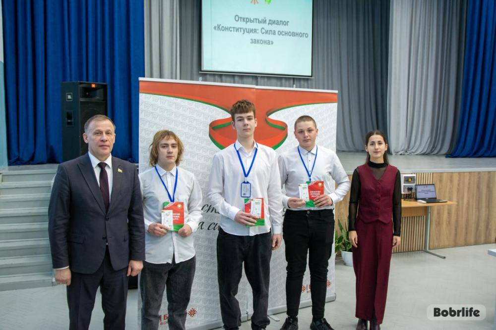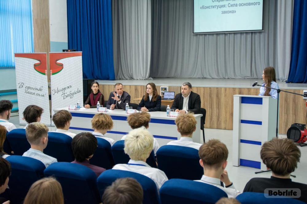 В преддверии государственного праздника – Дня Конституции – в механико-технологическом колледже Бобруйска состоялся открытый диалог на тему «Конституция: сила Основного закона». О роли Конституции в жизни государства и общества, о конституционных правах и обязанностях граждан учащимся рассказали почетные гости: заместитель председателя Бобруйского горисполкома Владимир КНИГА, депутат Бобруйского горсовета, делегат VII Всебелорусского народного собрания Ирина КОЗЛОВА, второй секретарь Бобруйского городского комитета ОО «БРСМ» Екатерина ПРОНОВИЧ.