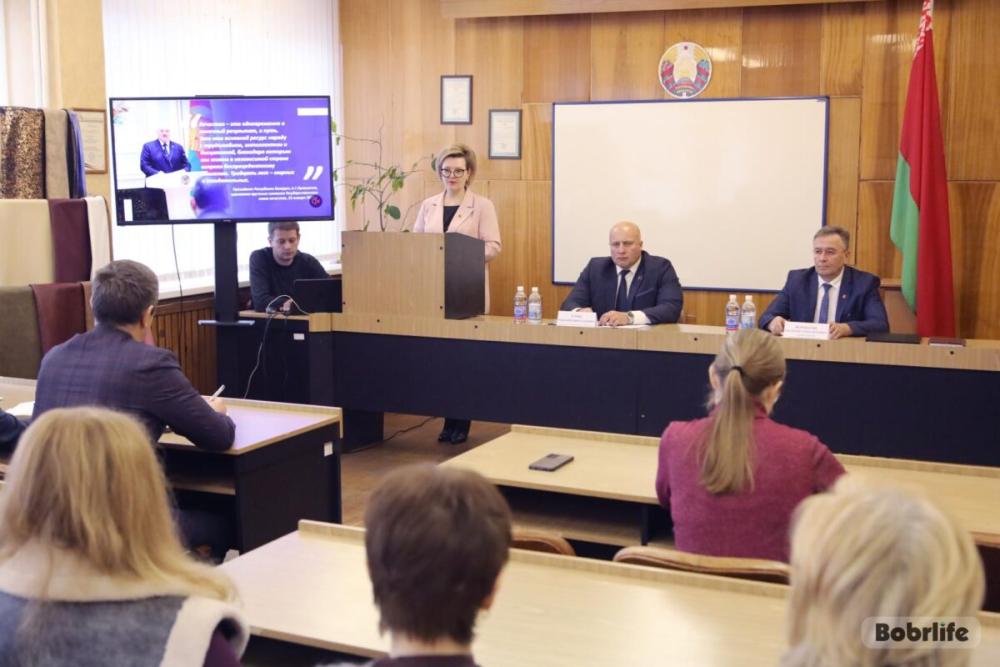 В рамках Единого дня информирования, главная тема которого – «Пятилетка качества итоги Года благоустройства»: председатель Бобруйского горисполкома Максим Гурин встретился с трудовым коллективом кожевенного комбината.
