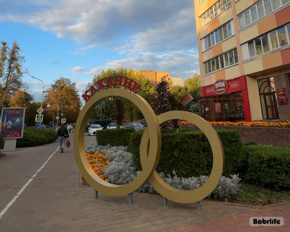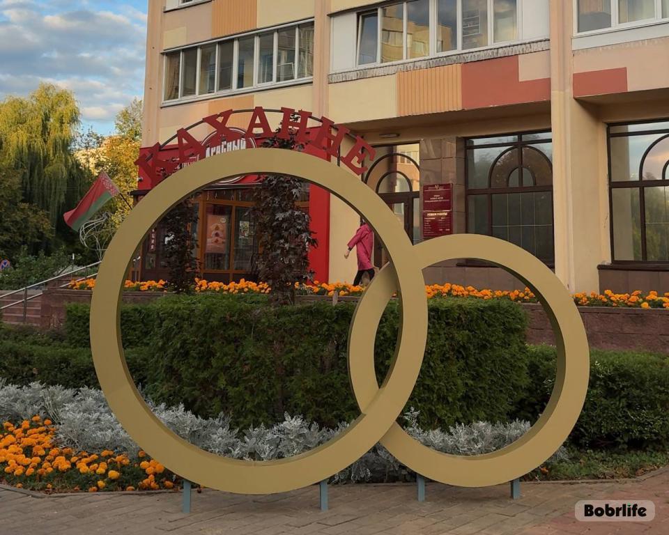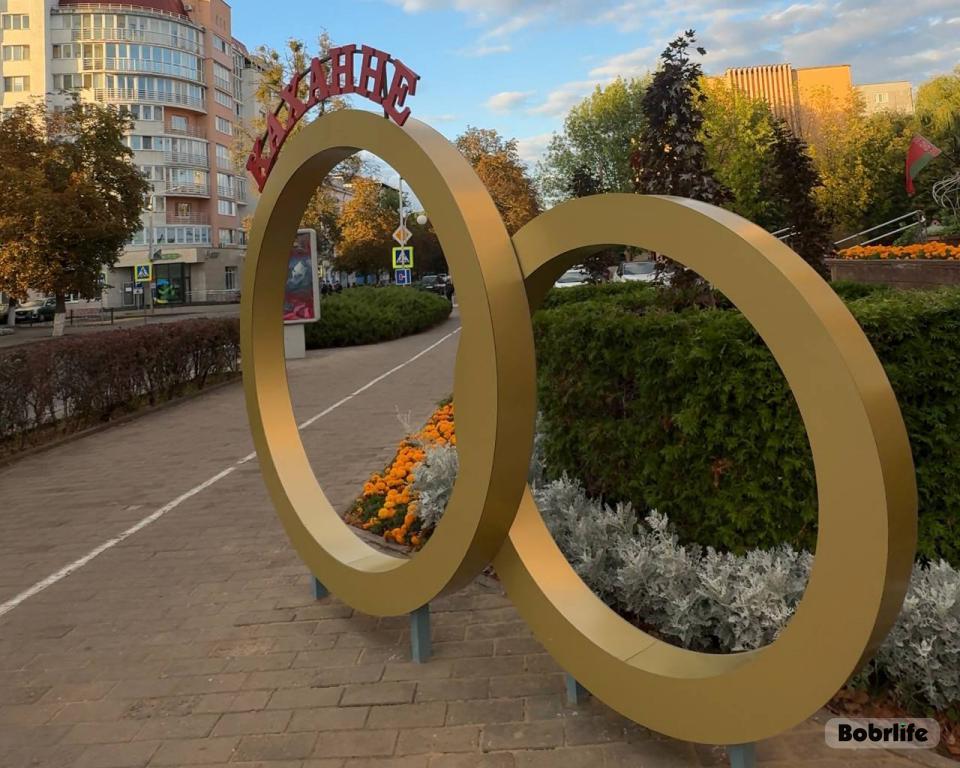 Возле дворца гражданских обрядов появилась малая архитектурная форма, которая выполнена в виде двух обручальных колец, а над ними красуется слово «Каханне».