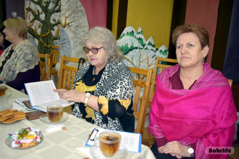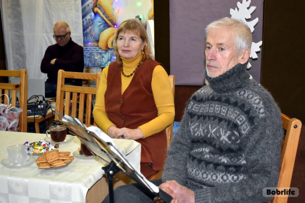 Вечер окутал гостей атмосферой почти семейного уюта за душевным чаепитием. Ведущий Виталий Иванов предложил собравшимся окунуться в тему «Белая зима». Зал, украшенный серебристыми зимними декорациями, наполнился звучанием стихов, воспевающих снежное очарование, и песен о красоте и величии этой волшебной поры года. Однако зимняя тема была не единственной – в стихах и прозе лилась любовь к родной Беларуси, Бобруйску, звучали слова о мужестве старших поколений. Каждый смог высказать то, чем по-настоящему богата его душа.