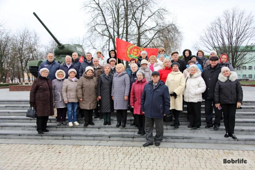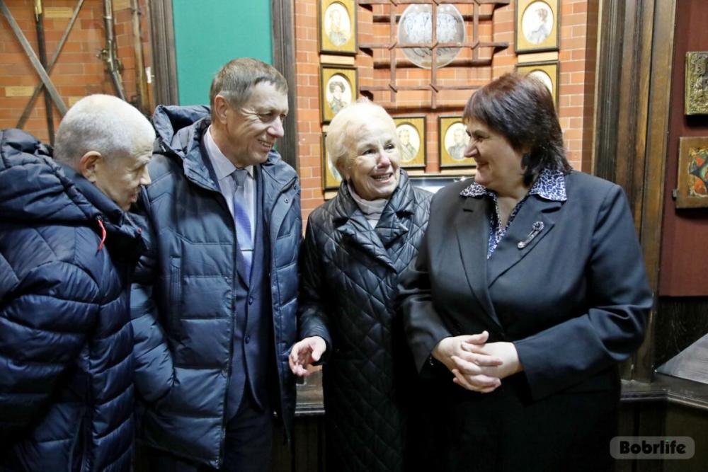 После посещения собора делегация переместилась в центр города – на площадь Победы. Возложив цветы к памятнику-танку на могиле генерал-майора Б.С. Бахарова, гости направились в краеведческий музей, чтобы ближе познакомиться с городом на Березине. Экскурсовод провела ветеранов по залам, делясь летописью Бобруйска, интересными фактами, фрагментами истории.