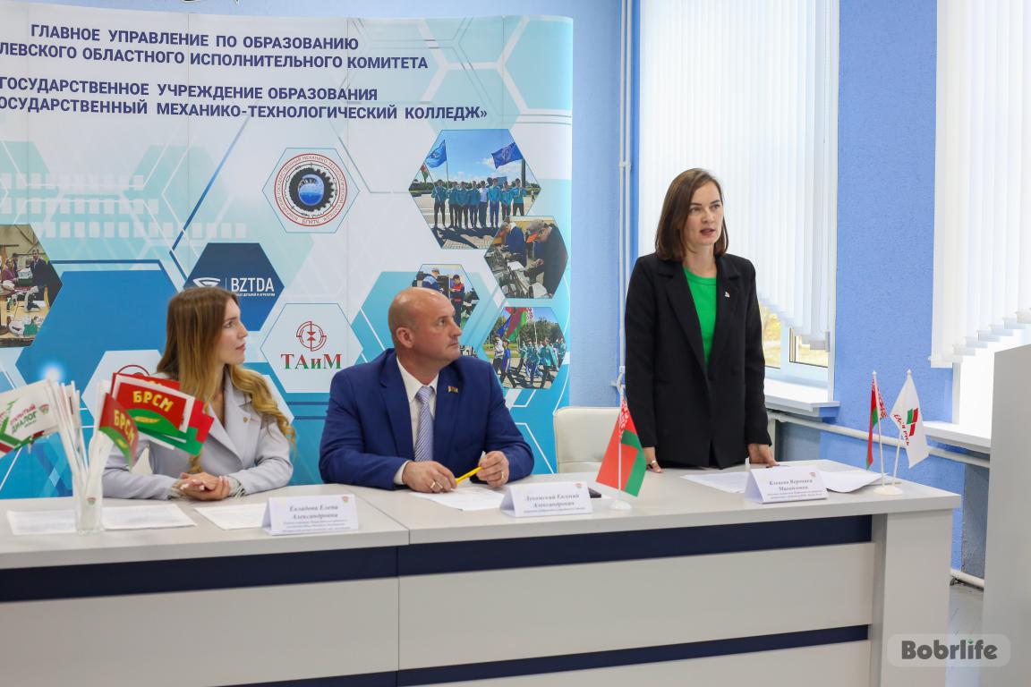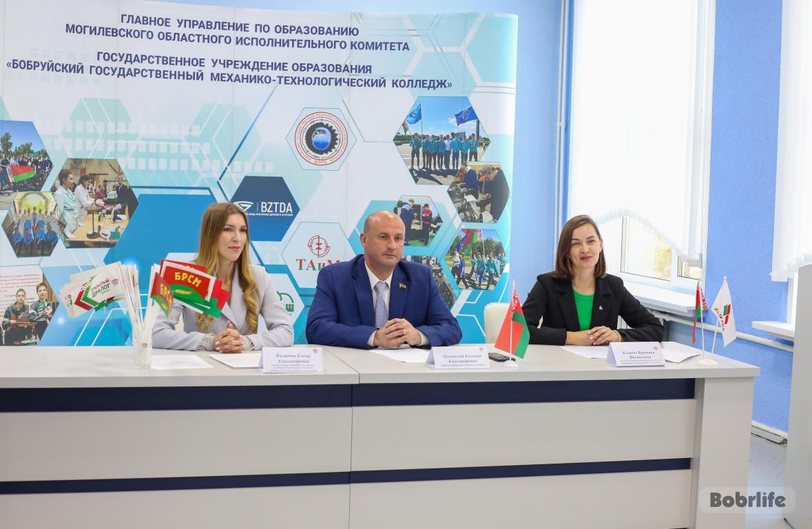 25 сентября в рамках проекта «Школа Активного Гражданина» («ШАГ») с учащимися механико-технологического колледжа встретились депутат Бобруйского городского Совета Евгений Лукомский, первый секретарь Первомайского РК ОО «БРСМ» Елена Евладова, ведущий специалист Первомайской районной организации Бобруйска РОО «Белая Русь» Вероника Клецова.