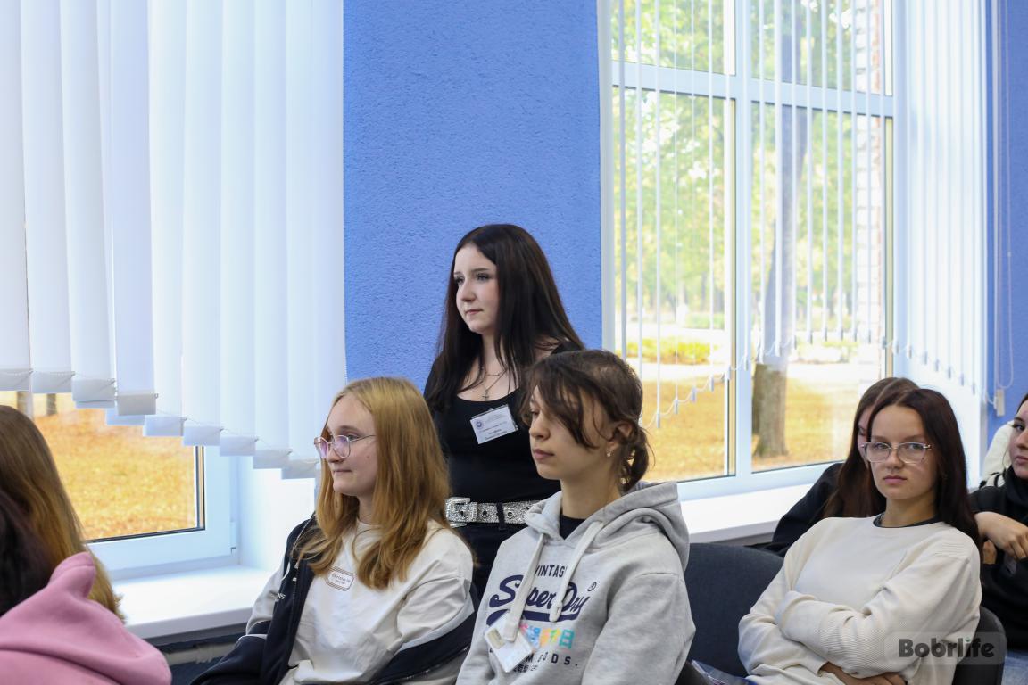 Елена Евладова рассказала учащимся о деятельности БРСМ. Молодежное общественное объединение охватывает множество направлений: гражданско-патриотическое воспитание, волонтерская деятельность, студотрядовское движение, поддержка талантливой и одаренной молодежи, пропаганда здорового образа жизни. Елена Александровна подчеркнула, что каждый сможет найти себе занятие по душе.