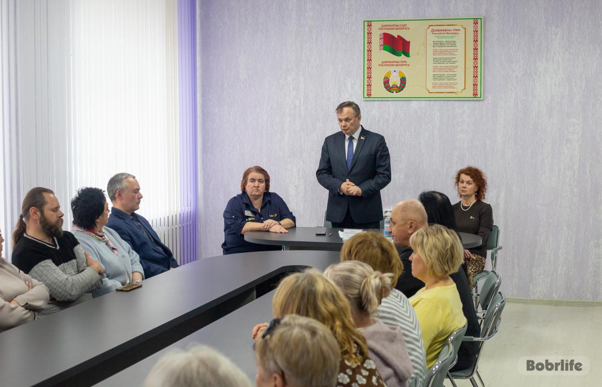 В ОАО «Бобруйский мясокомбинат» состоялась встреча трудового коллектива с первым заместителем председателя Могилевского облисполкома Сергеем Савицким. На встрече присутствовал председатель Бобруйского горисполкома Максим Гурин.